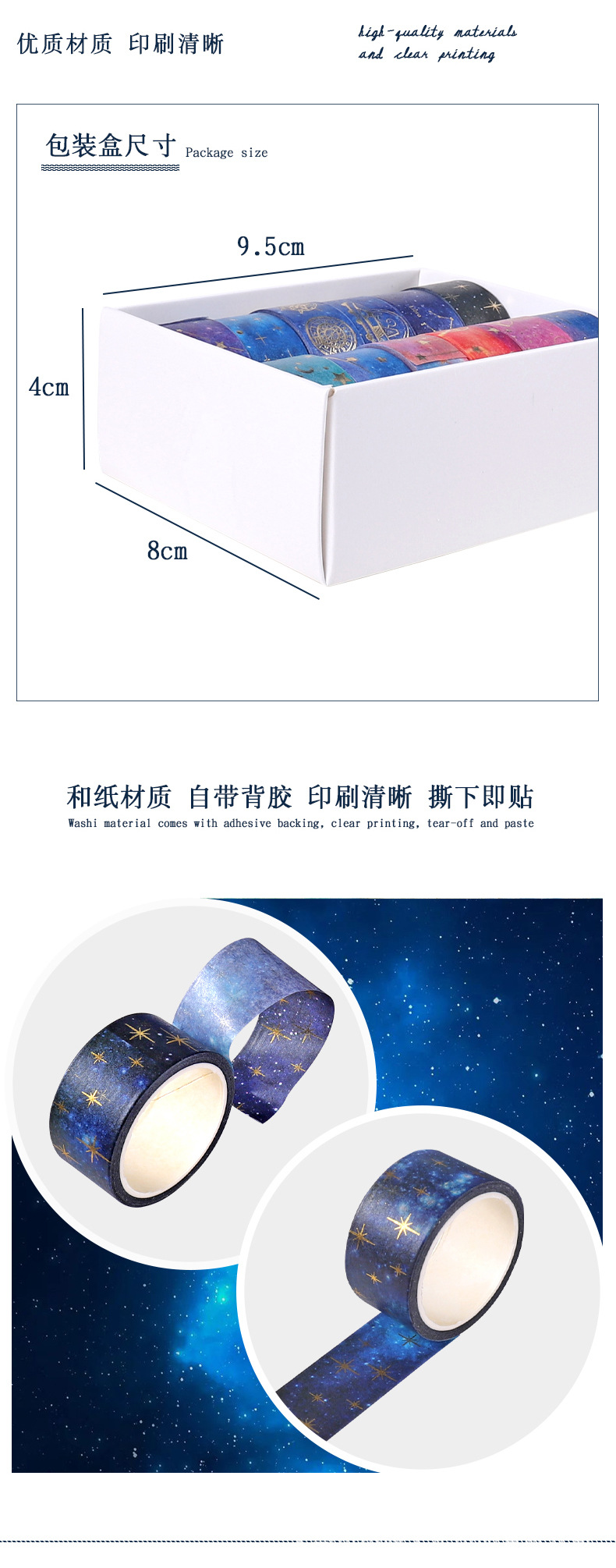 크로스보더 별빛 시리즈 금박 와시 테이프 DIY 장식 어린이 창의생활 다이어리 재료 스티커