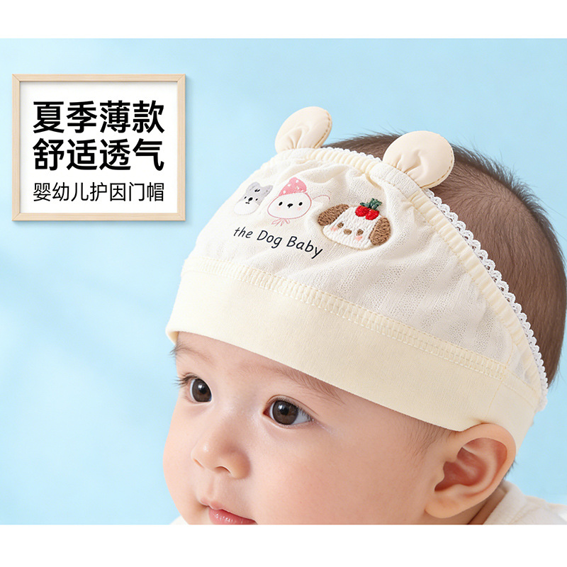 유아용 천문보호모, 여름용 초박형 단층 신생아 헤어캡, 통기성 메쉬 아기 모자