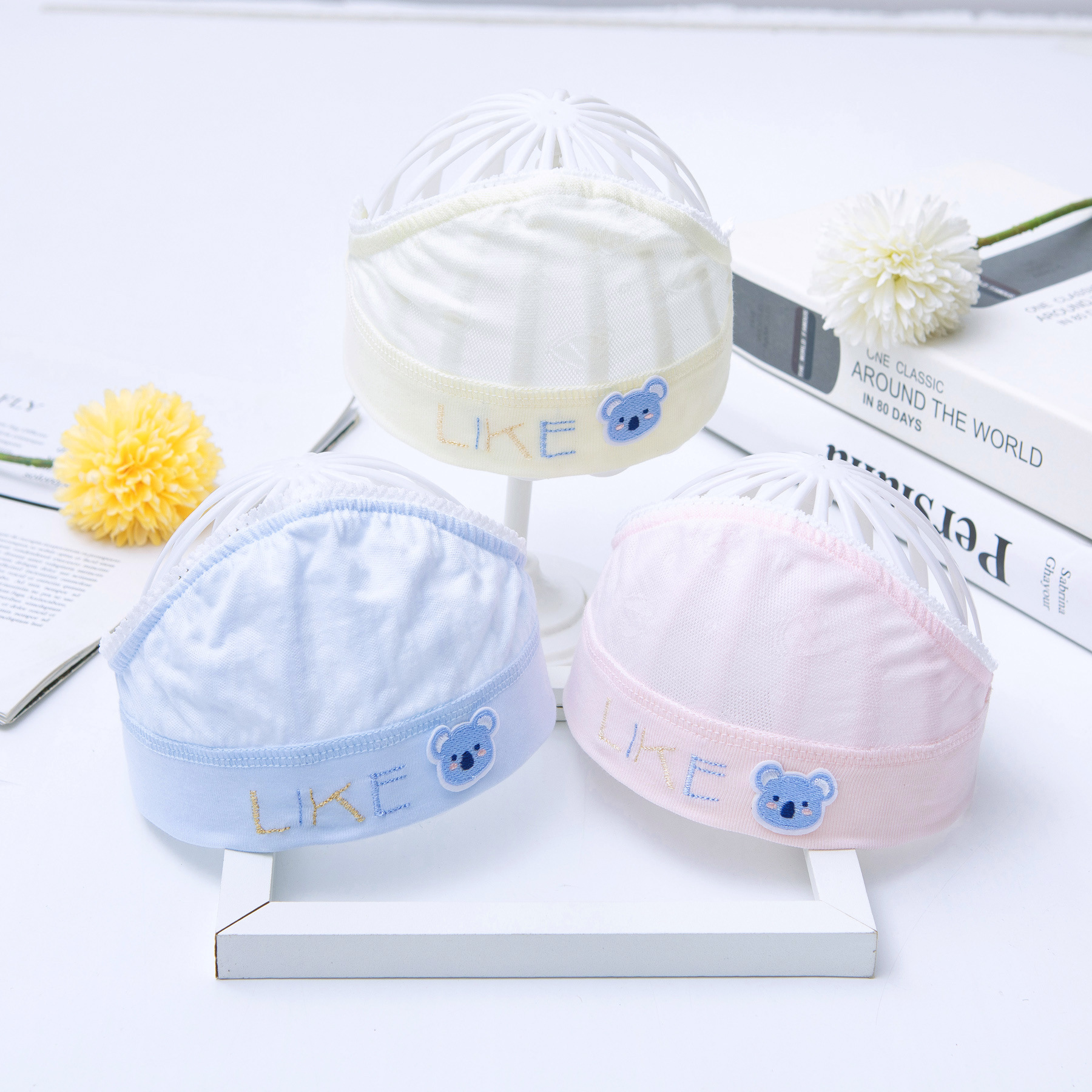 유아용 천문보호모, 여름용 초박형 단층 신생아 헤어캡, 통기성 메쉬 아기 모자스토어 가기