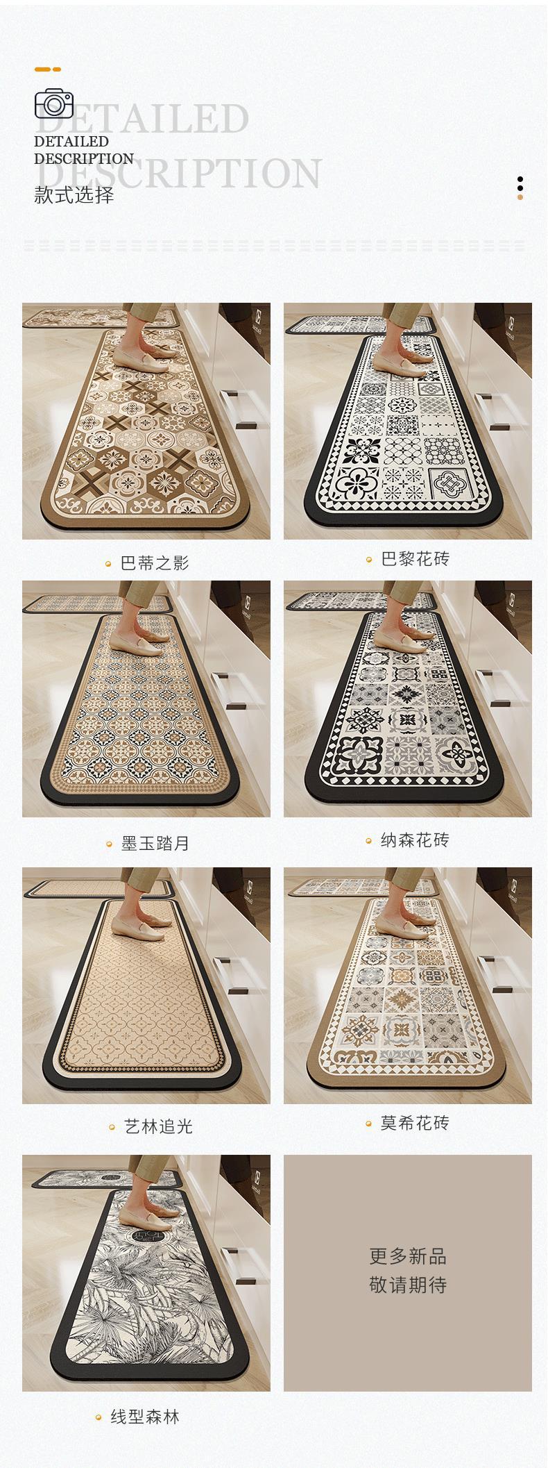 미국 스타일 레트로 주방 특수 바닥 매트 절단 2023 새로운 바닥 Diatom 진흙 흡수성 발 매트 방수 카펫스토어 가기