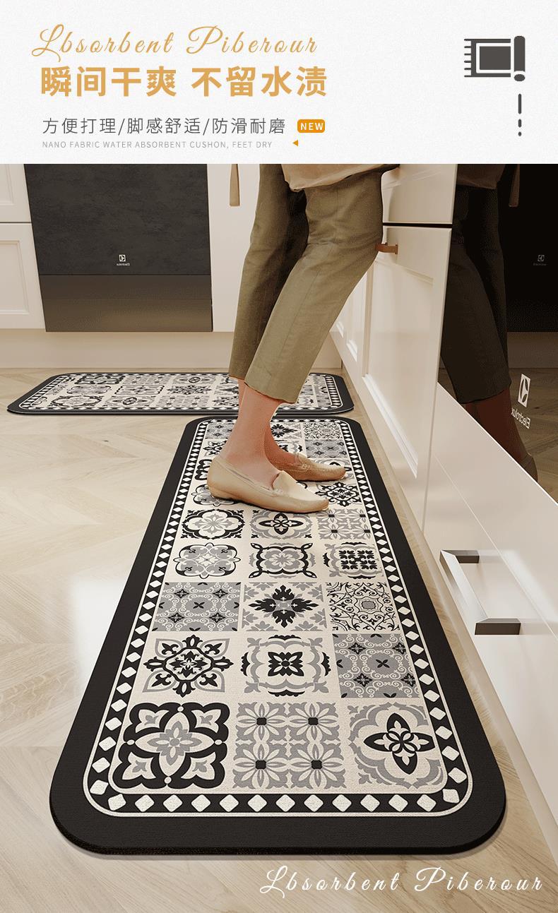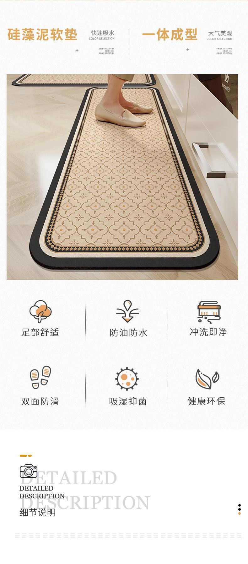 미국 스타일 레트로 주방 특수 바닥 매트 절단 2023 새로운 바닥 Diatom 진흙 흡수성 발 매트 방수 카펫