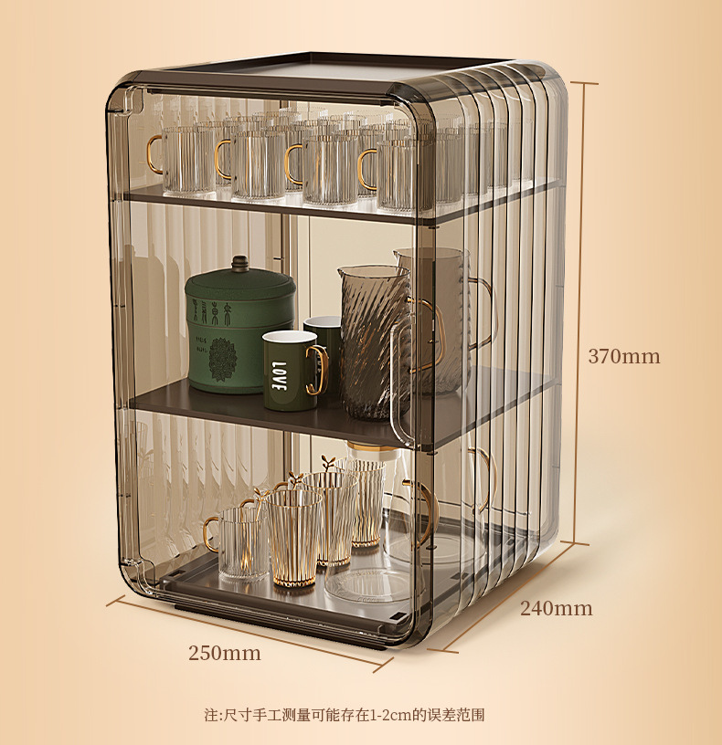 • 방진 저장 캐비닛 대형 3 층 홍차 다크 브라운