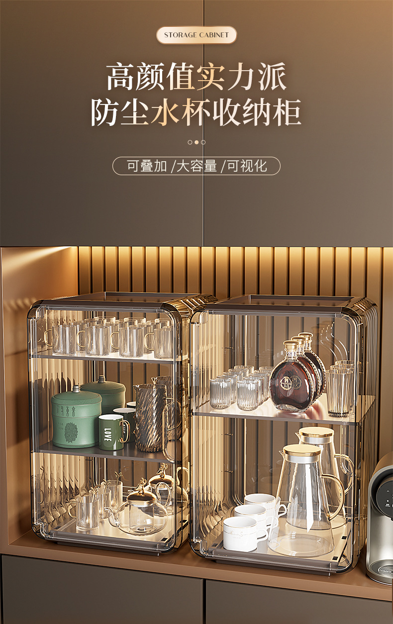 방진 컵 스토리지 랙 라이트 럭셔리 고 가치 Superposable 투명한 거실 사무실 데스크탑 캐비닛 컵 홀더