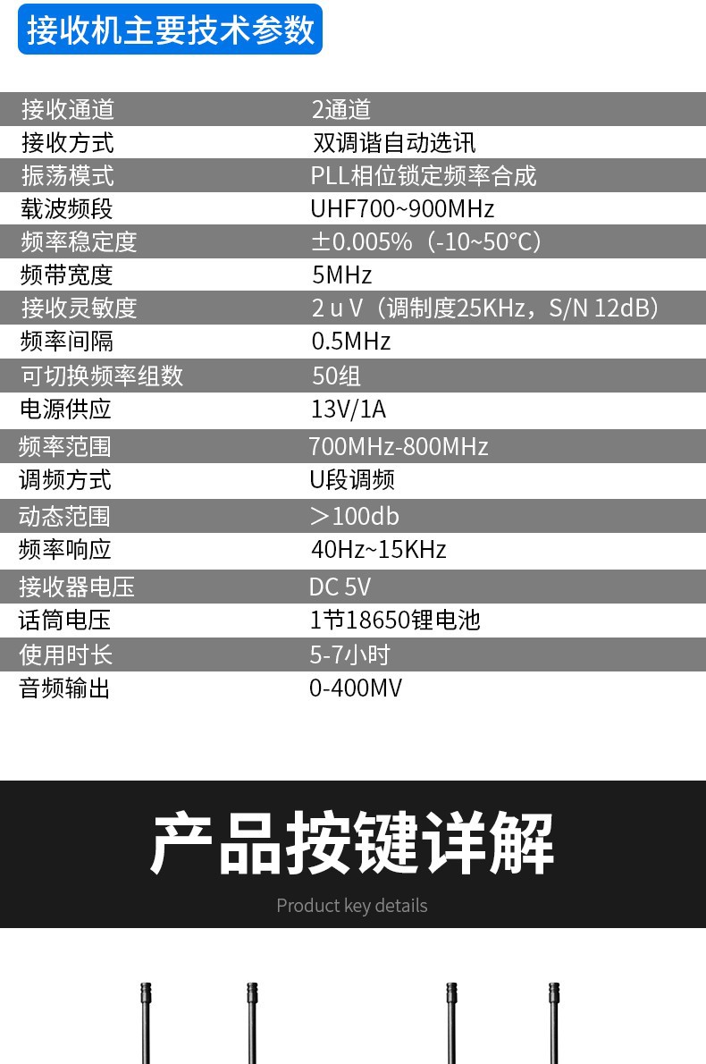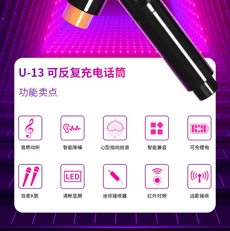 • U-13 충전 단일 및 듀얼 마이크 (30 미터 장벽 무료 허용 거리)