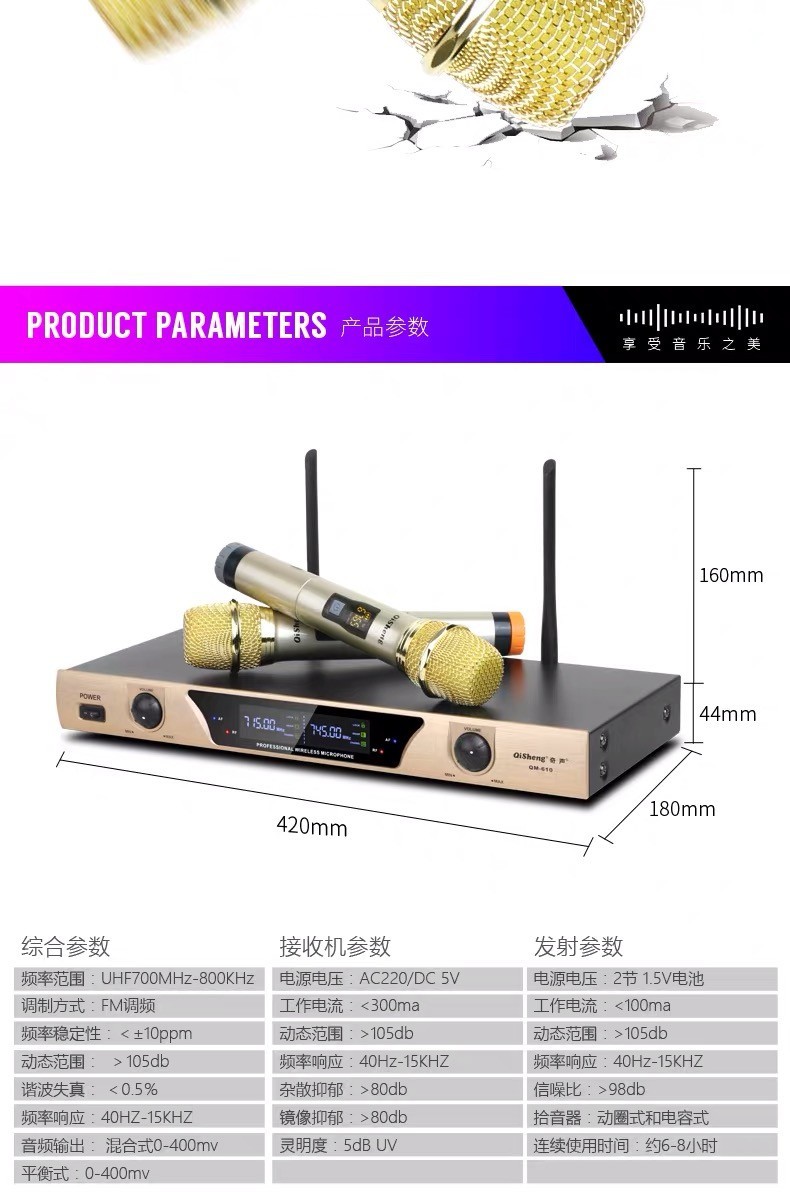 Odds 무선 마이크 오디오 외부 전문 1 대 2 U 세그먼트 고정 주파수 FM 홈 스테이지 야외 노래 회의스토어 가기