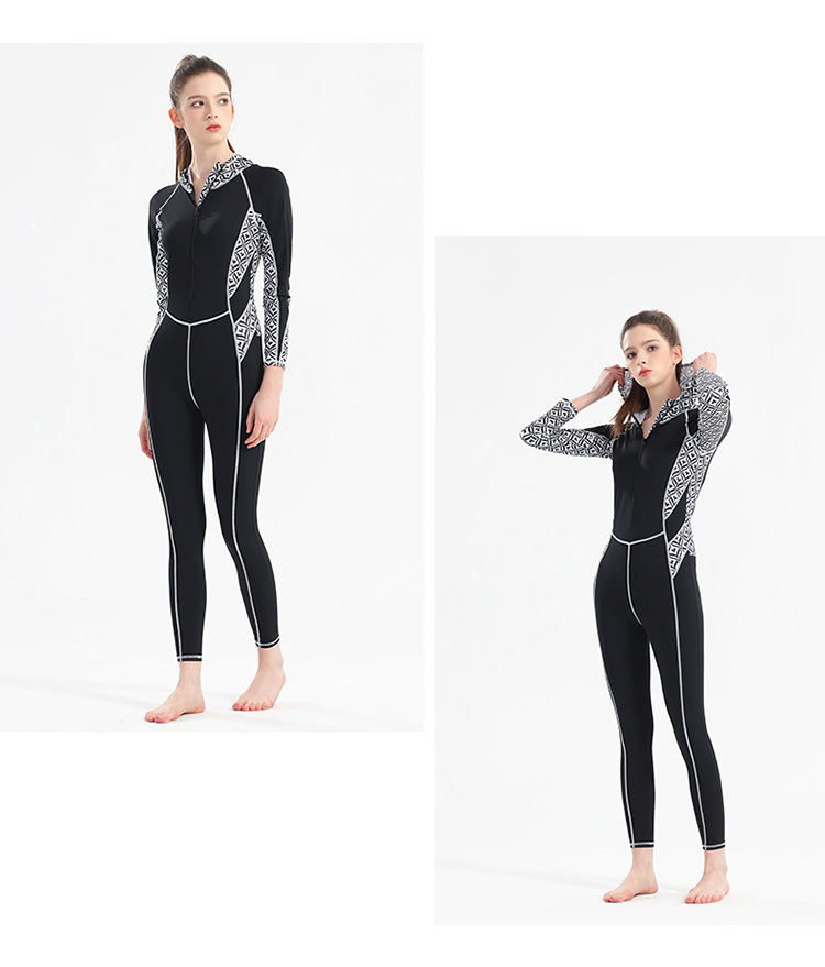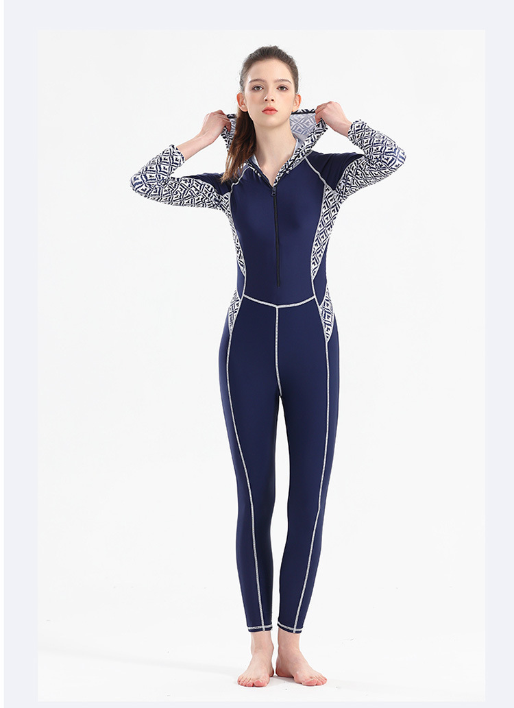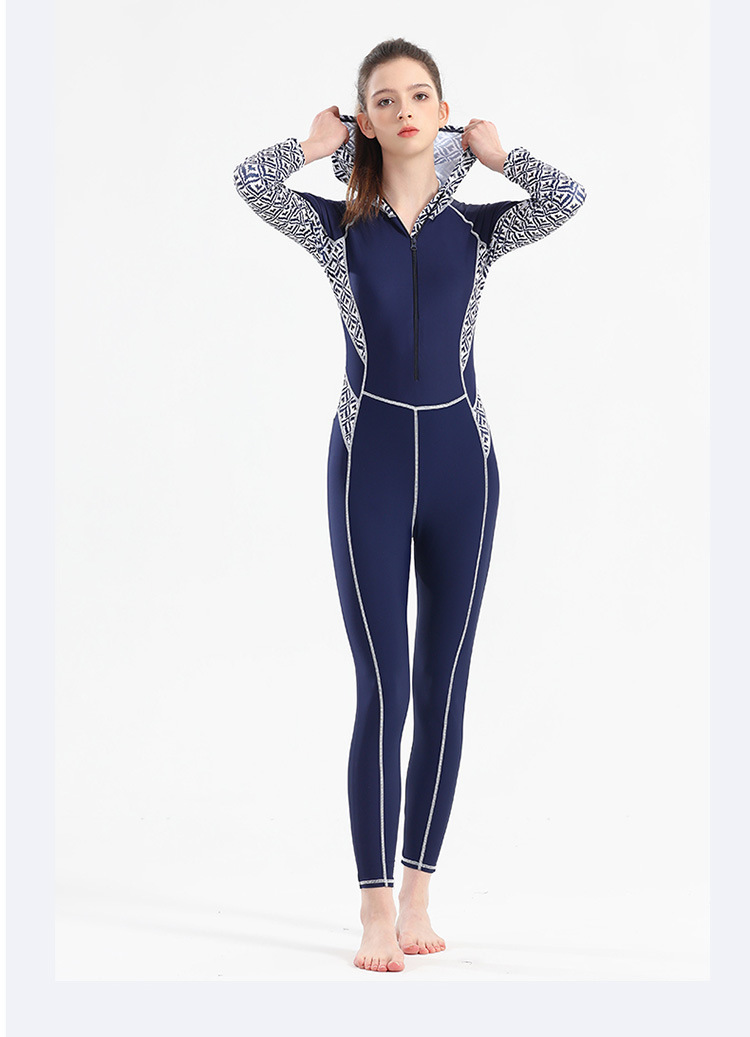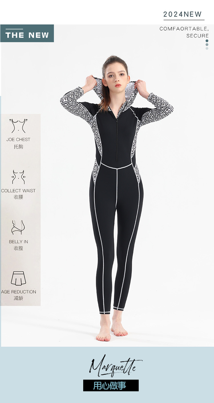 新款水母衣女士全身泳衣防晒潜水服浮潜长袖长裤拉链连体带帽泳装