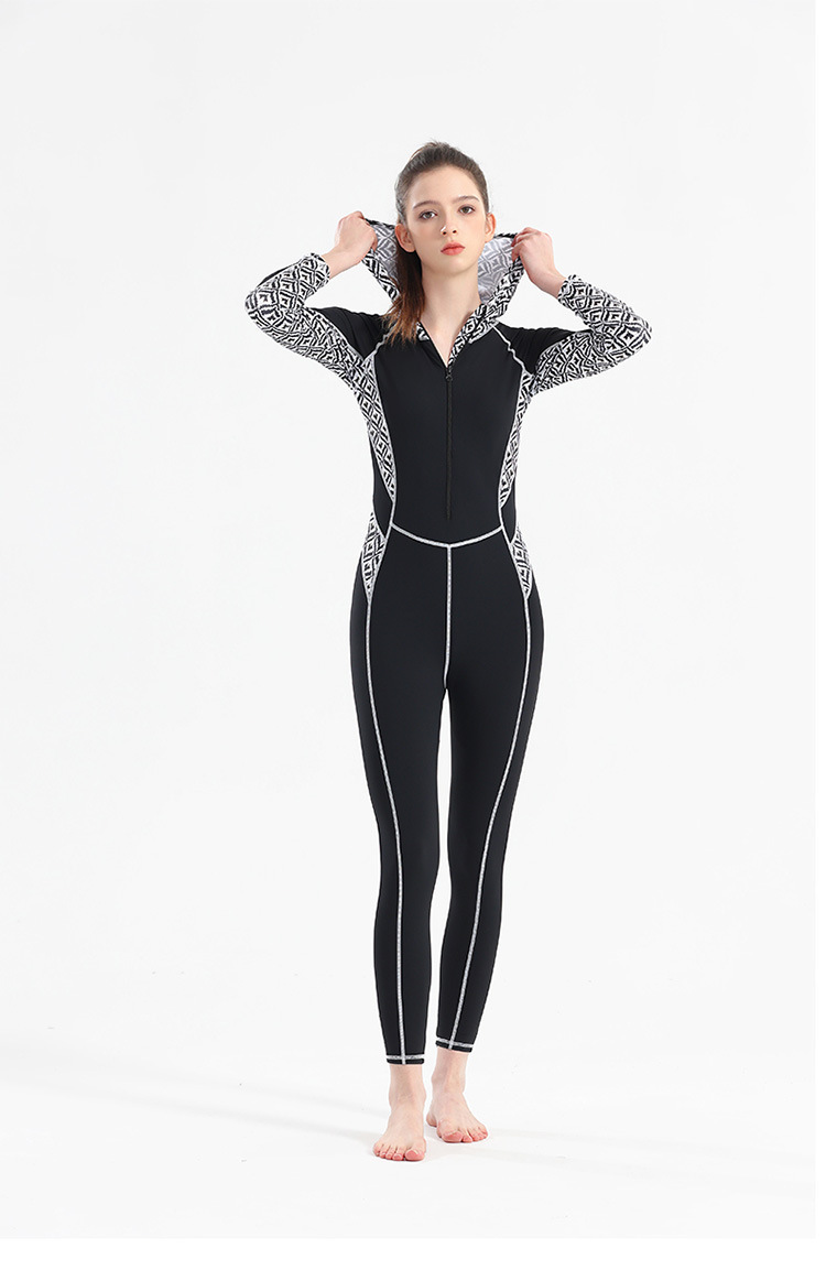 새로운 해파리 옷 여성용 전신 수영복 태양 보호 다이빙 세트 스노클링 긴 소매 바지 지퍼 후드 수영복