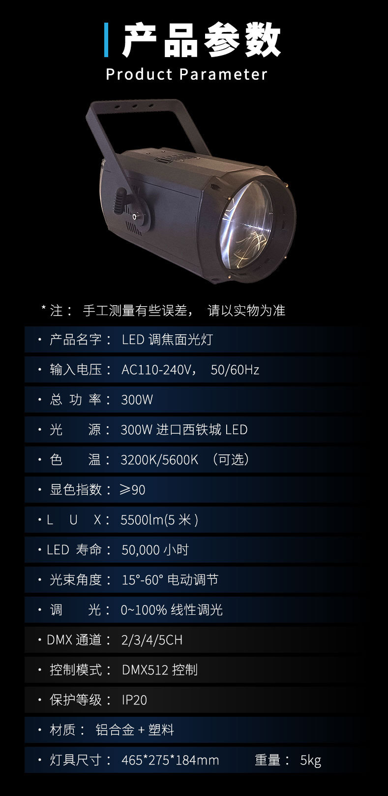 300W/200W 초점 조절 가능한 COB 웨딩 촬영용 보조광, 결혼식 조명, 무대 조명 풀 세트