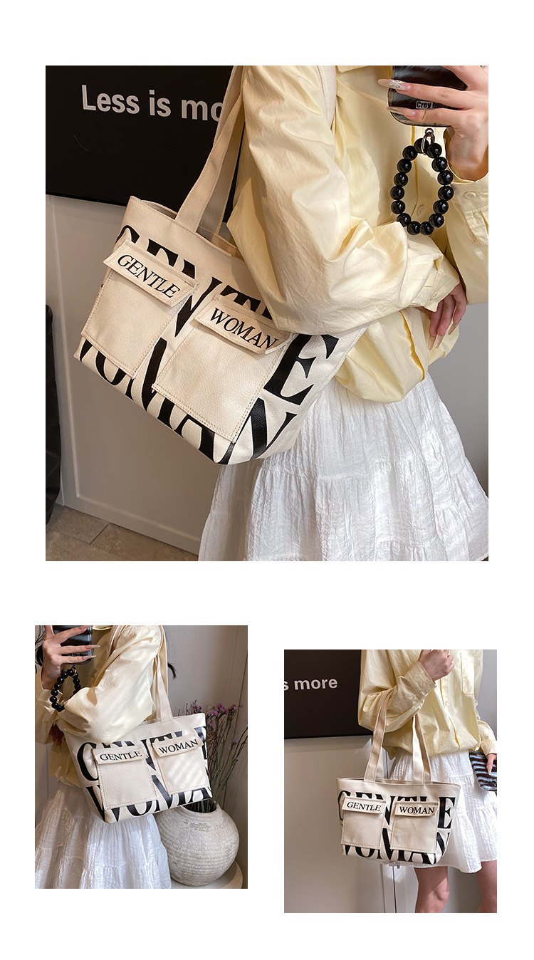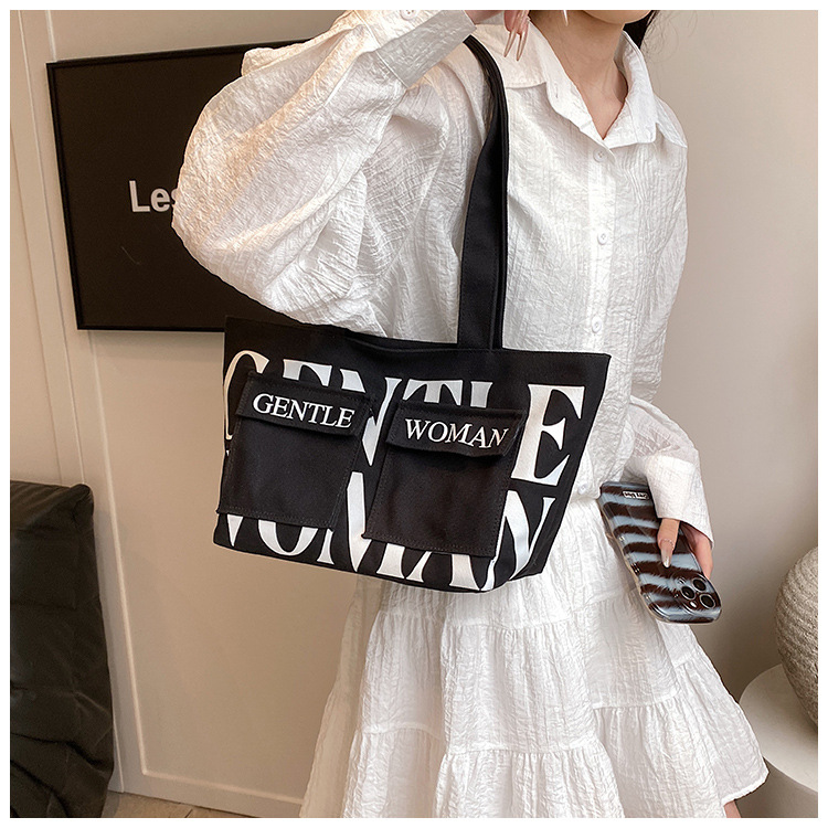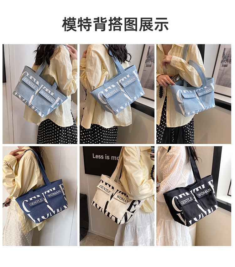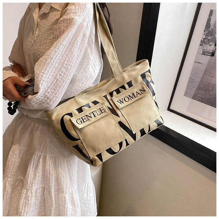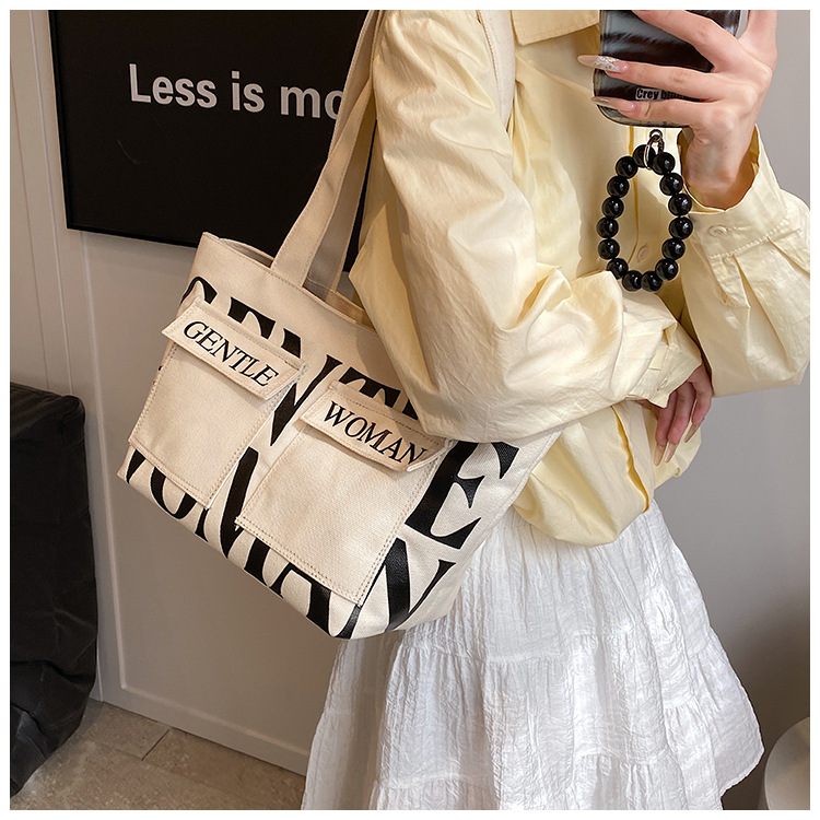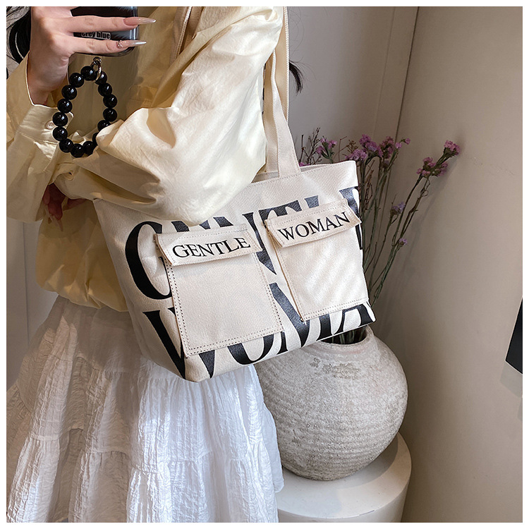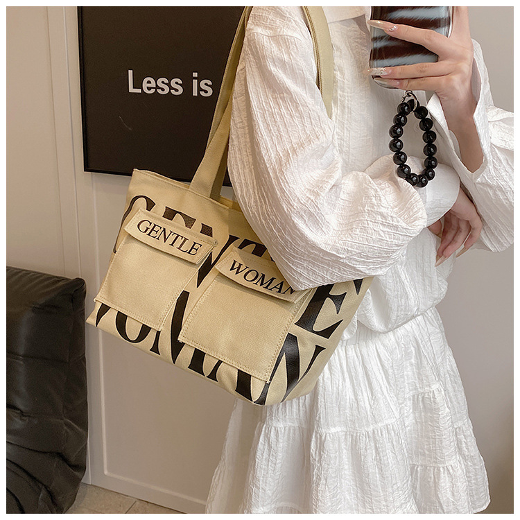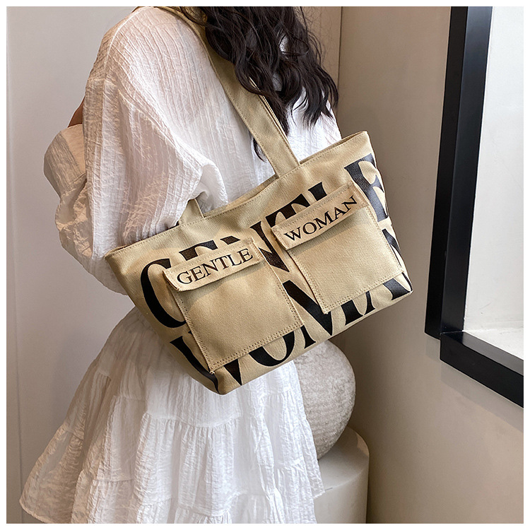 여성용 토트백 2026 신상 가을 대용량 캔버스백 패셔너블한 레터링 숄더백 대학생 수업 및 통근용 가방스토어 가기