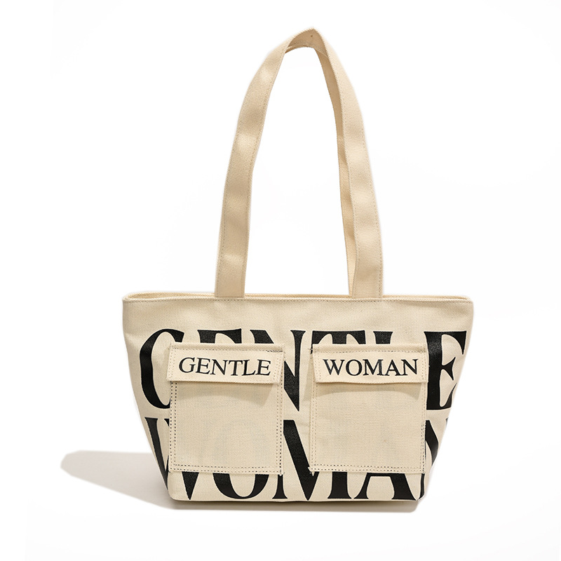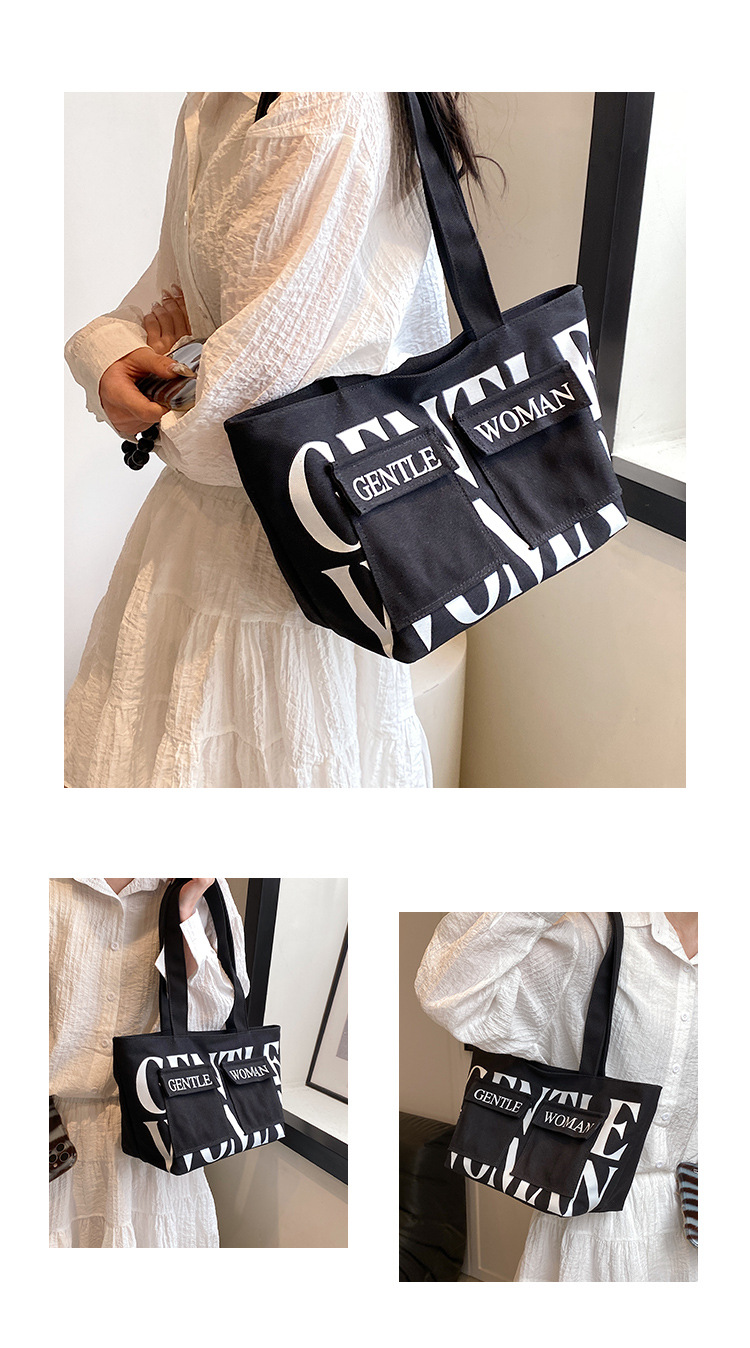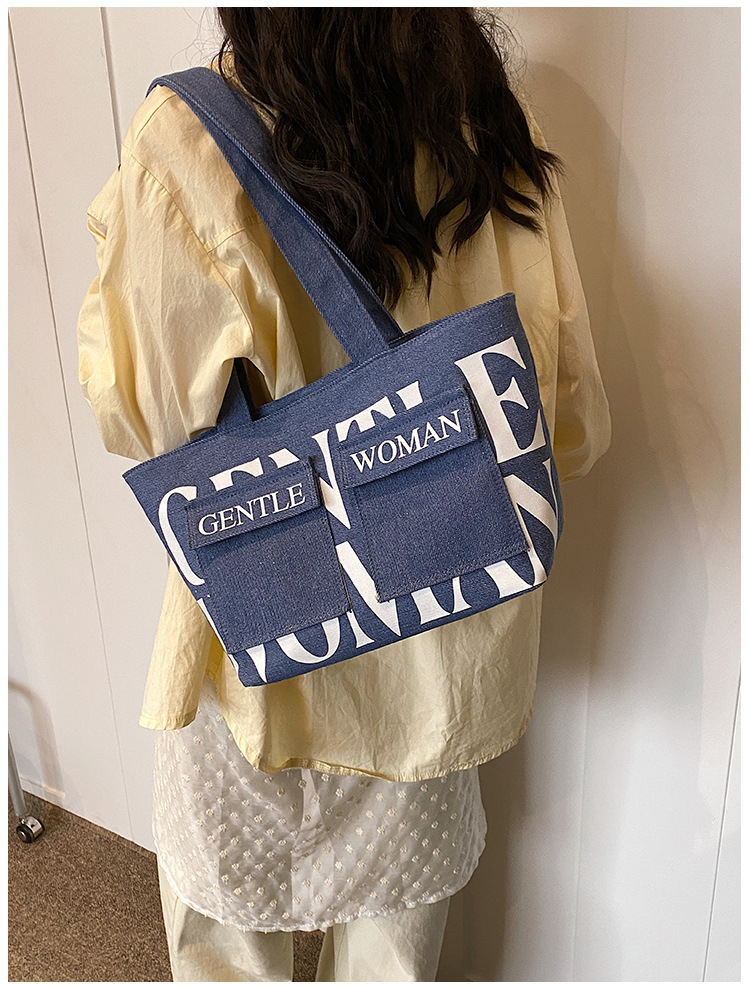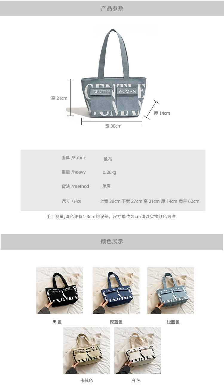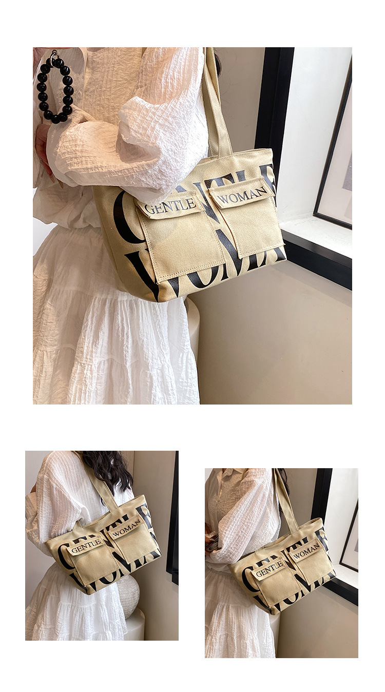 여성용 토트백 2026 신상 가을 대용량 캔버스백 패셔너블한 레터링 숄더백 대학생 수업 및 통근용 가방스토어 가기