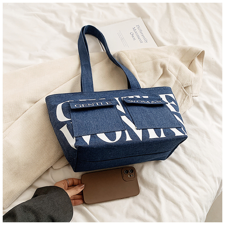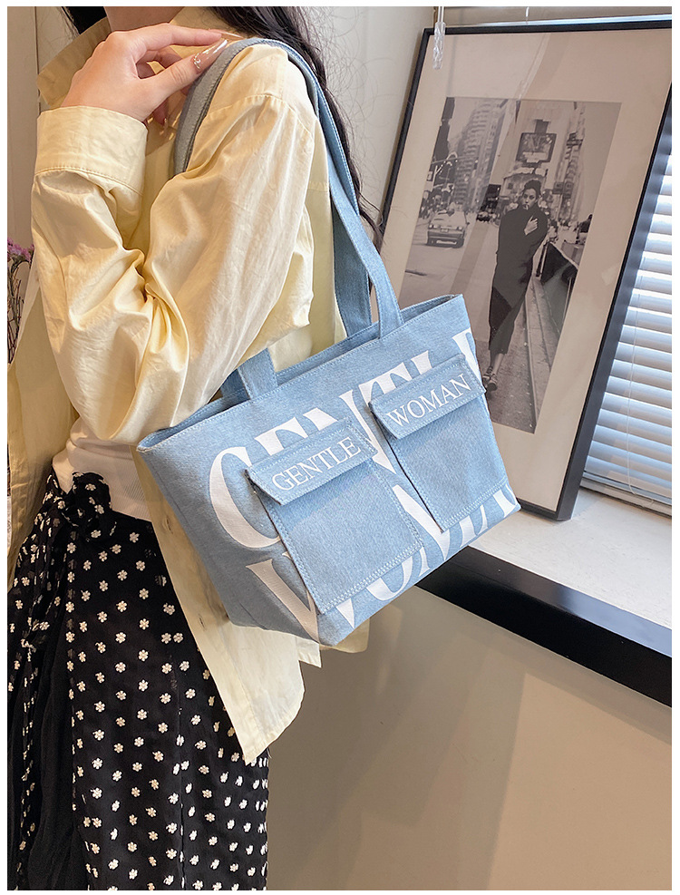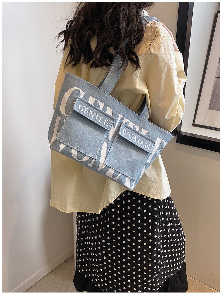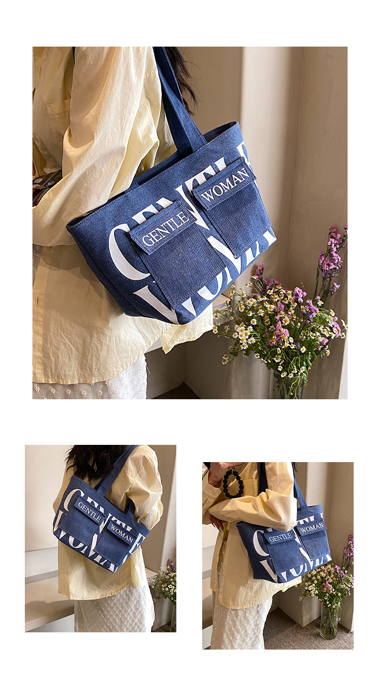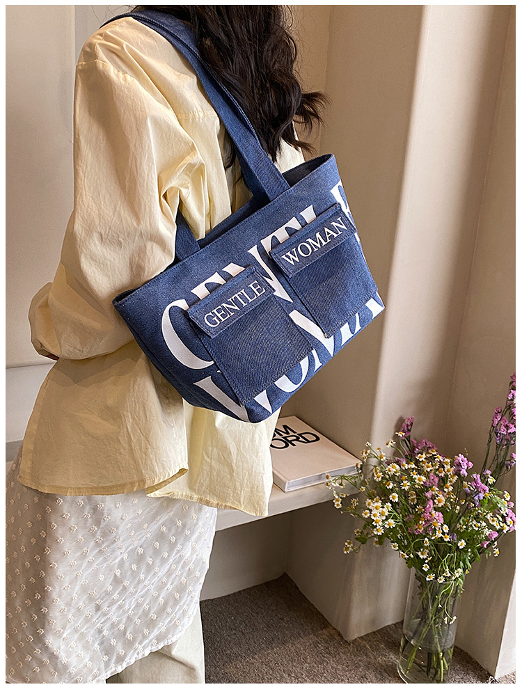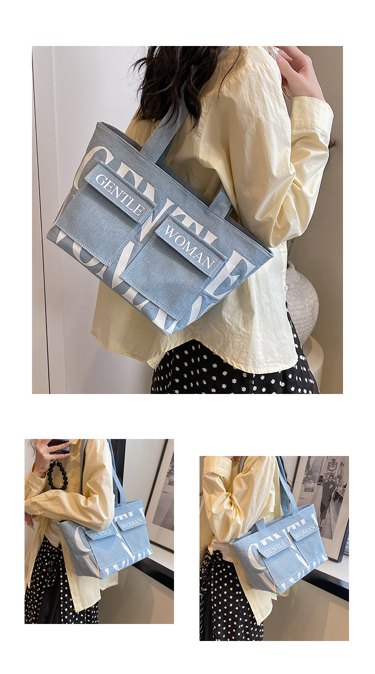 여성용 토트백 2026 신상 가을 대용량 캔버스백 패셔너블한 레터링 숄더백 대학생 수업 및 통근용 가방스토어 가기