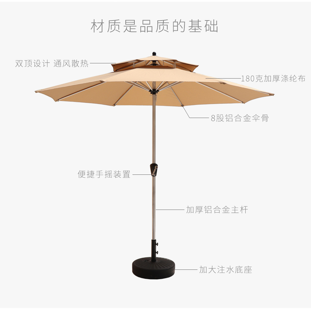 야외 파라솔 코트야드 레저 우산 스트레이트 우산 알루미늄 합금 금속 우산 정원 해변 우산 광고 우산 테이블 의자 우산