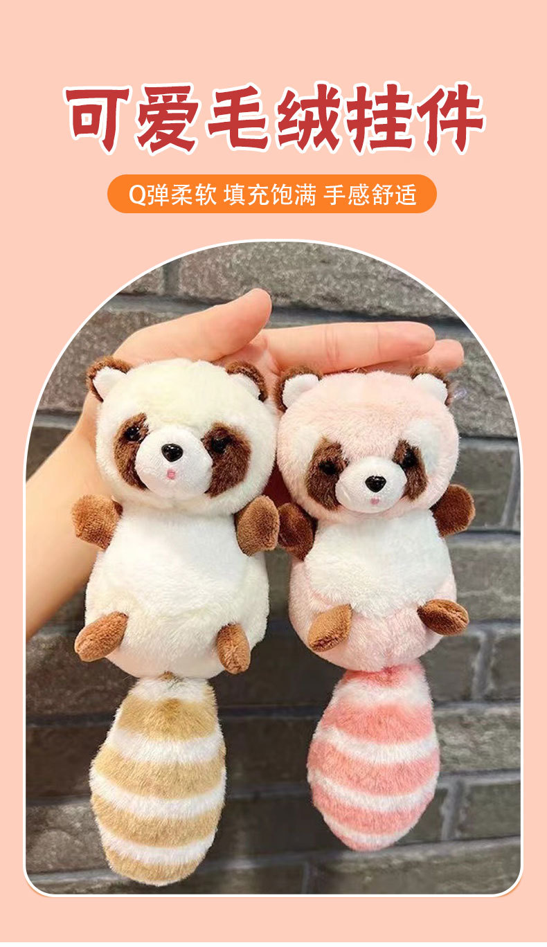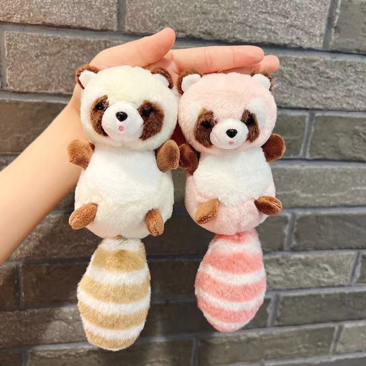인터넷 축하 귀여운 긴 꼬리 너구리 봉제 장난감 키 체인 펜던트 만화 가방 교수형 인형 기계 인형 도매