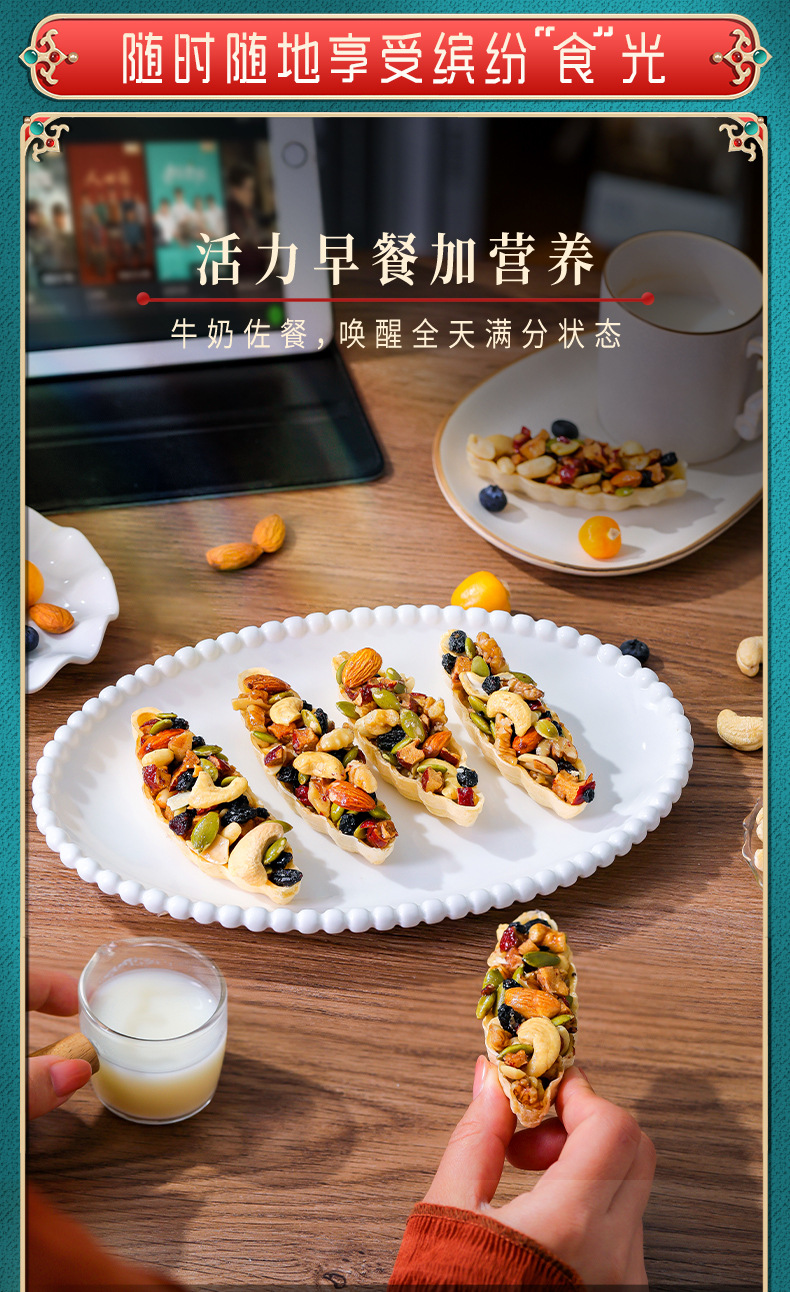 소스 공장 과일 보트 견과류 혼합 보트 유형 작은 잎 바삭한 찹쌀 보트 비스킷 그물 빨간 스낵 도매스토어 가기