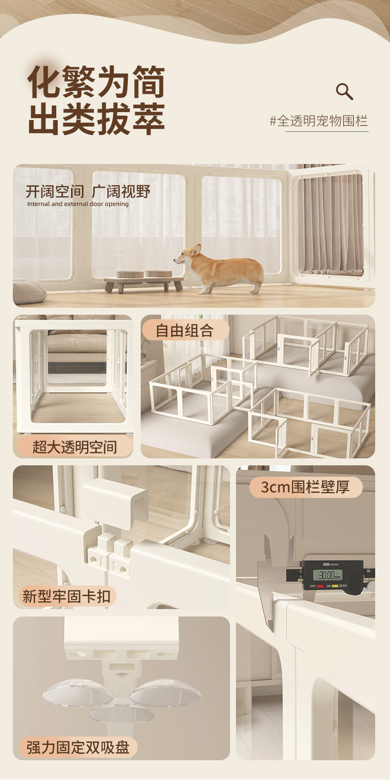 애완 동물 개 울타리 전체 투명 아크릴 작은 개 실내 홈 개 집 발코니 안전 울타리 개 케이지