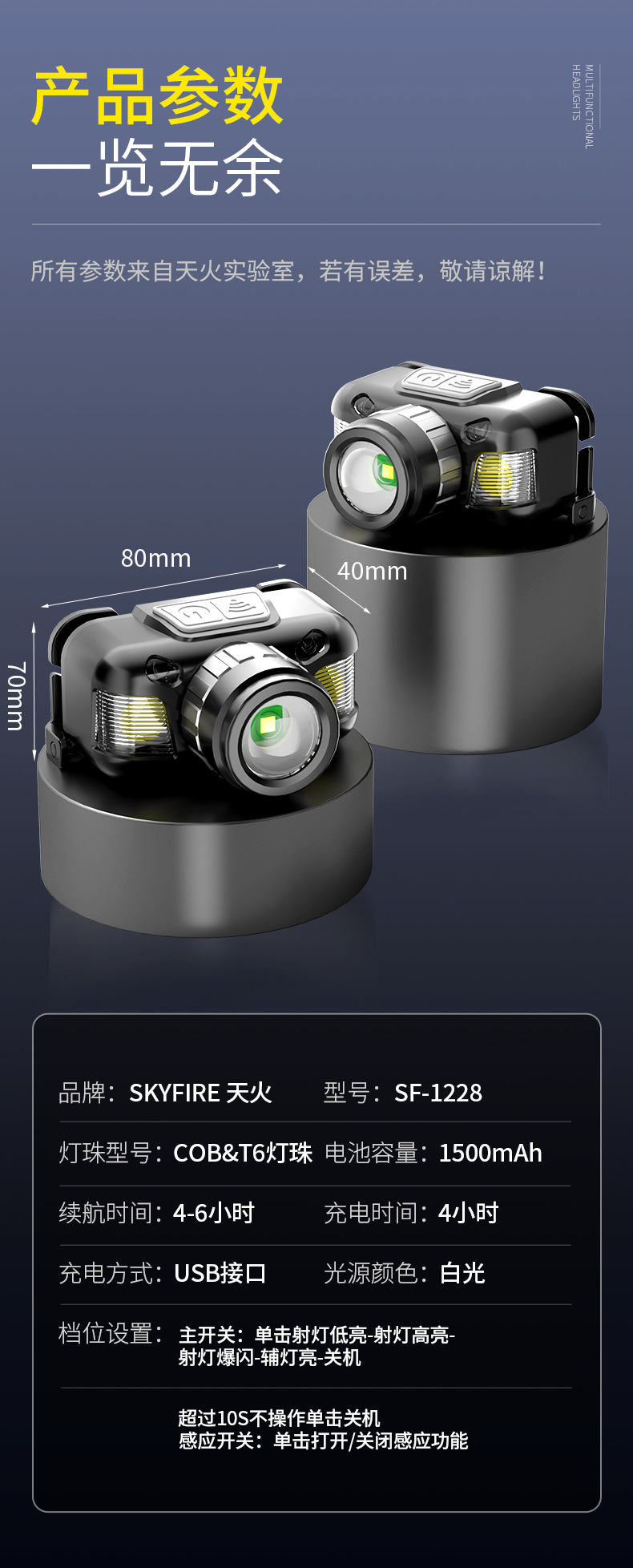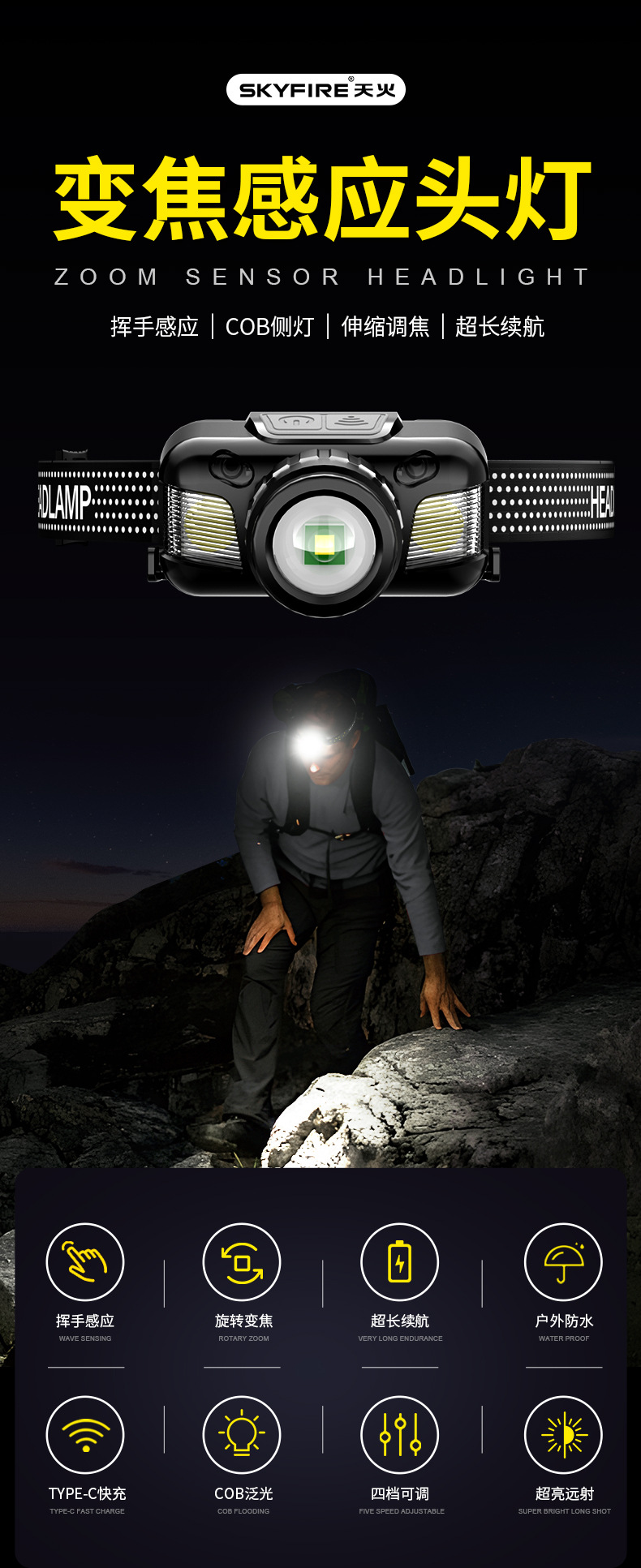 Skyfire 강한 빛 헤드라이트 슈퍼 밝은 충전 레이저 헤드 장착 야외 손전등 장거리 야간 낚시 특별 긴 내구성