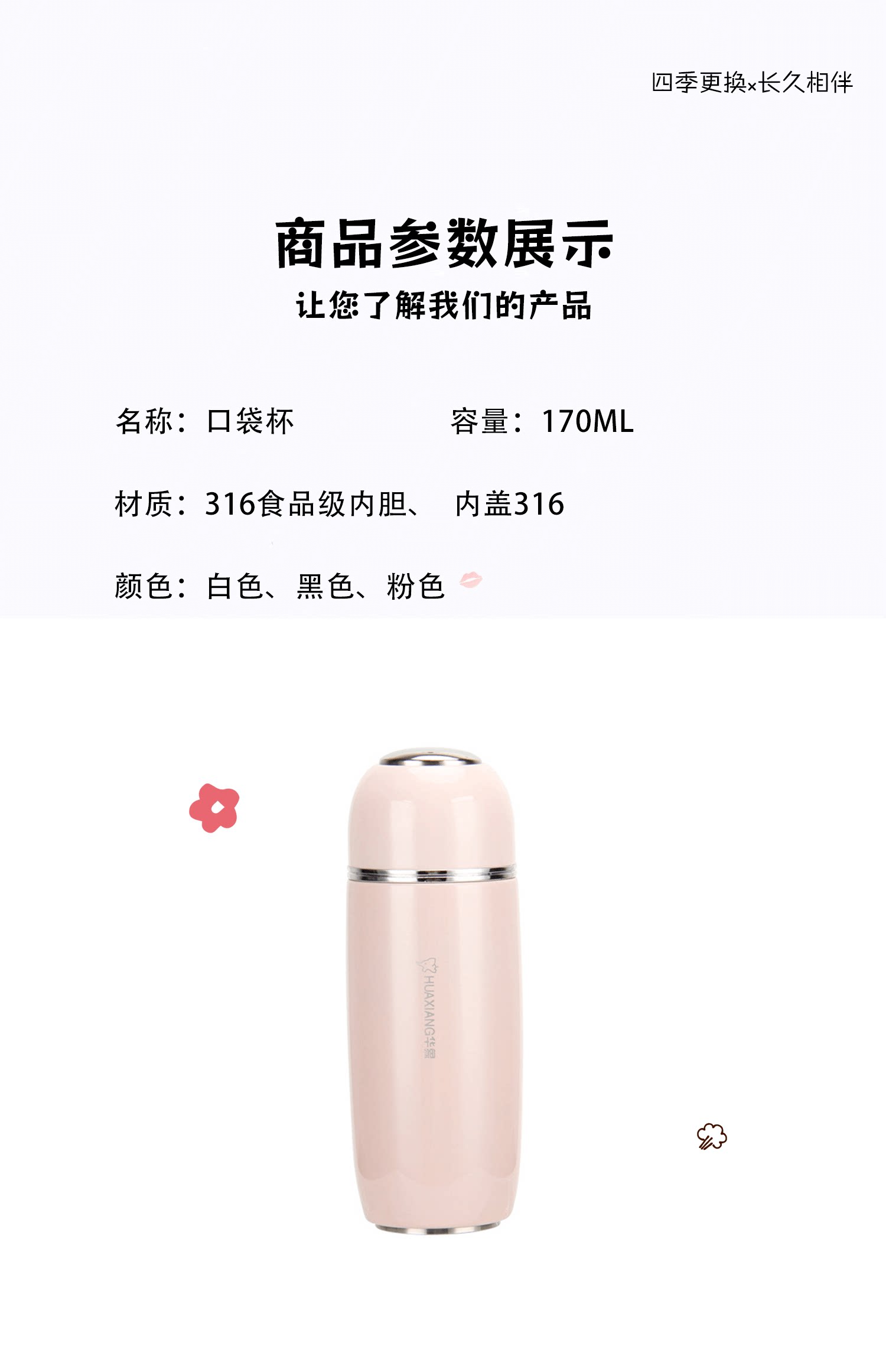 Huaxiang 316 식품 등급 스테인레스 스틸 보온병 컵 휴대용 포켓 컵 작은 소녀의 심장 미니 어린이 워터 컵