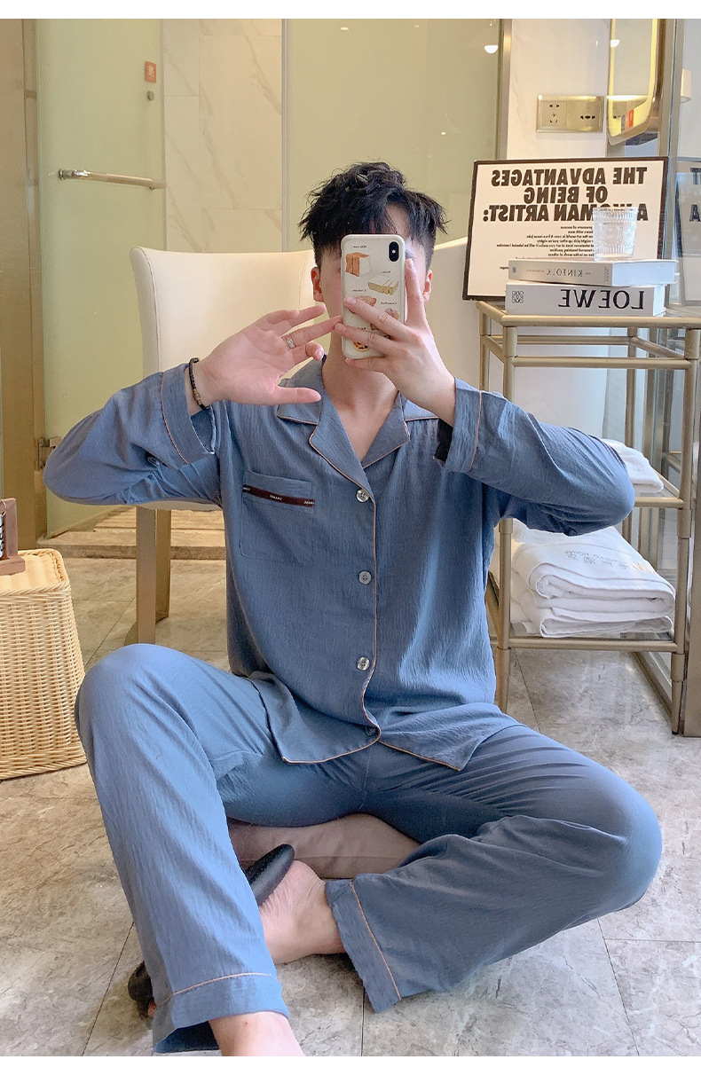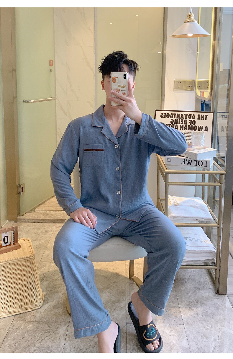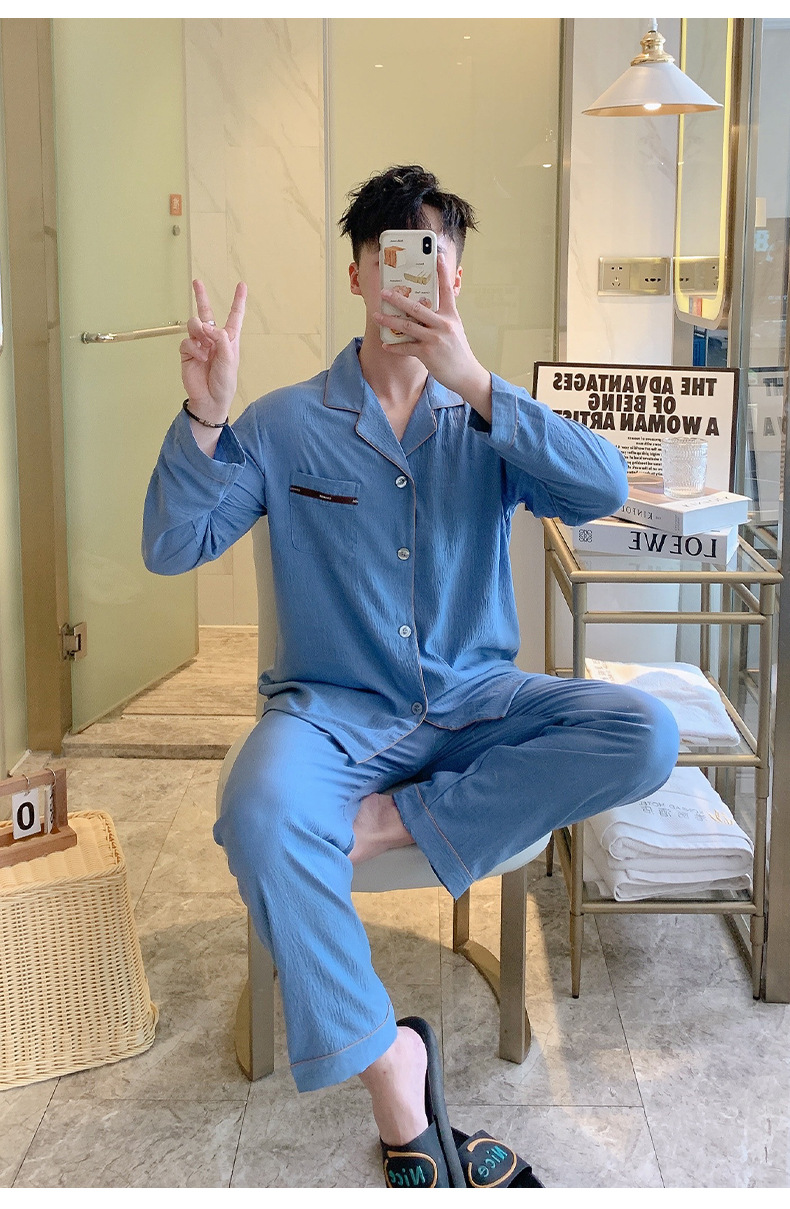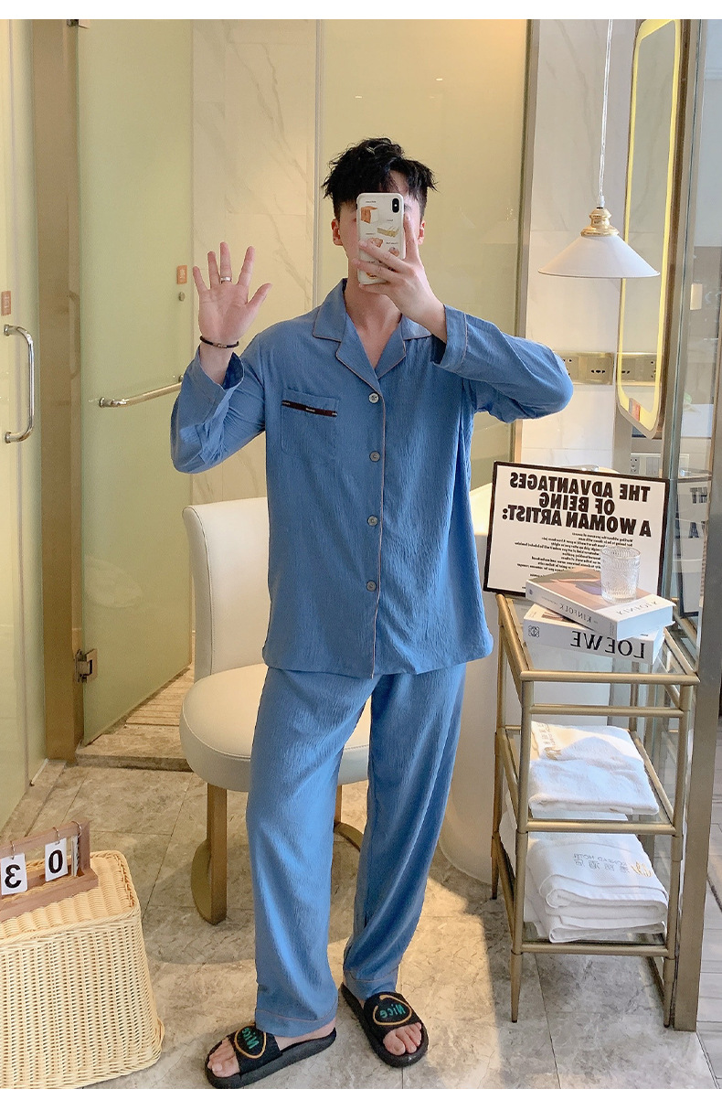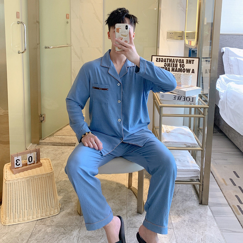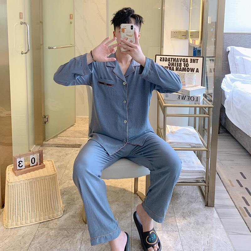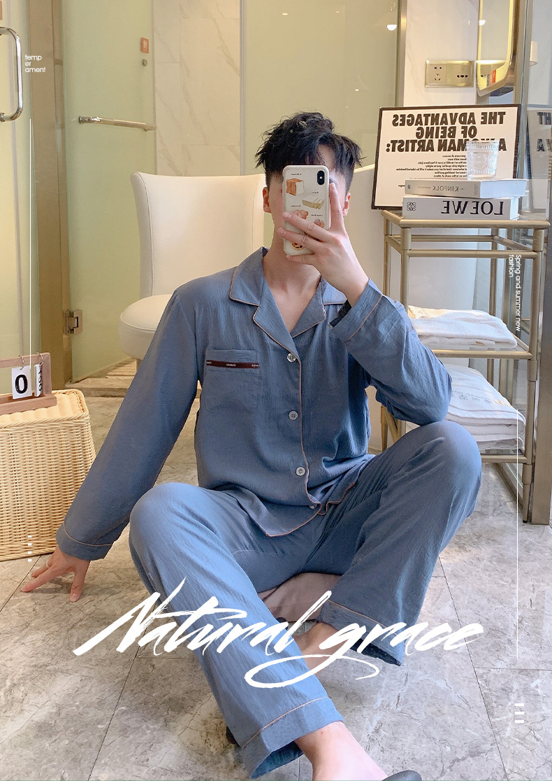 새로운 면 잠옷 남성 긴팔 봄, 가을 십대 소년 여름 가정 의류 대형 세트 HDF305스토어 가기