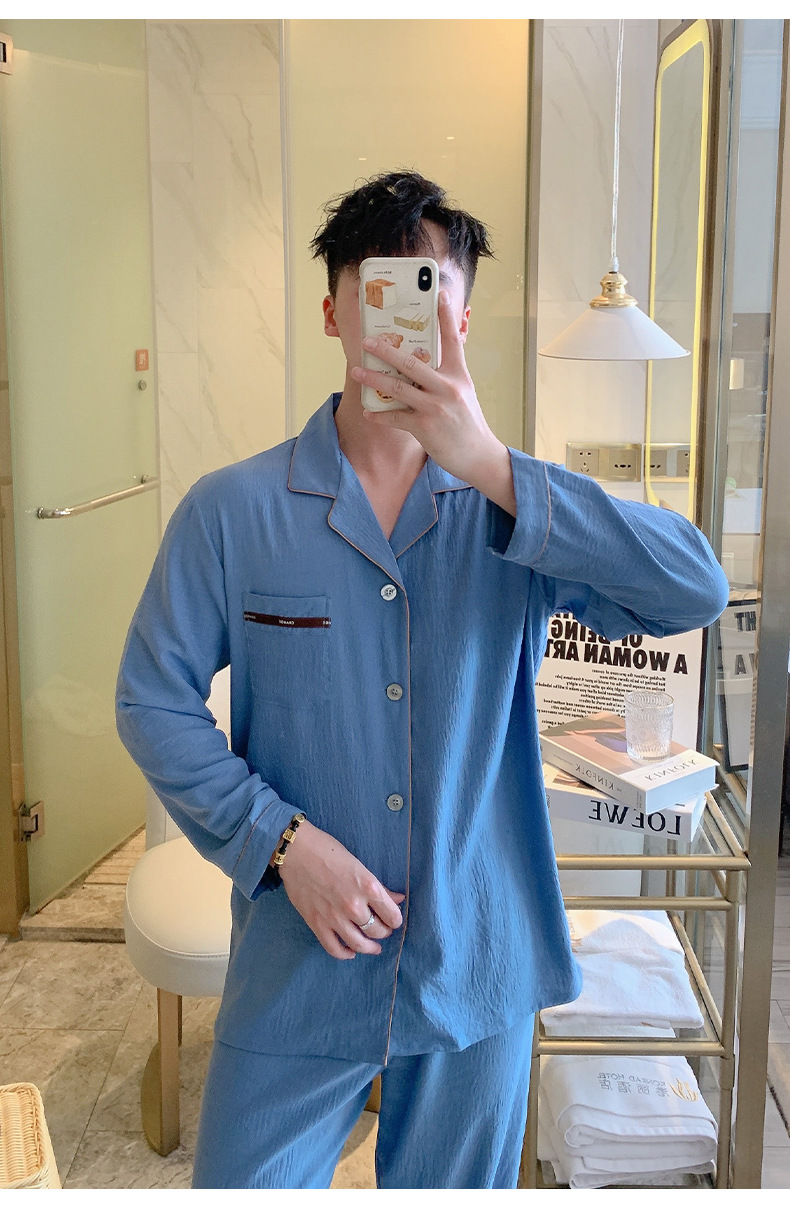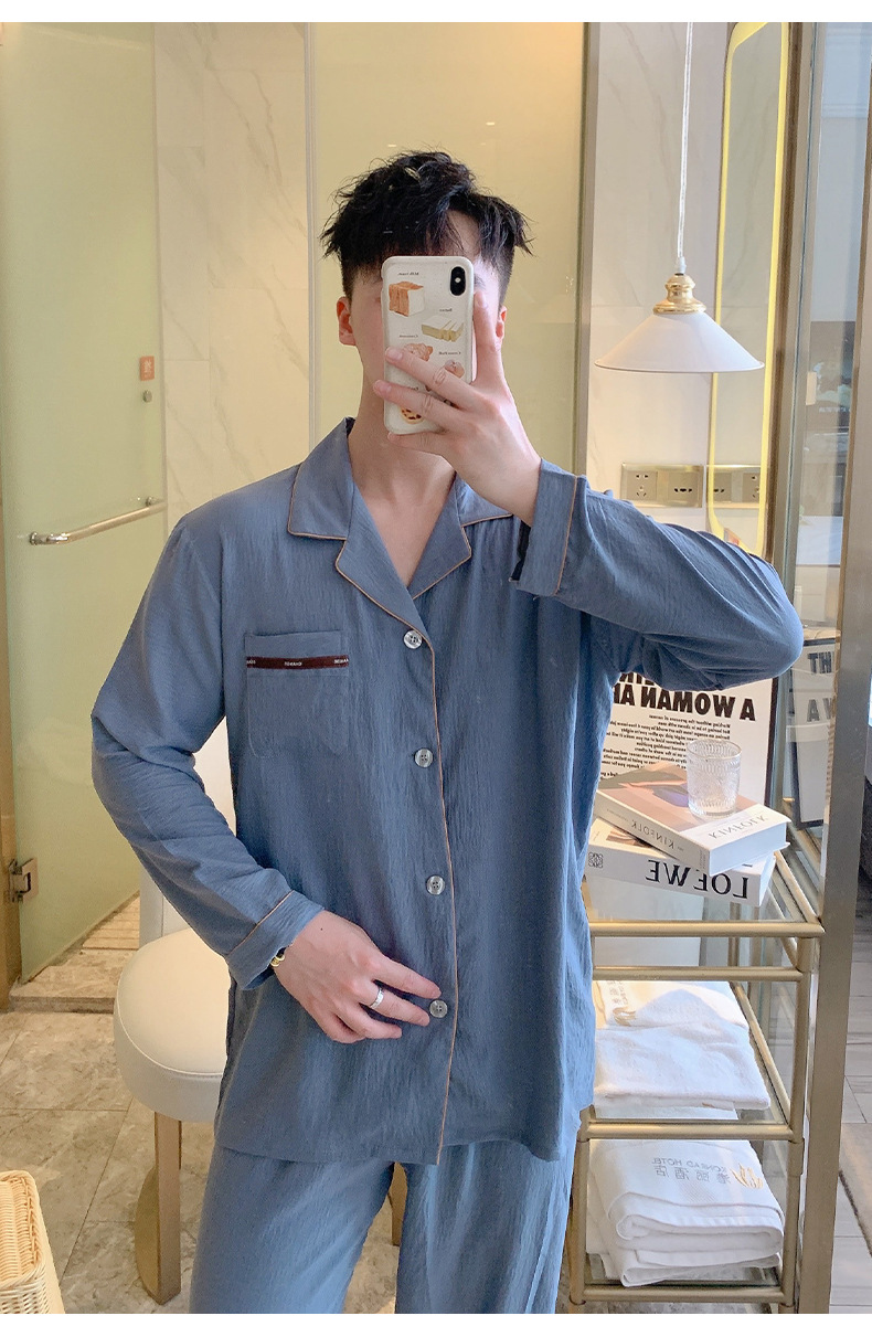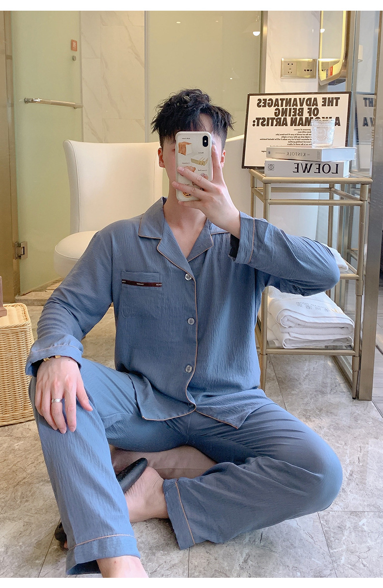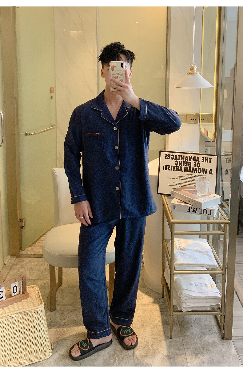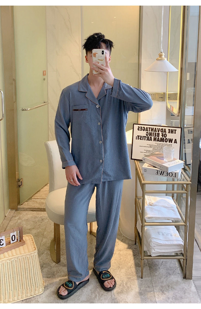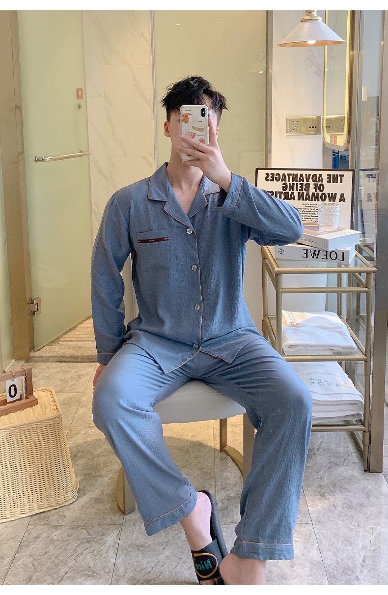 새로운 면 잠옷 남성 긴팔 봄, 가을 십대 소년 여름 가정 의류 대형 세트 HDF305스토어 가기
