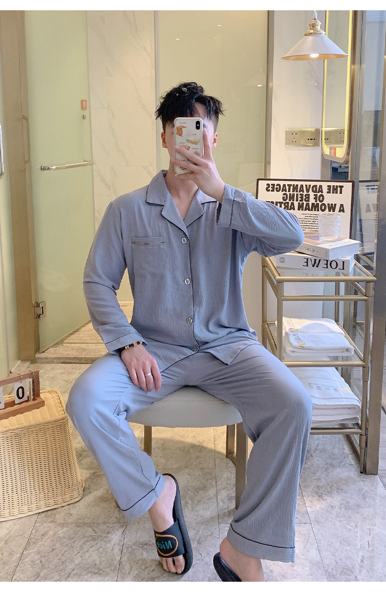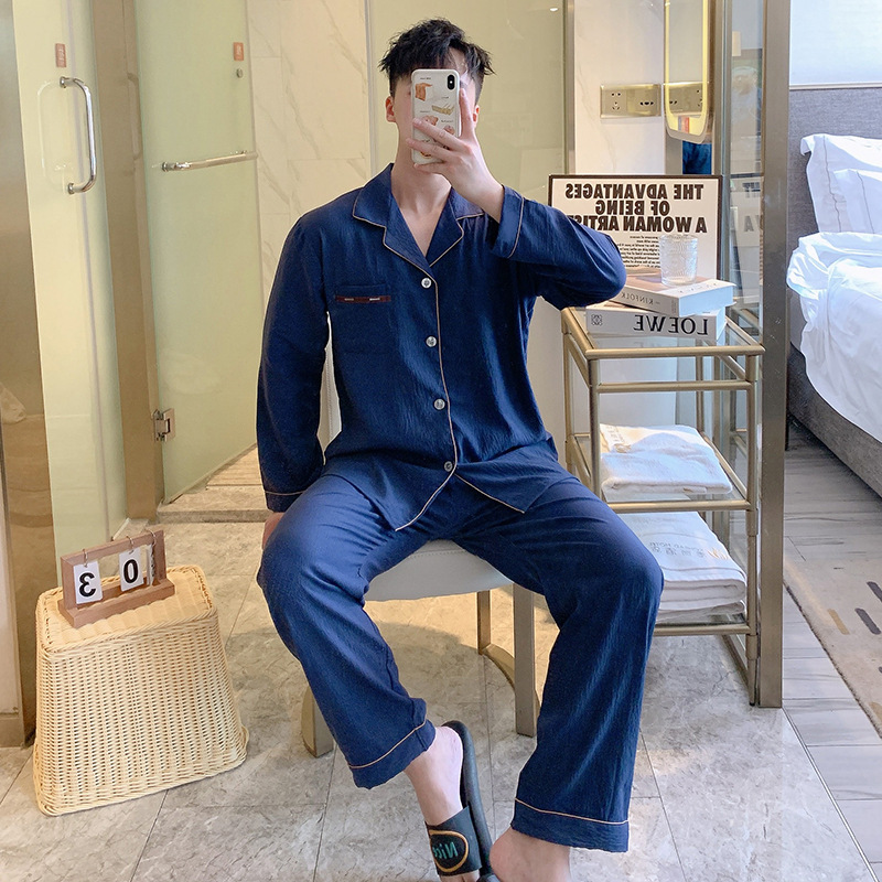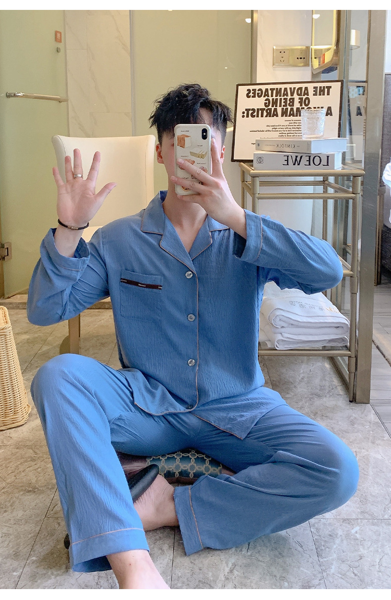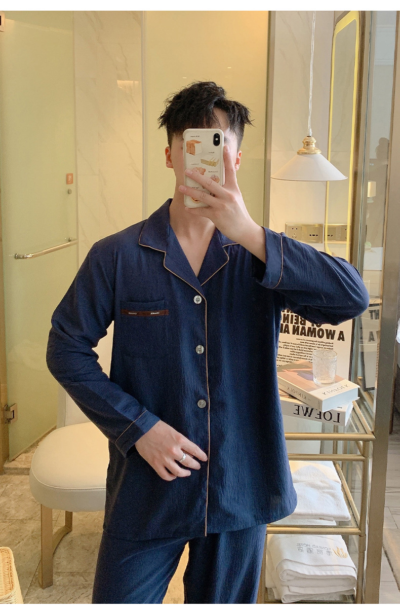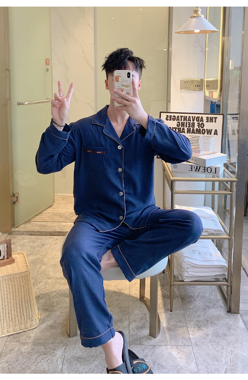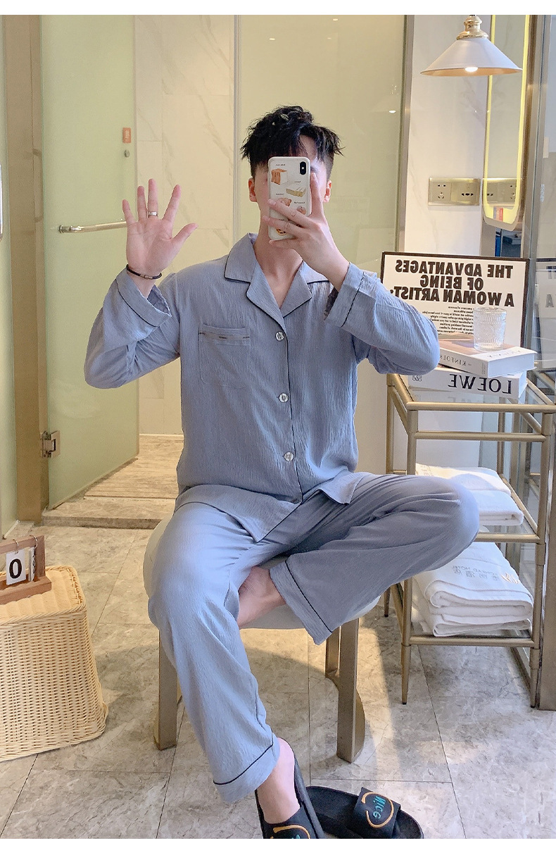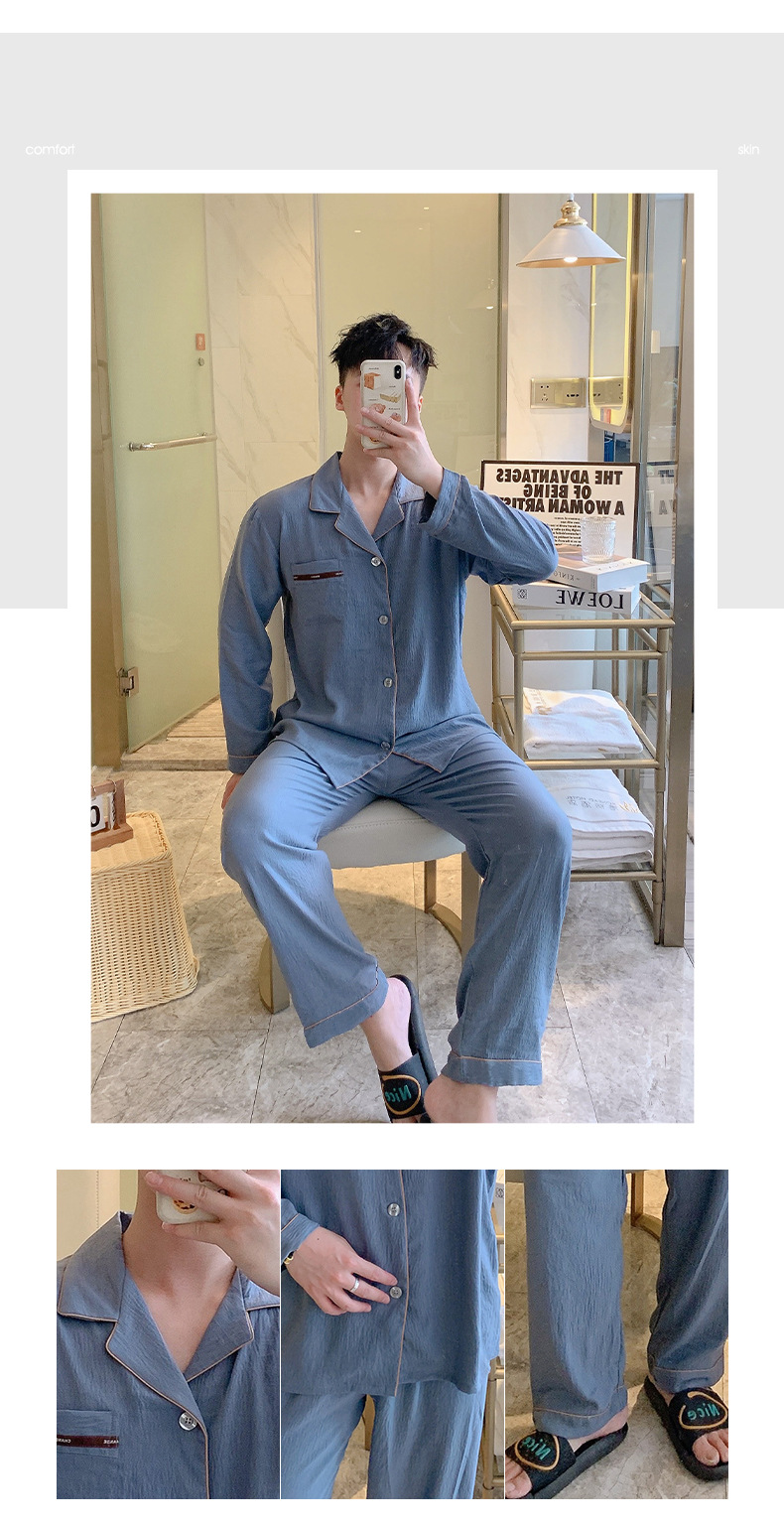 새로운 면 잠옷 남성 긴팔 봄, 가을 십대 소년 여름 가정 의류 대형 세트 HDF305스토어 가기