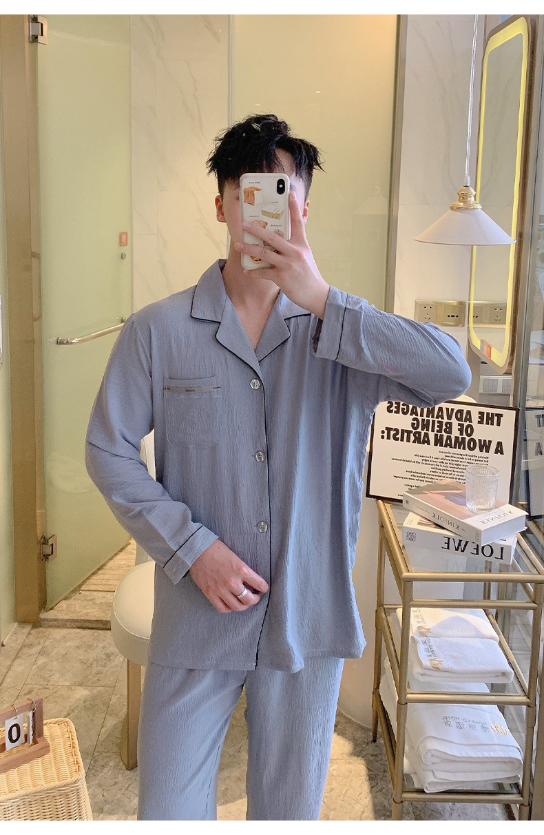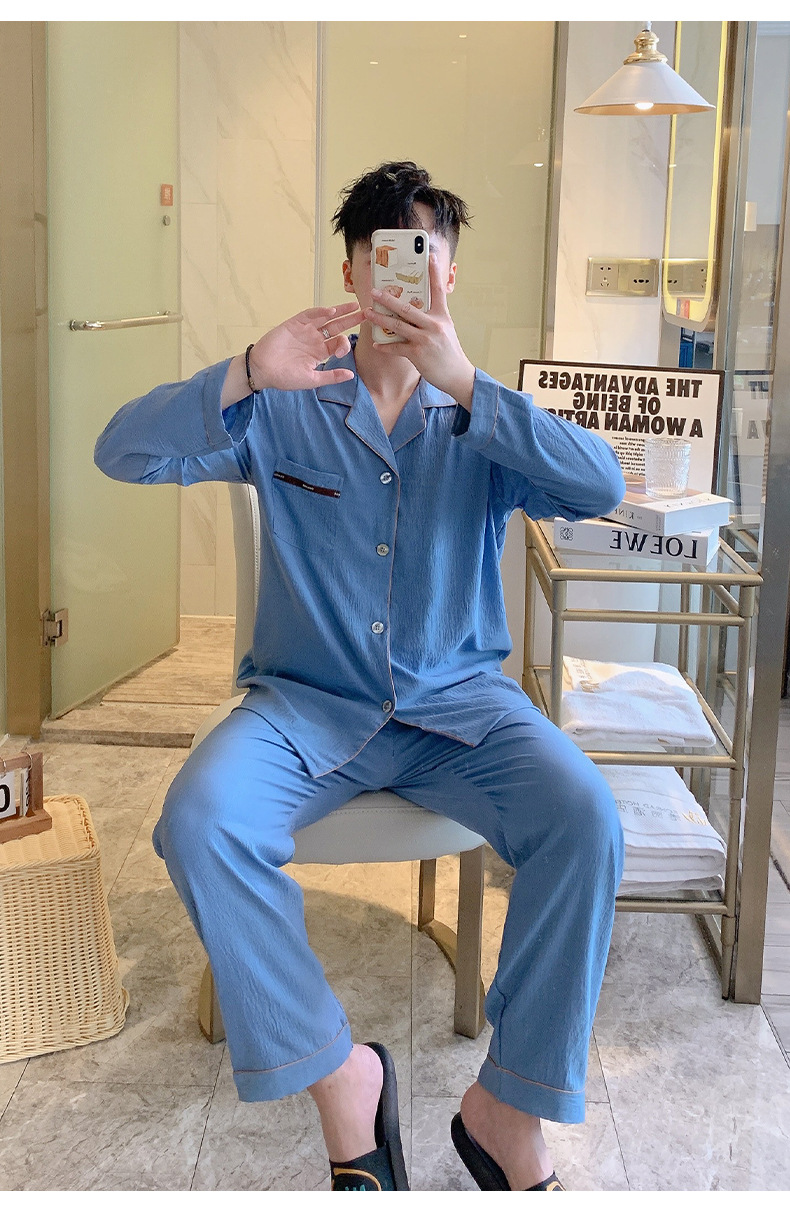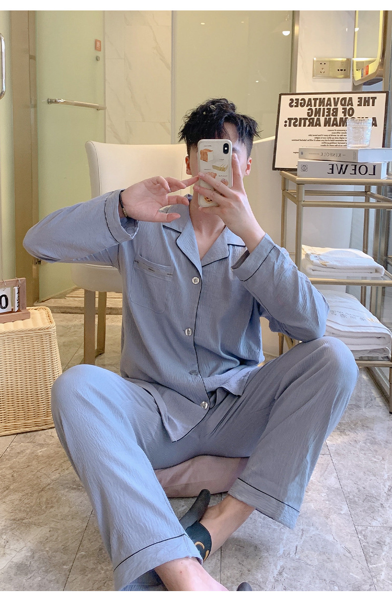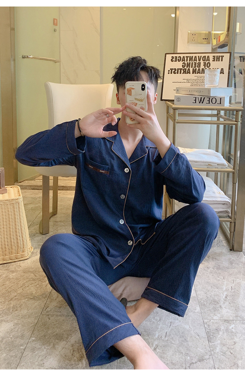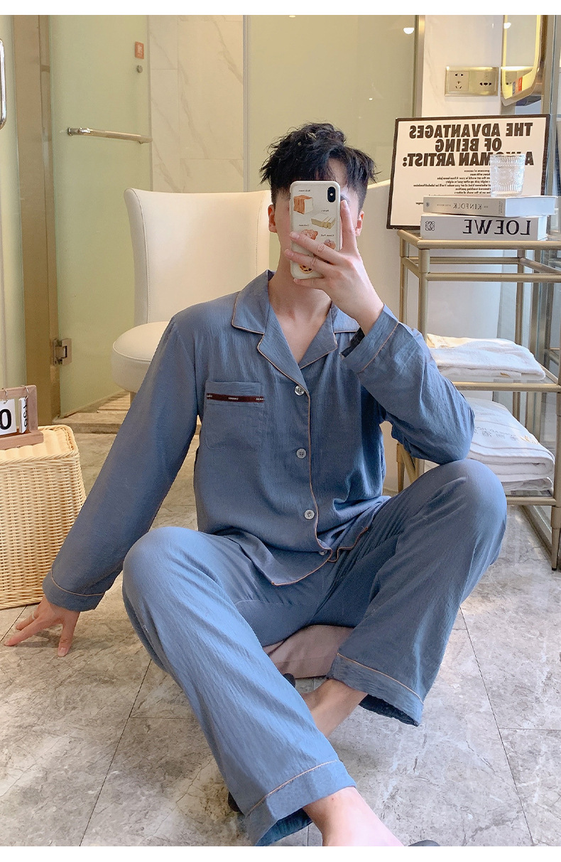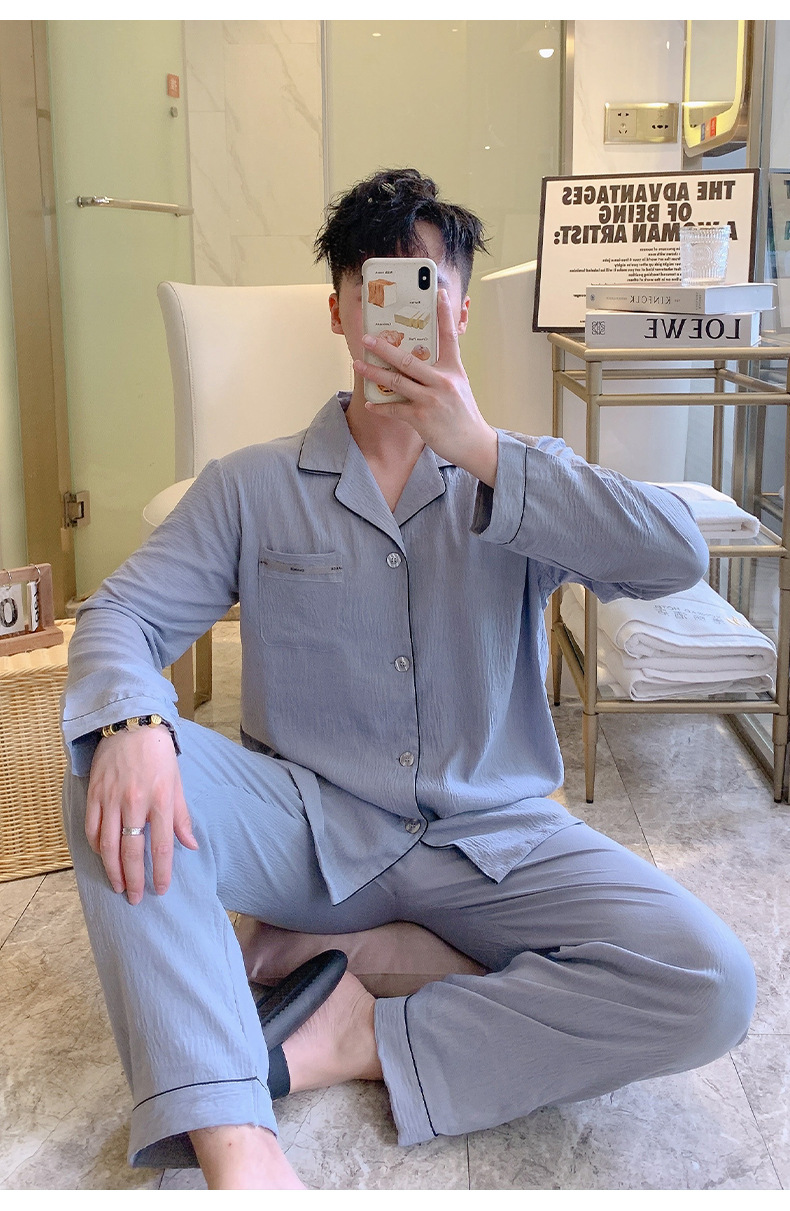 새로운 면 잠옷 남성 긴팔 봄, 가을 십대 소년 여름 가정 의류 대형 세트 HDF305스토어 가기