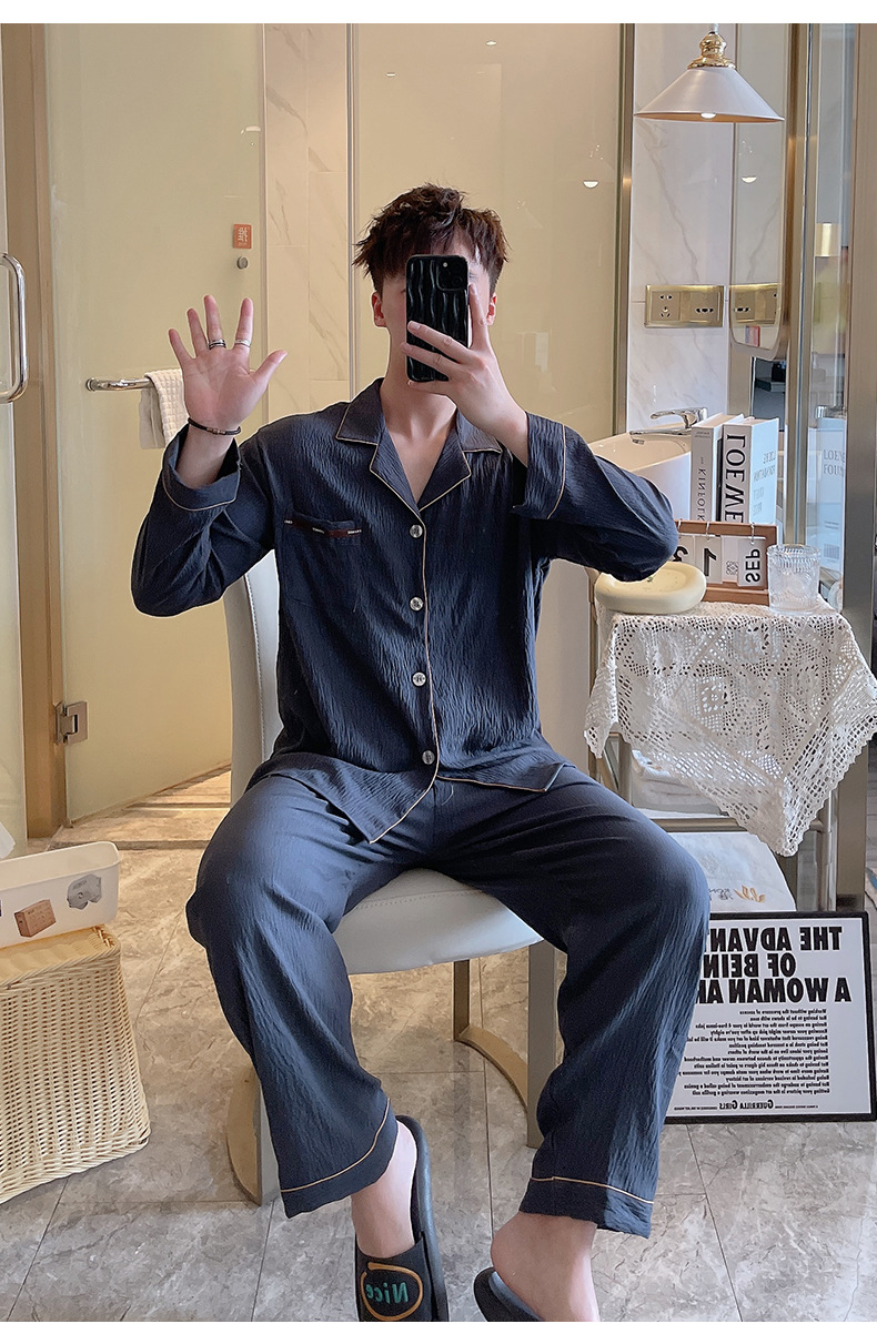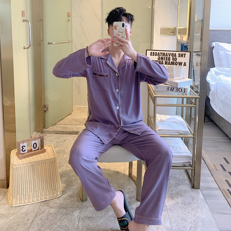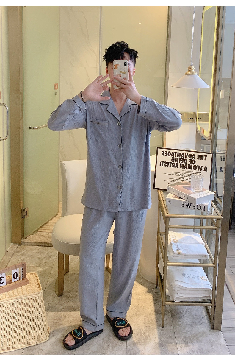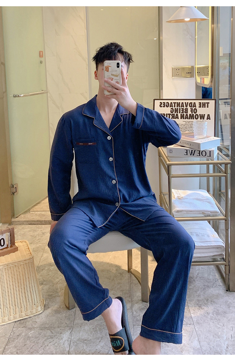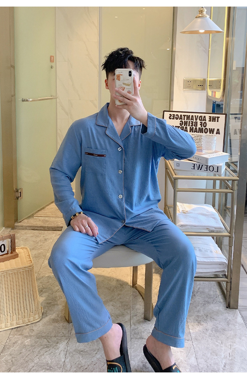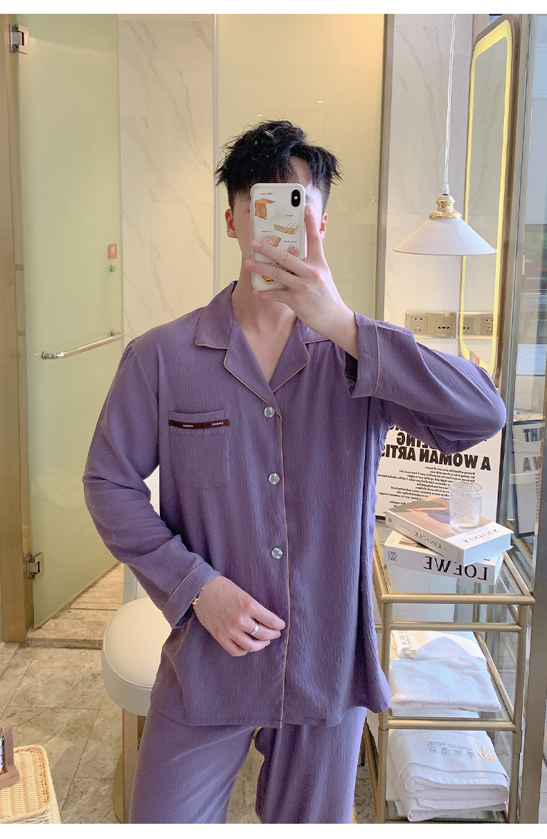 새로운 면 잠옷 남성 긴팔 봄, 가을 십대 소년 여름 가정 의류 대형 세트 HDF305스토어 가기