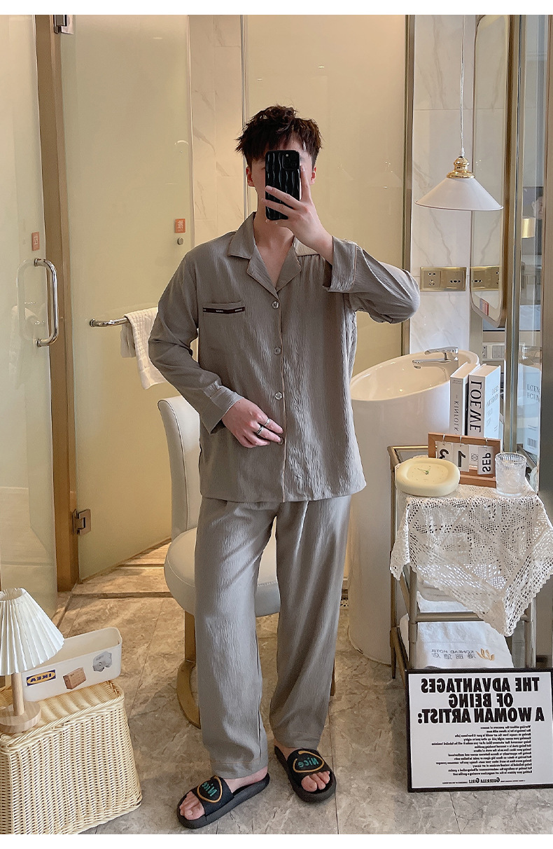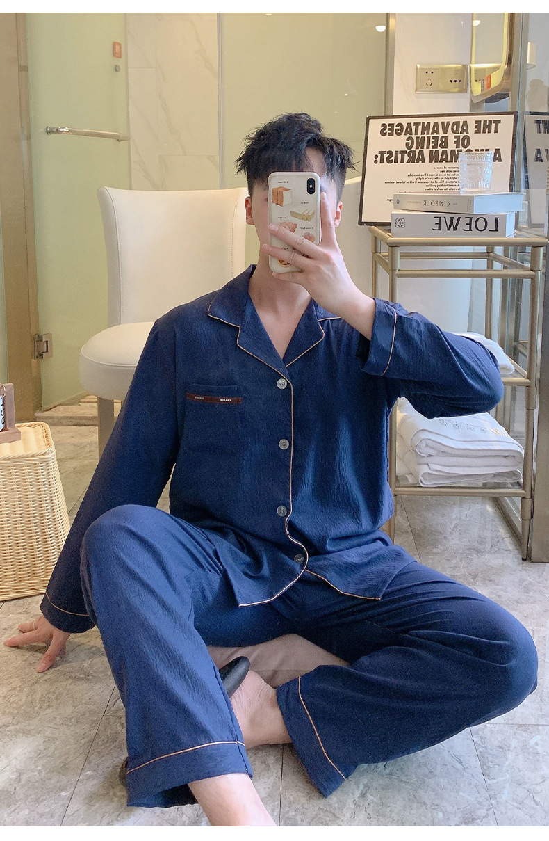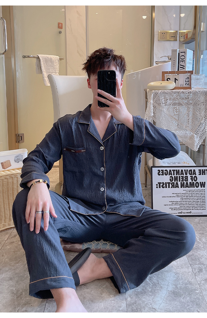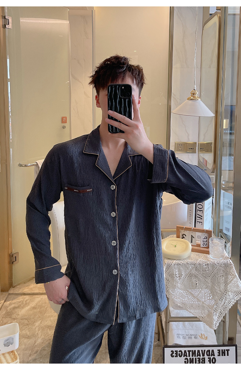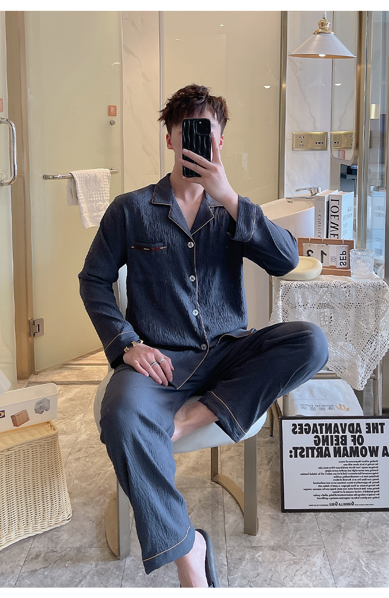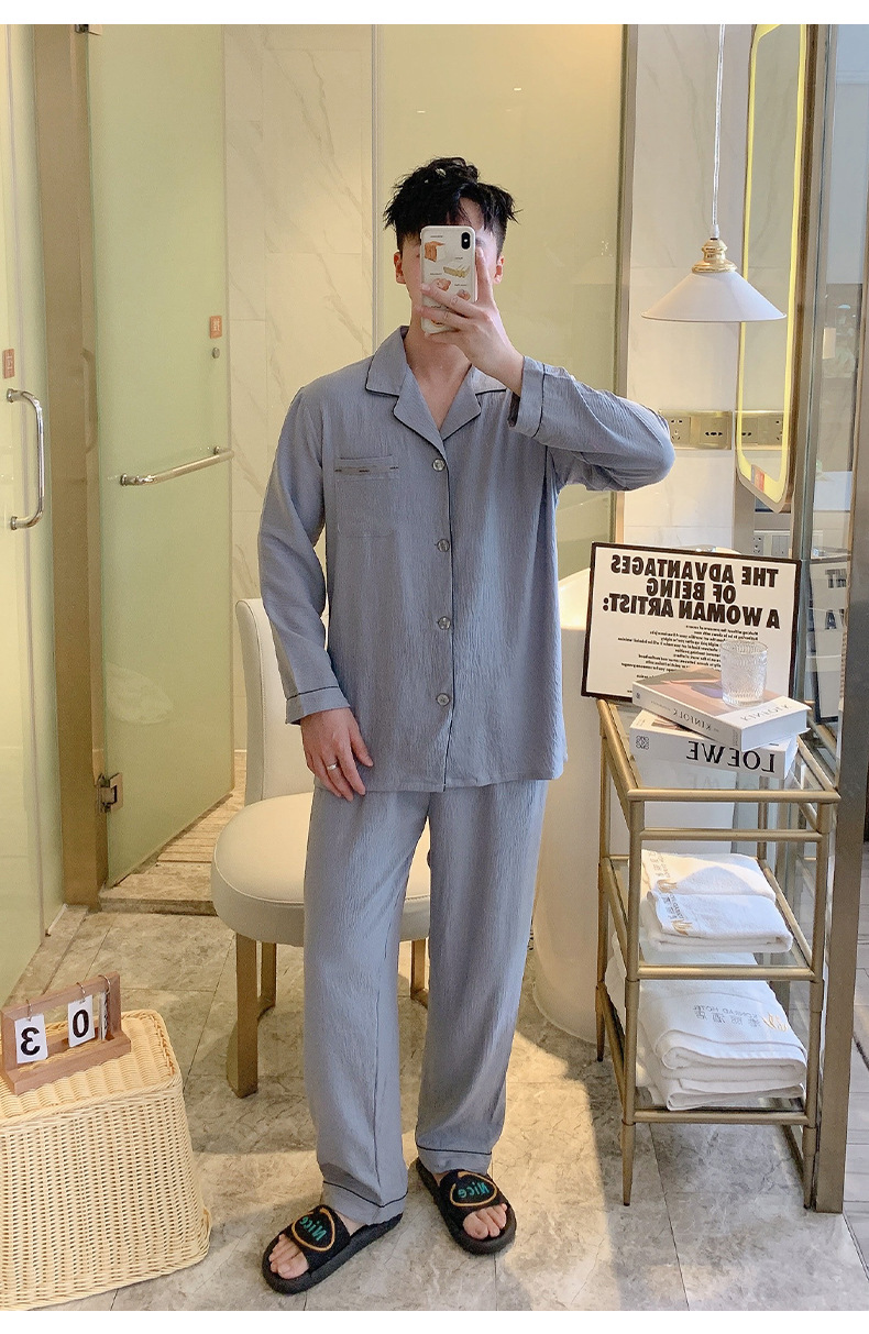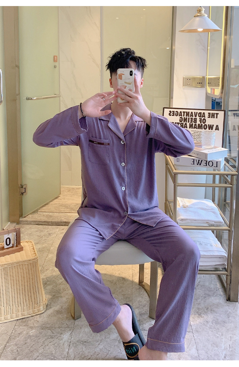 새로운 면 잠옷 남성 긴팔 봄, 가을 십대 소년 여름 가정 의류 대형 세트 HDF305스토어 가기