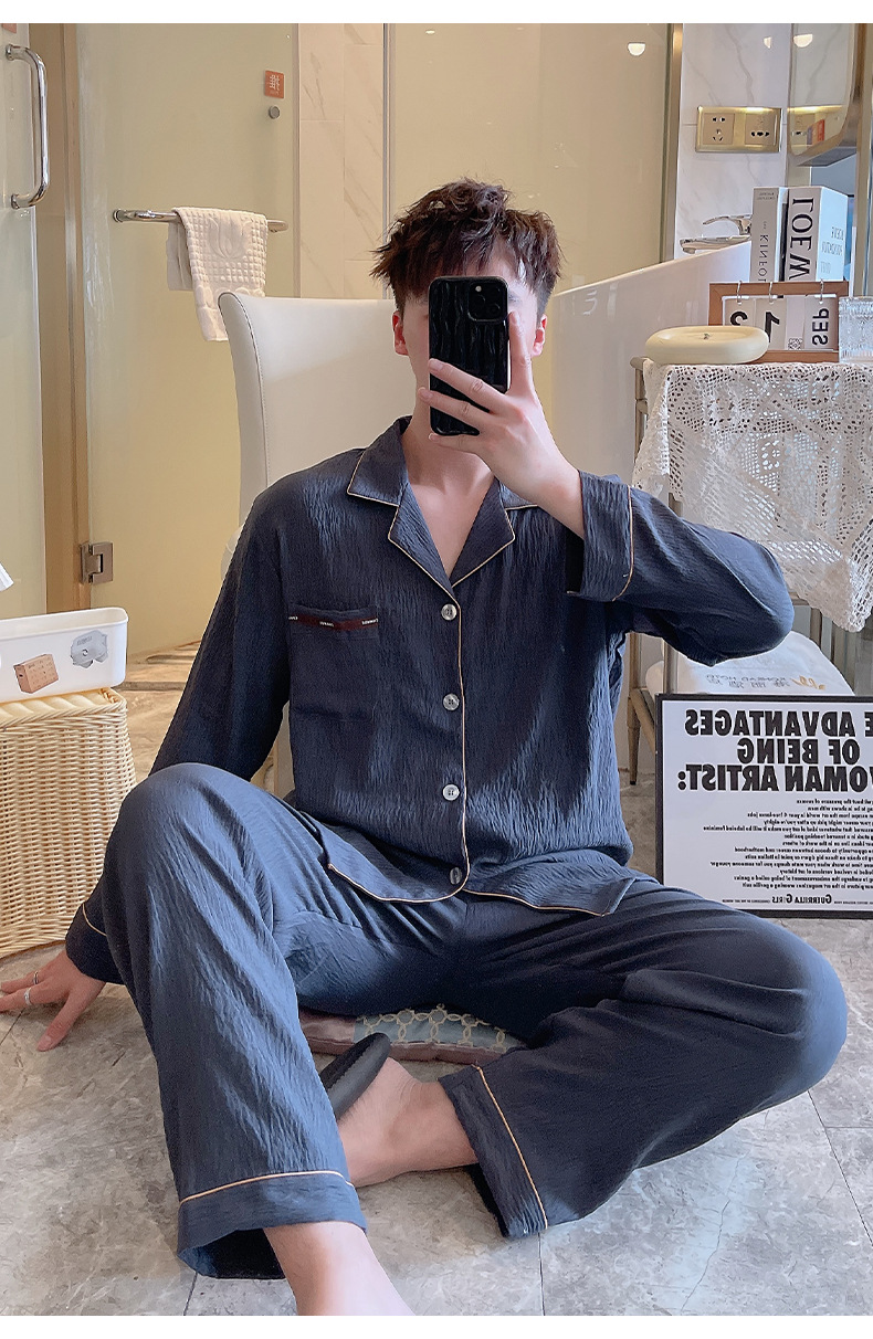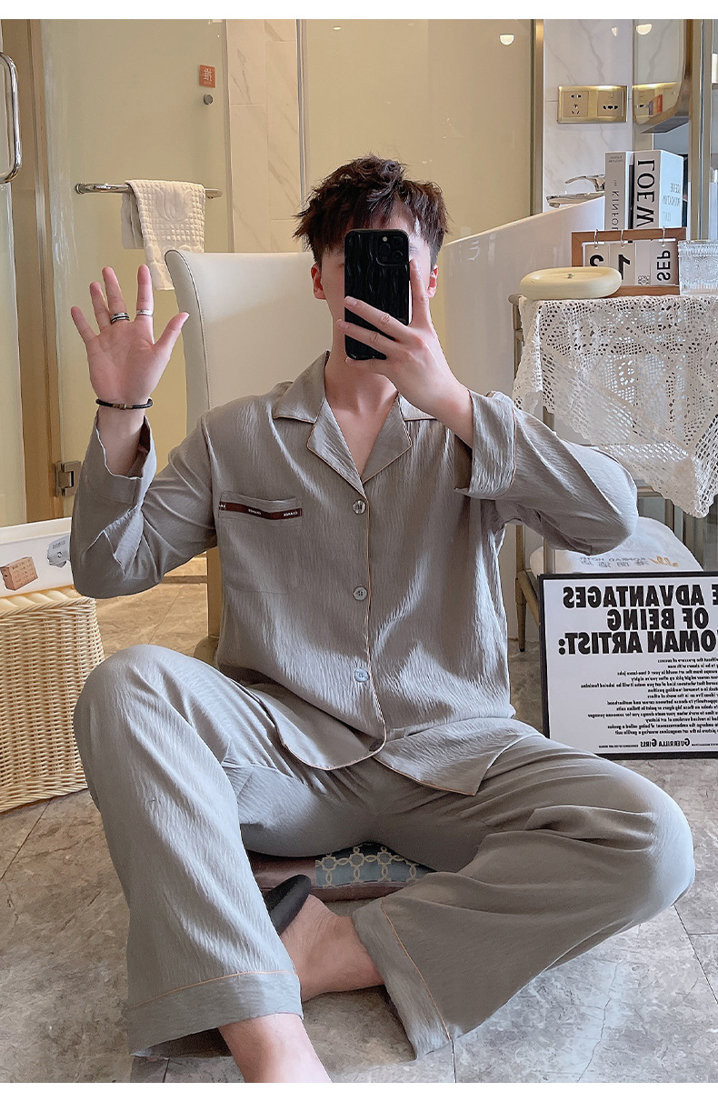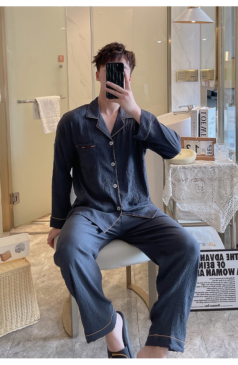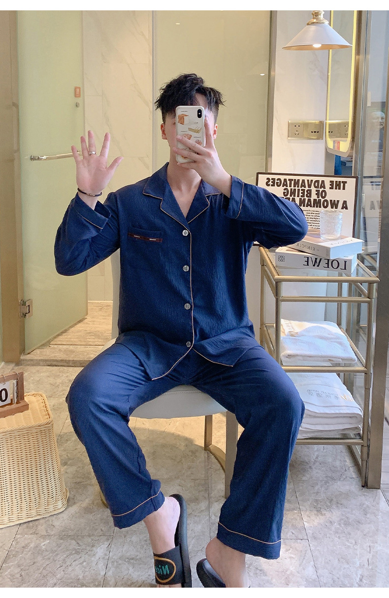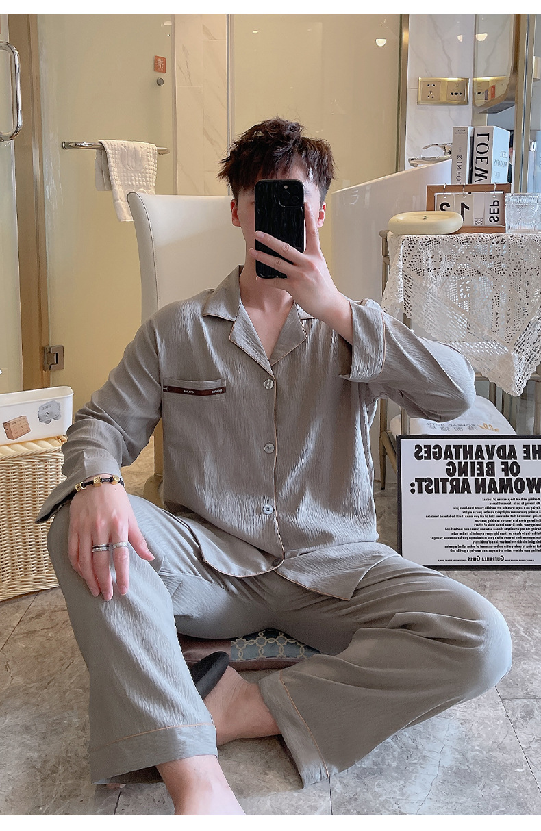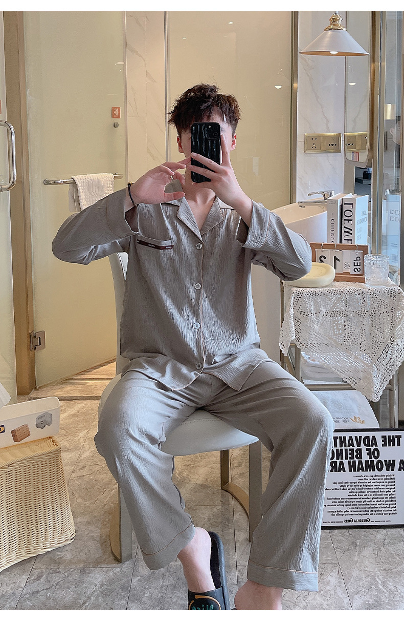 새로운 면 잠옷 남성 긴팔 봄, 가을 십대 소년 여름 가정 의류 대형 세트 HDF305스토어 가기