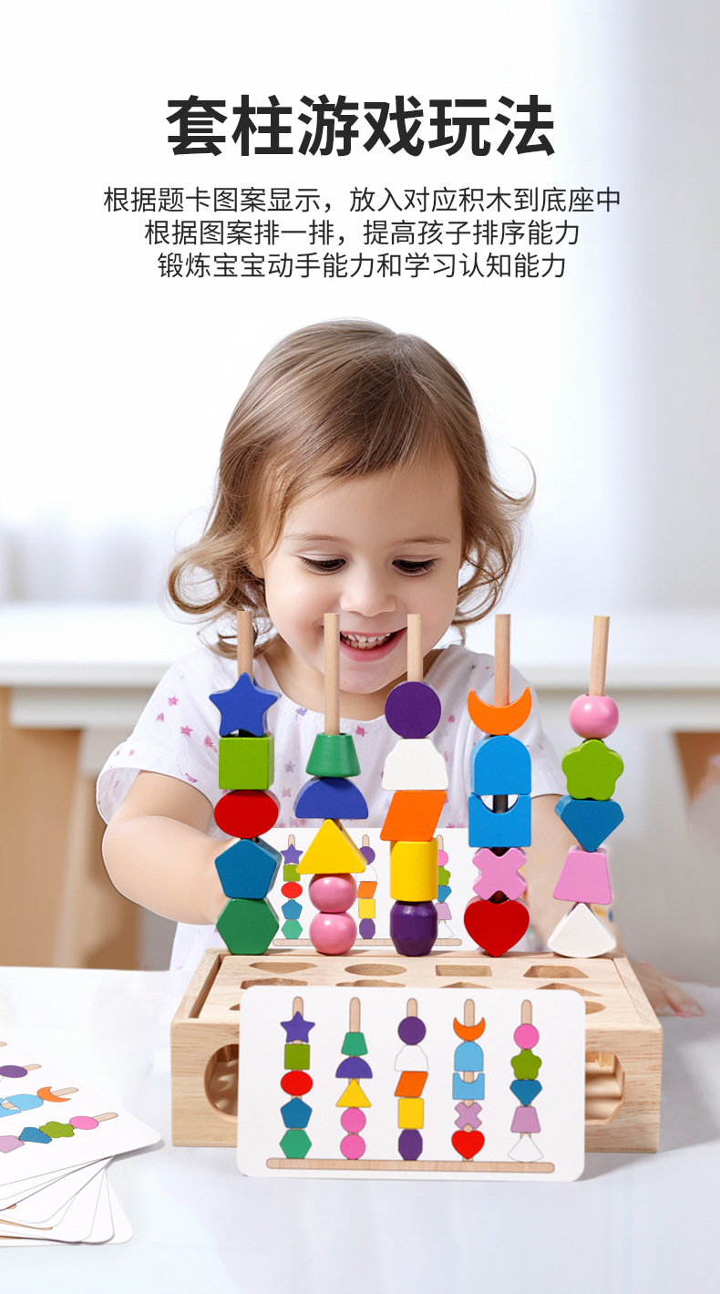 어린이 나무 열 빌딩 블록 5 세트 구슬 기하학적 매칭 인텔리전스 박스 컬러인지 퍼즐 장난감스토어 가기