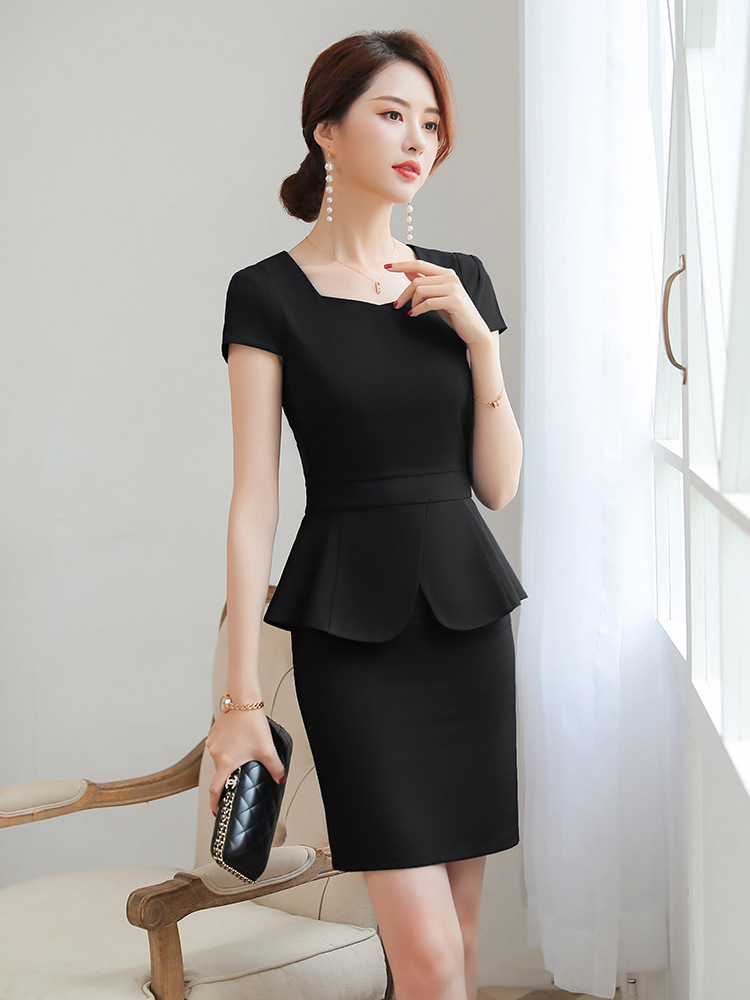 비즈니스 착용 여름 세트 여성 패션 우아한 여신 스타일 보석 가게 뷰티 살롱 작업 옷 원피스 얇은 원피스