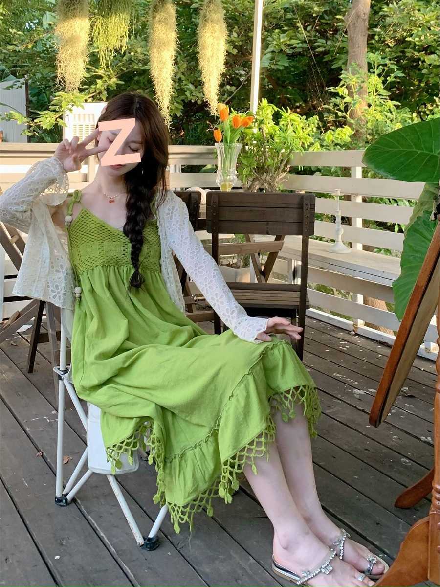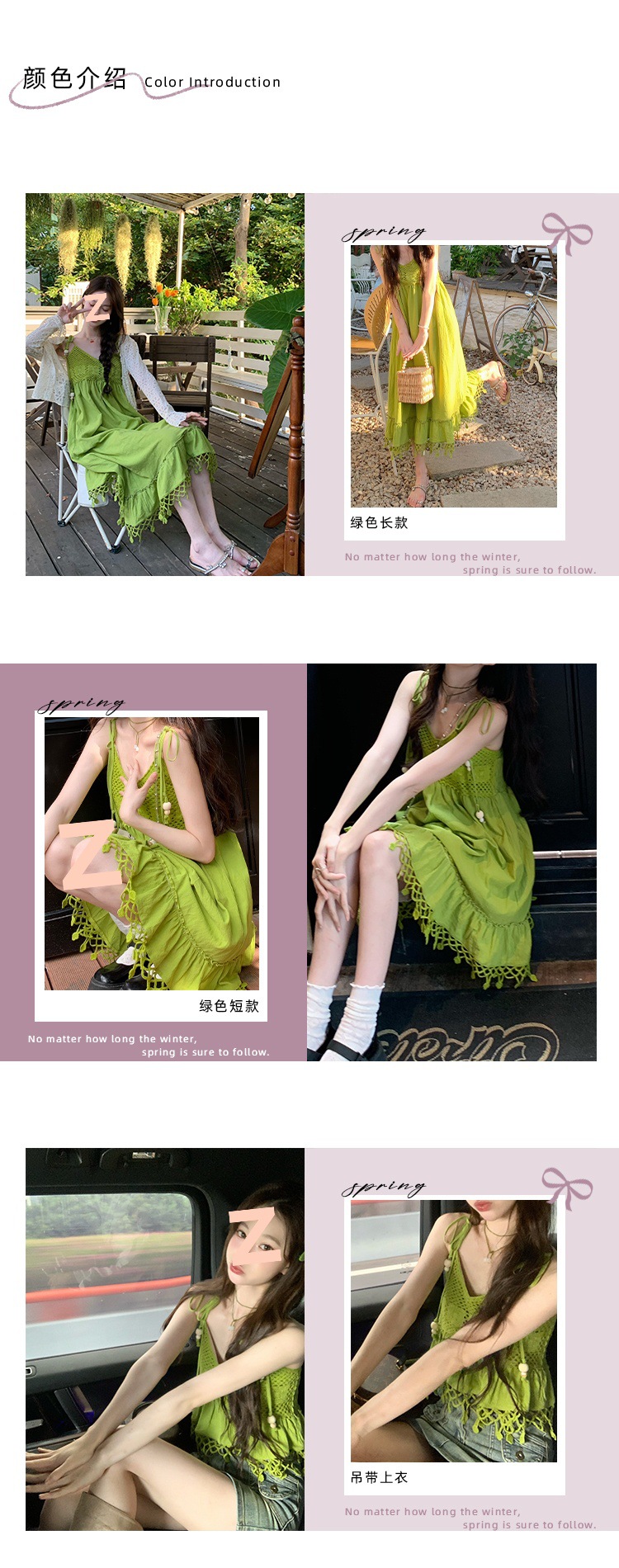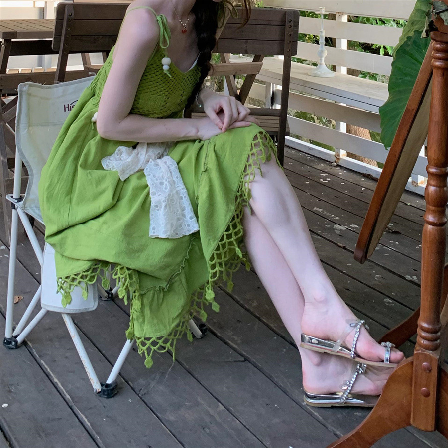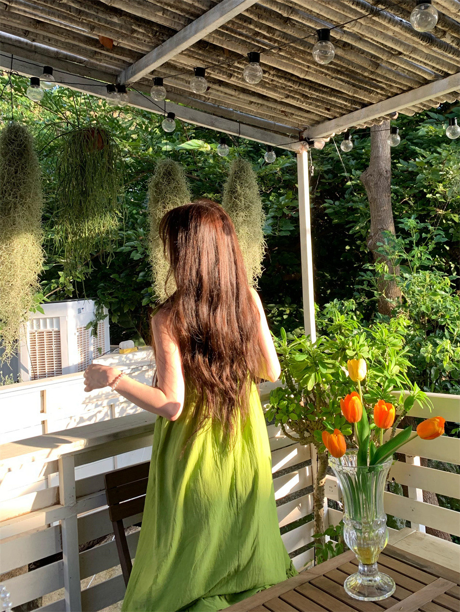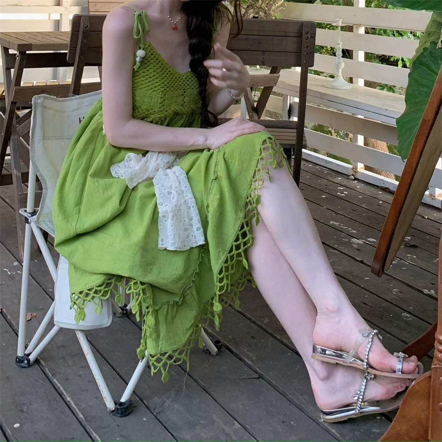 여성을위한 Bai Tiancai 서스펜더 드레스 여름 2025 새로운 스타일 드레이프 보헤미안 여행 휴가 롱 스커트