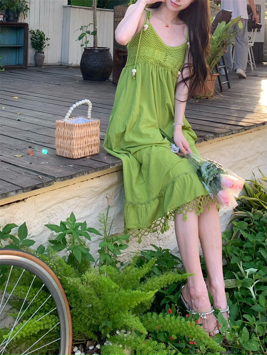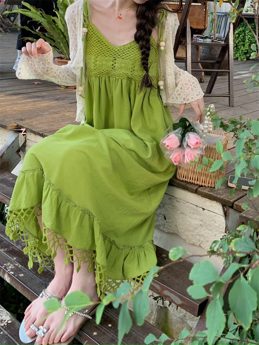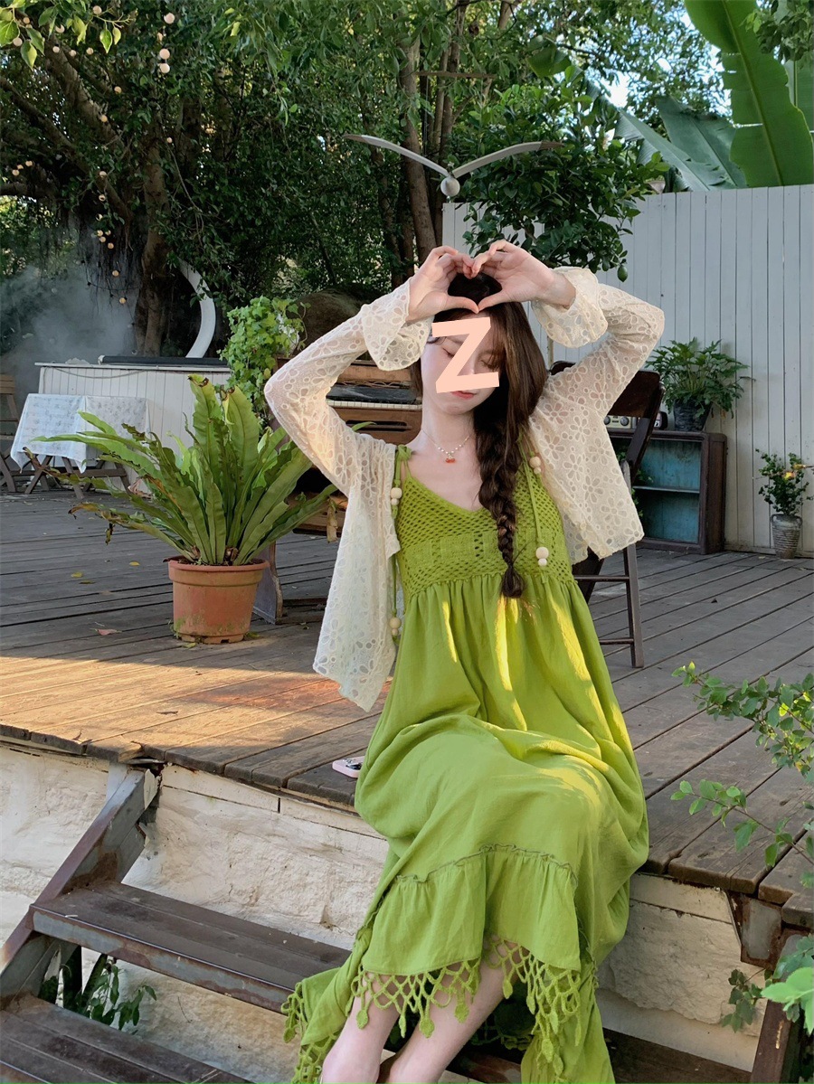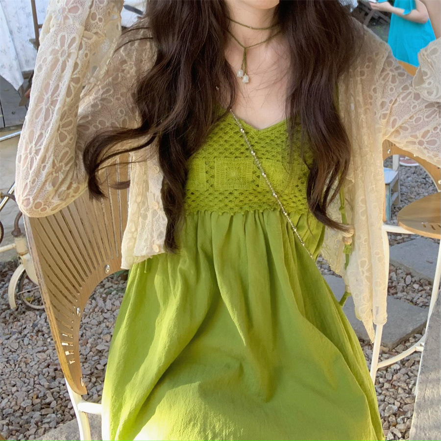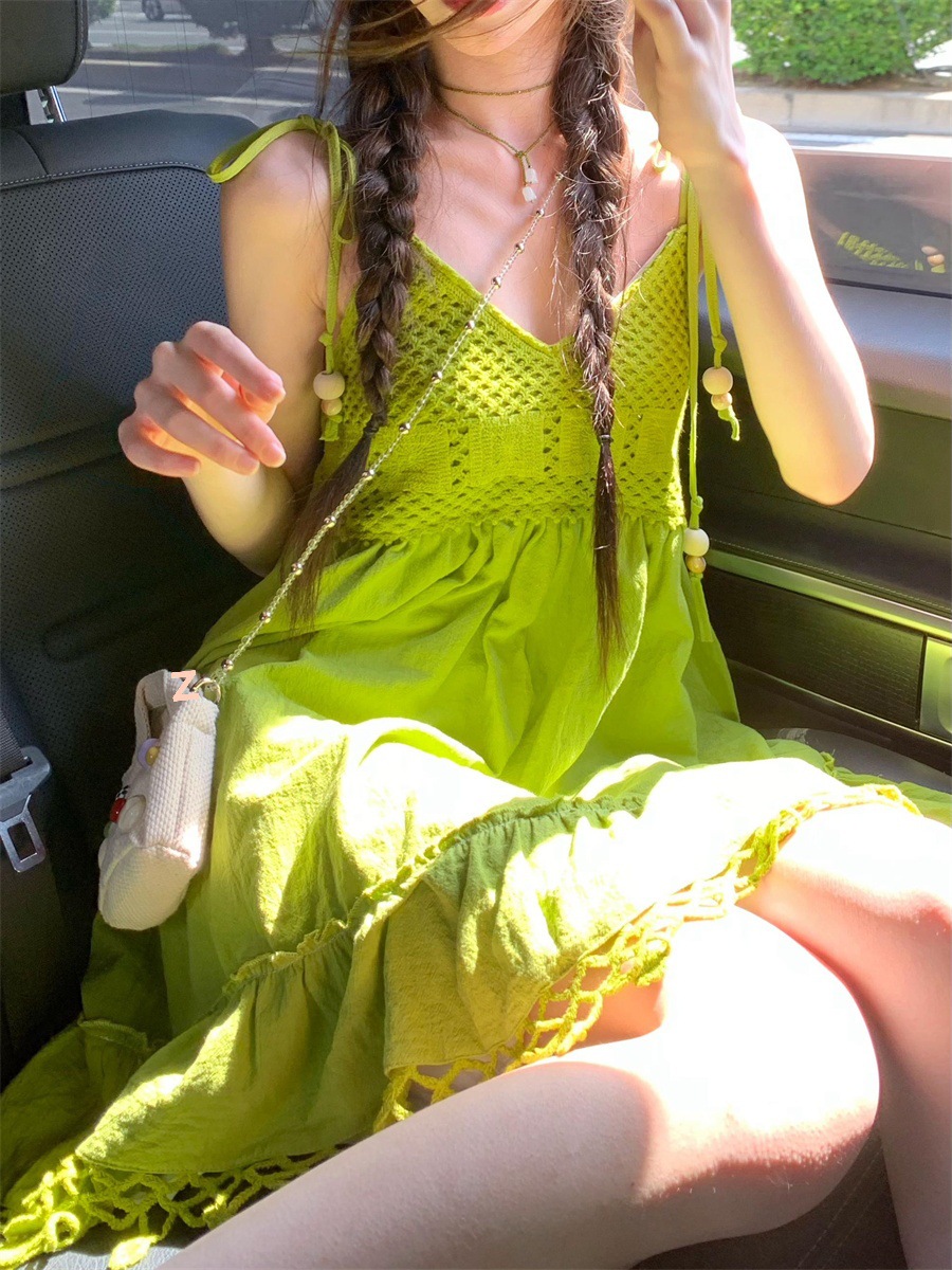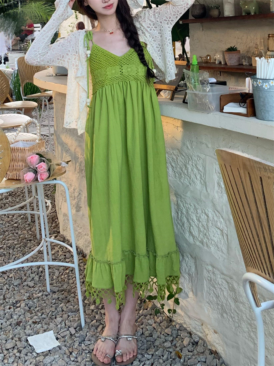 여성을위한 Bai Tiancai 서스펜더 드레스 여름 2025 새로운 스타일 드레이프 보헤미안 여행 휴가 롱 스커트