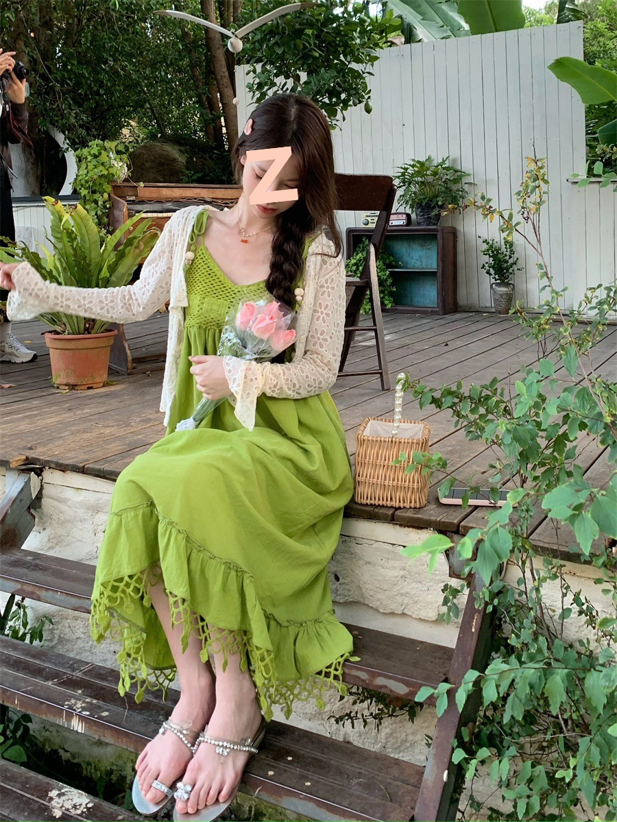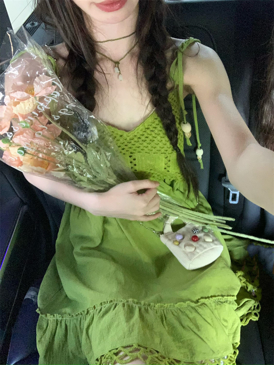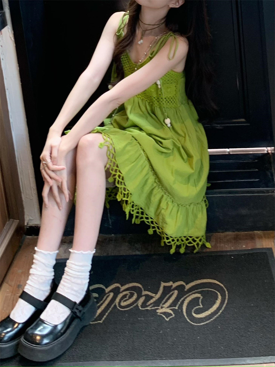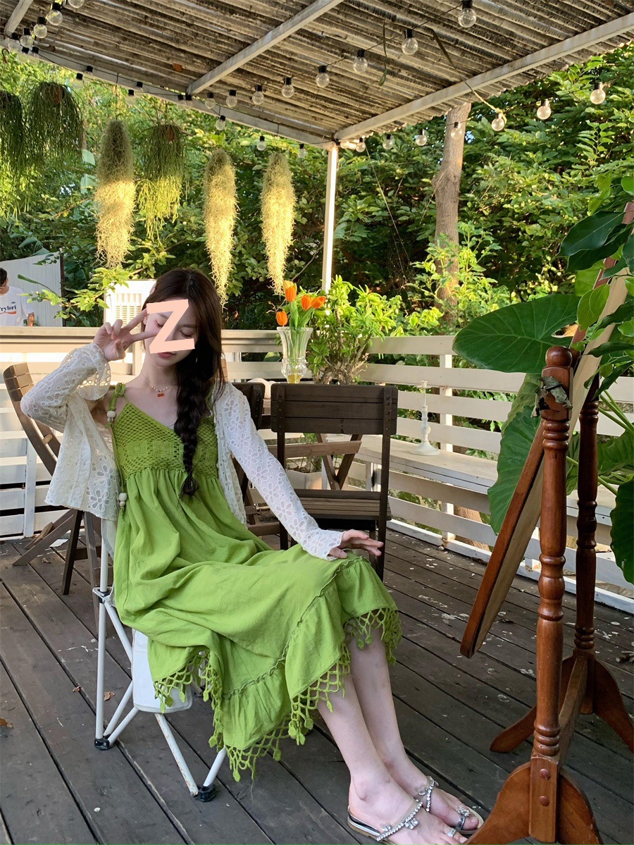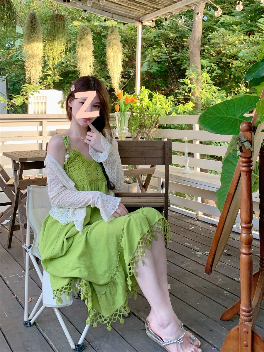 여성을위한 Bai Tiancai 서스펜더 드레스 여름 2025 새로운 스타일 드레이프 보헤미안 여행 휴가 롱 스커트