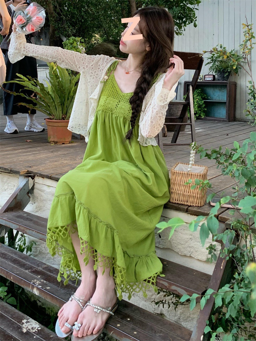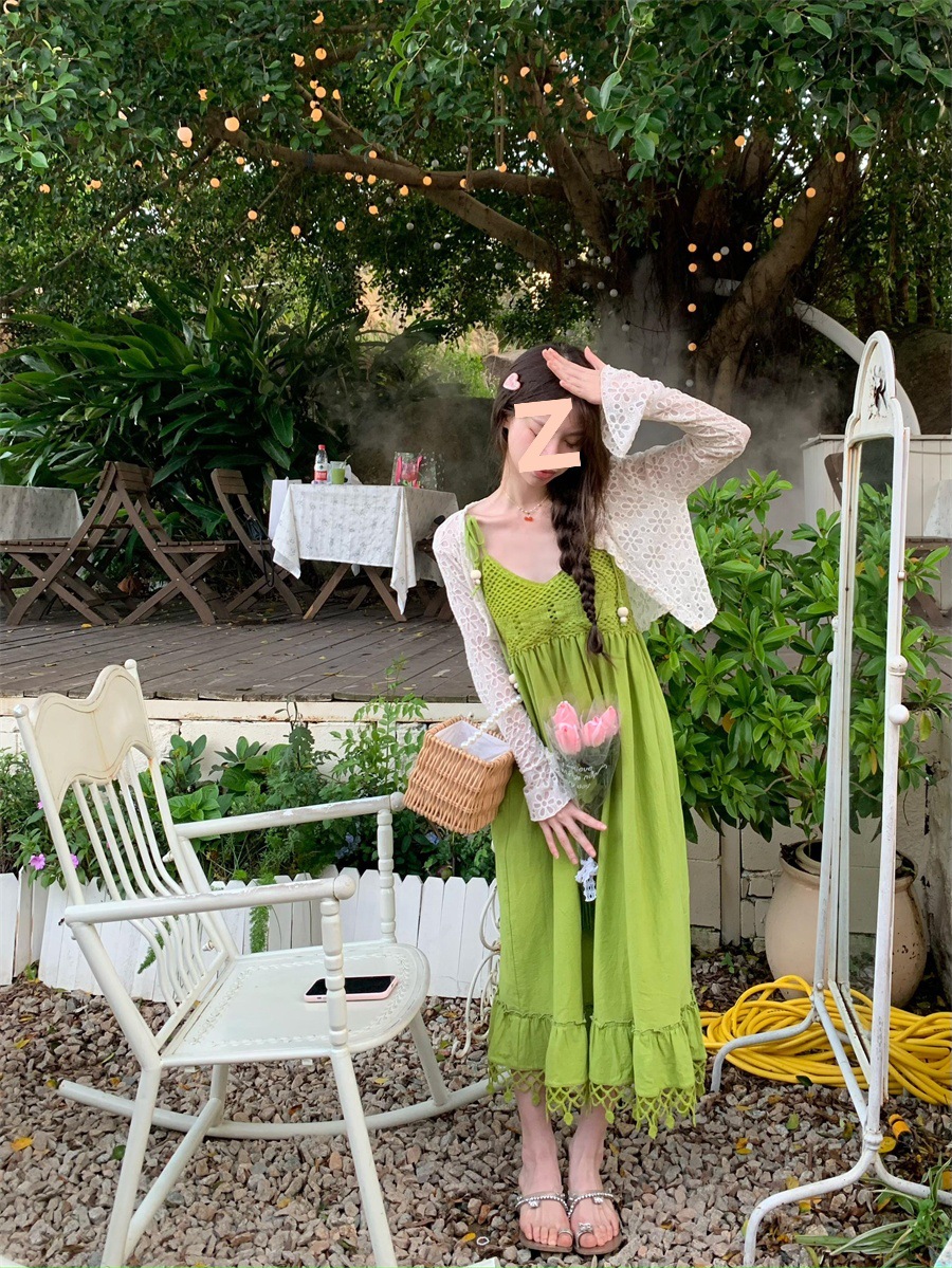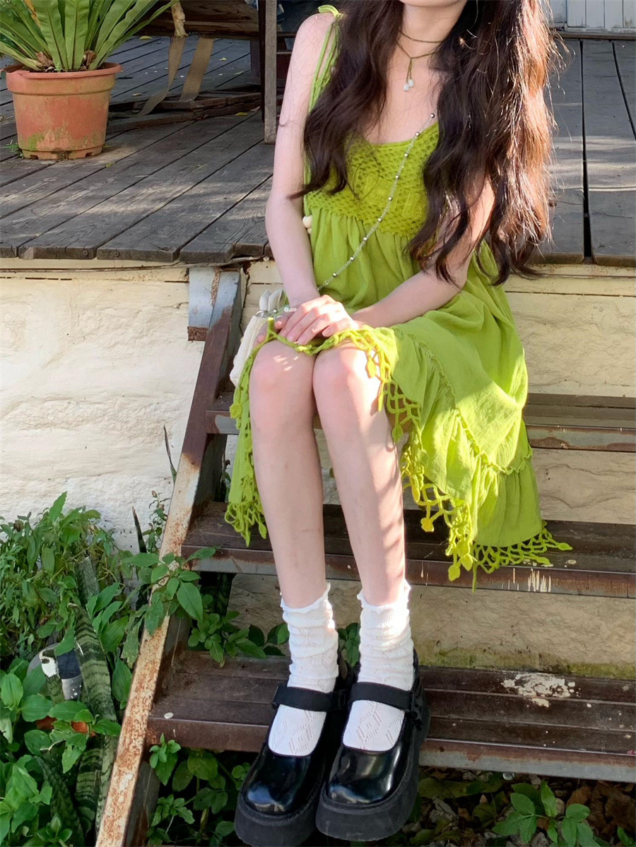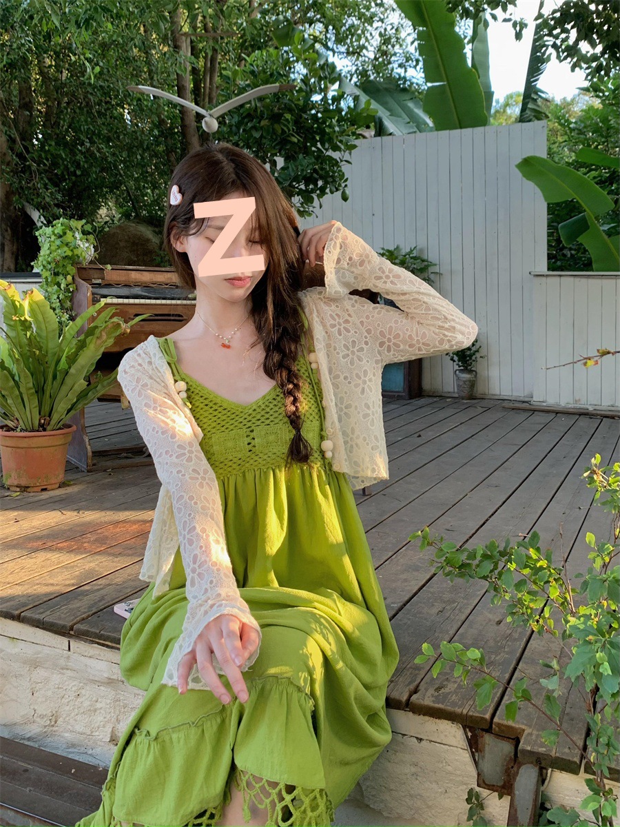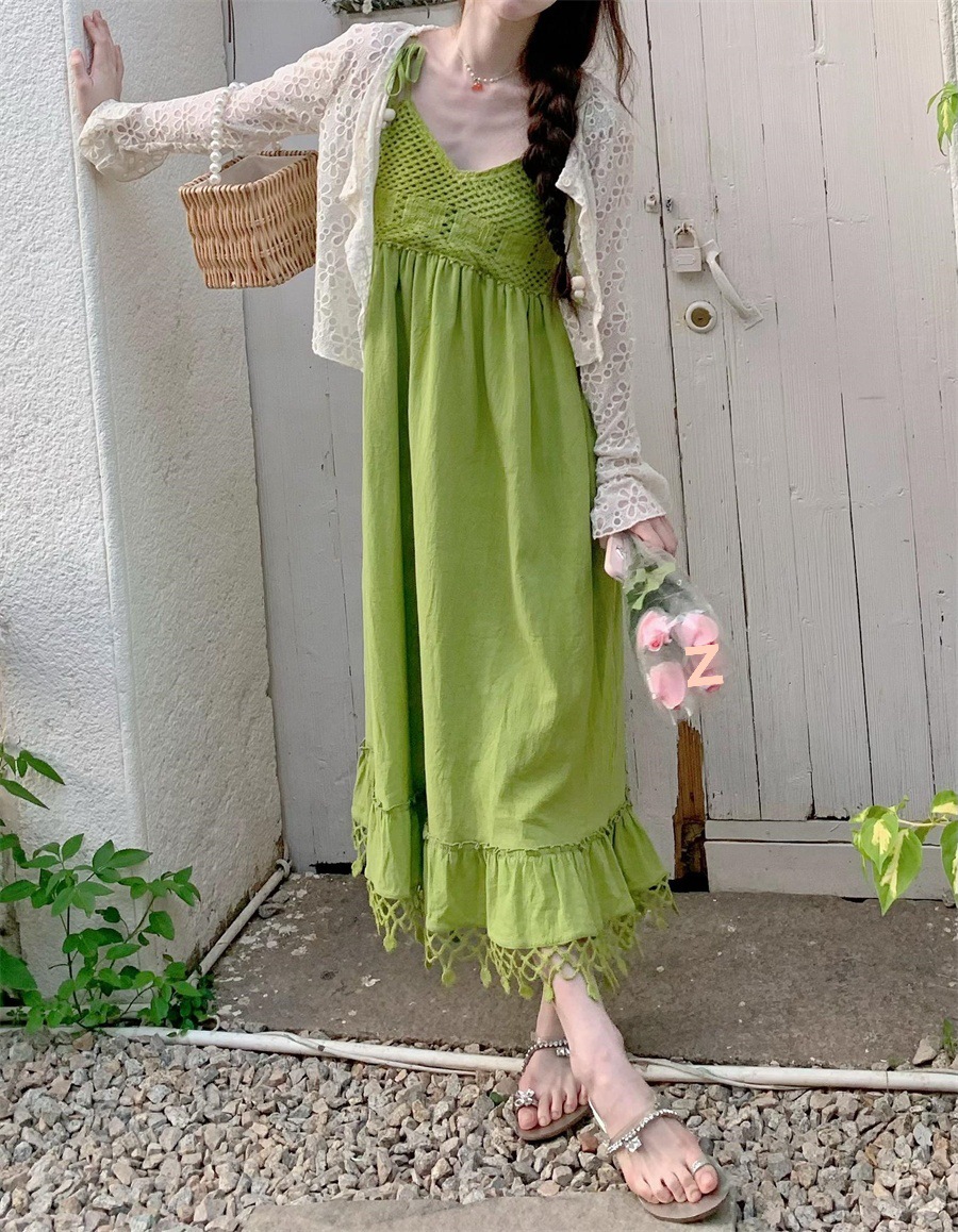 여성을위한 Bai Tiancai 서스펜더 드레스 여름 2025 새로운 스타일 드레이프 보헤미안 여행 휴가 롱 스커트