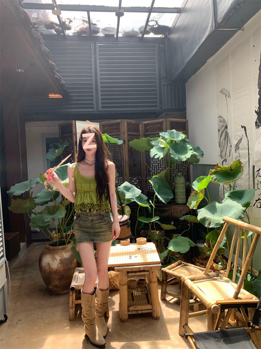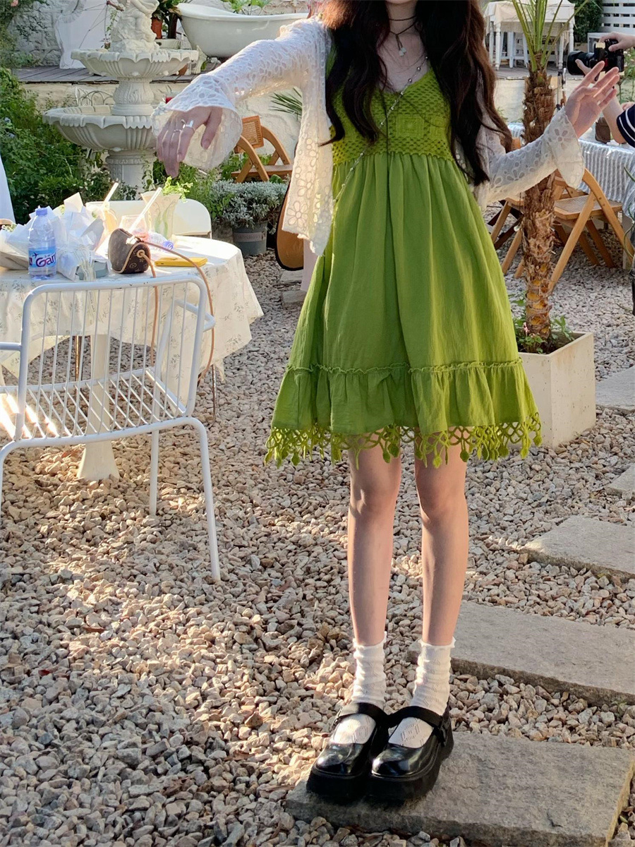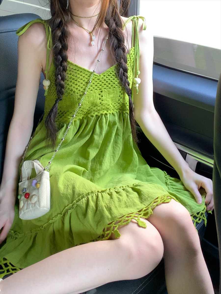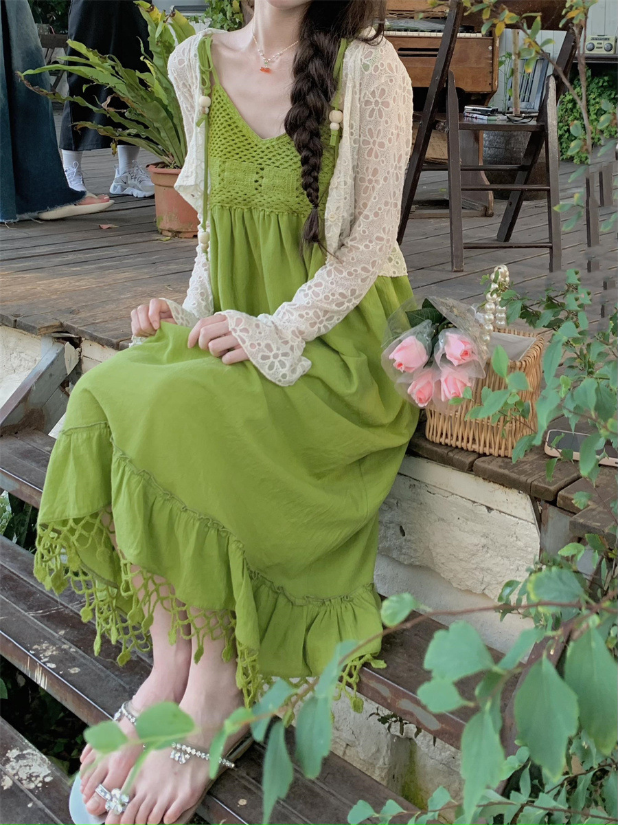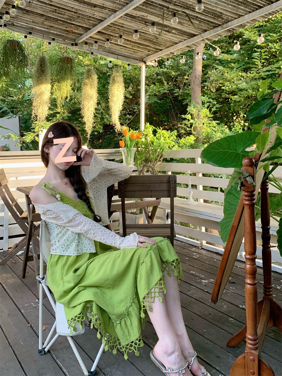 여성을위한 Bai Tiancai 서스펜더 드레스 여름 2025 새로운 스타일 드레이프 보헤미안 여행 휴가 롱 스커트