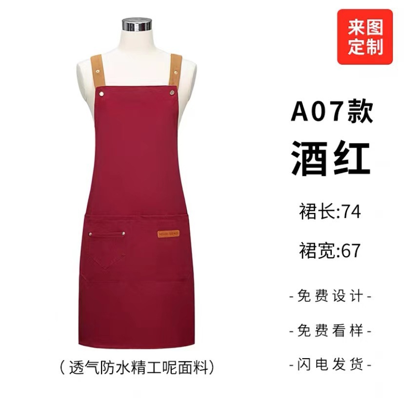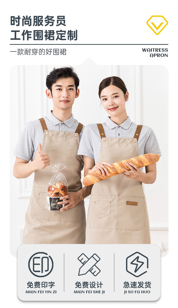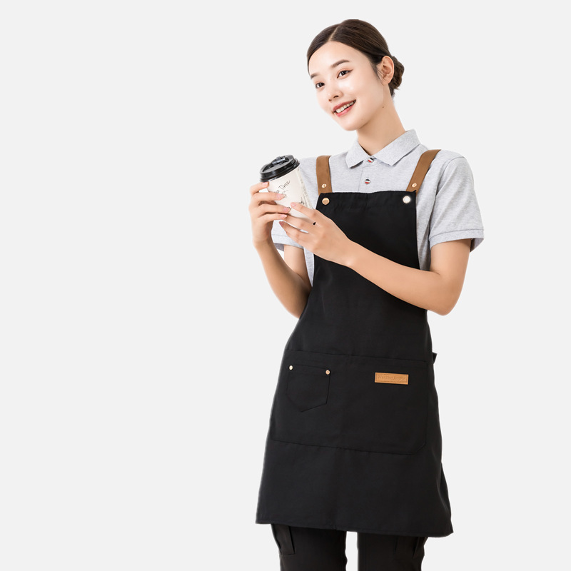 고정 캔버스 앞치마 인쇄 케이터링 특수 방수 및 오일 방지 우유 차 가게 꽃집 커피 뜨거운 염료 작업복 여성