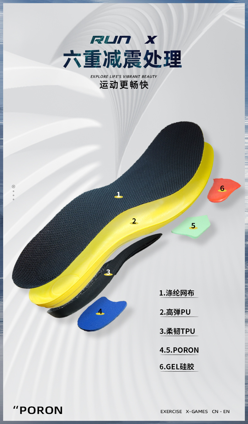 고탄성 PU 충격 흡수 통기성 깔창 남성용 운동화 땀 흡수성 미끄럼 달리기 군사 훈련 남녀 안창