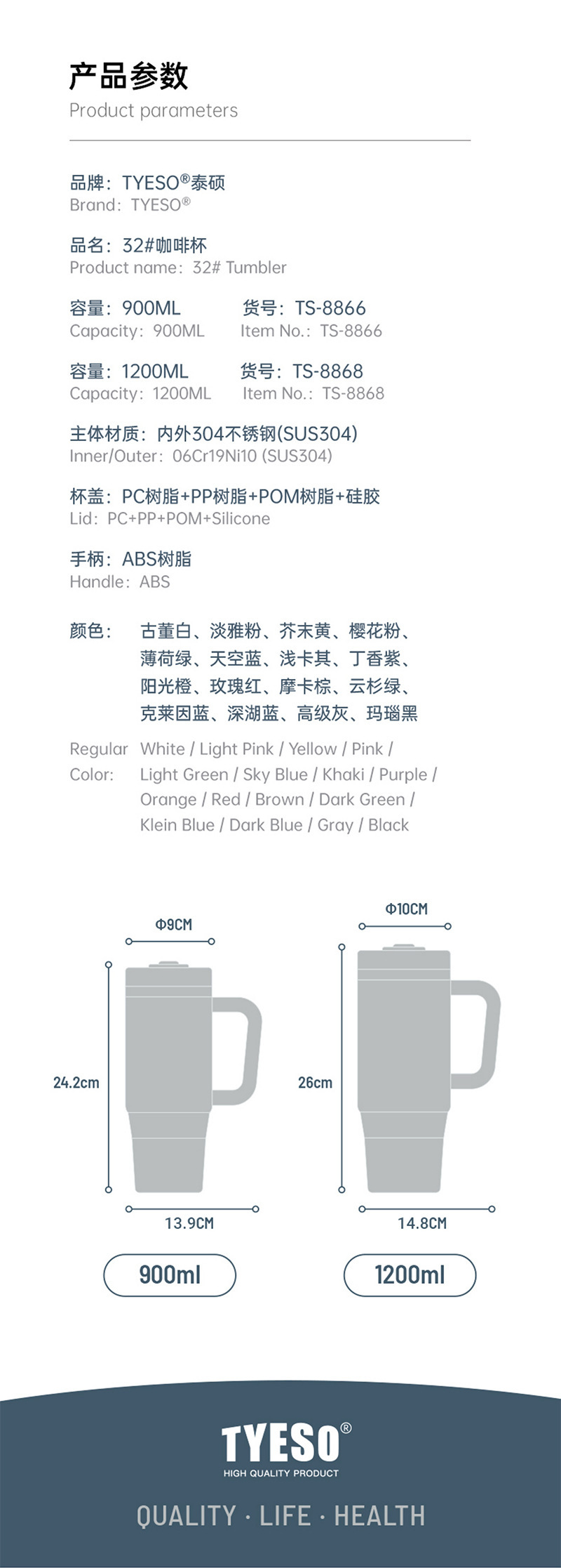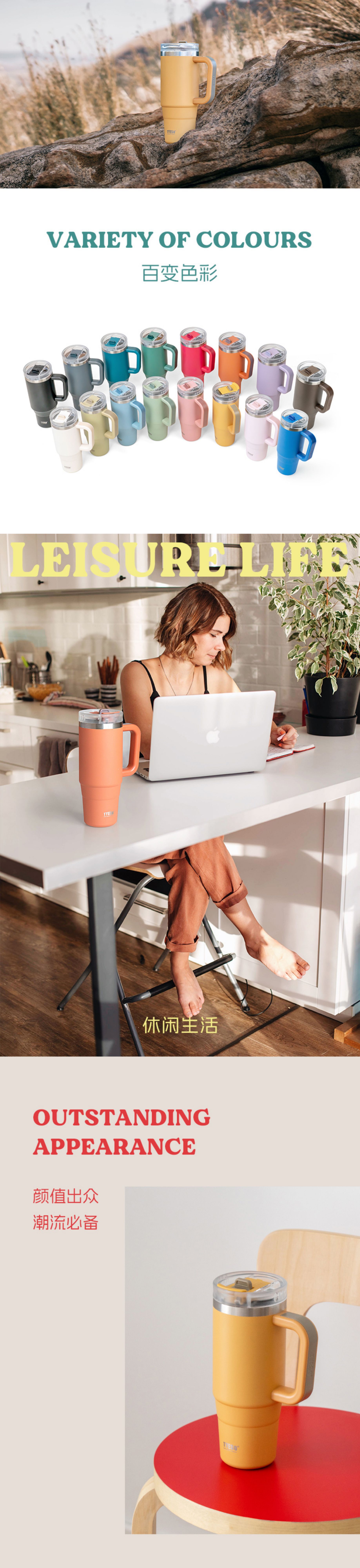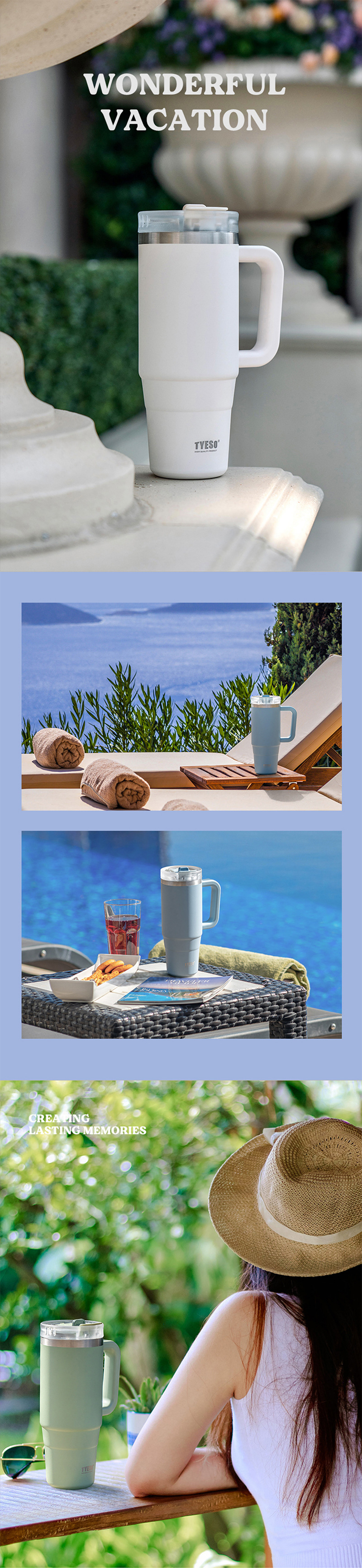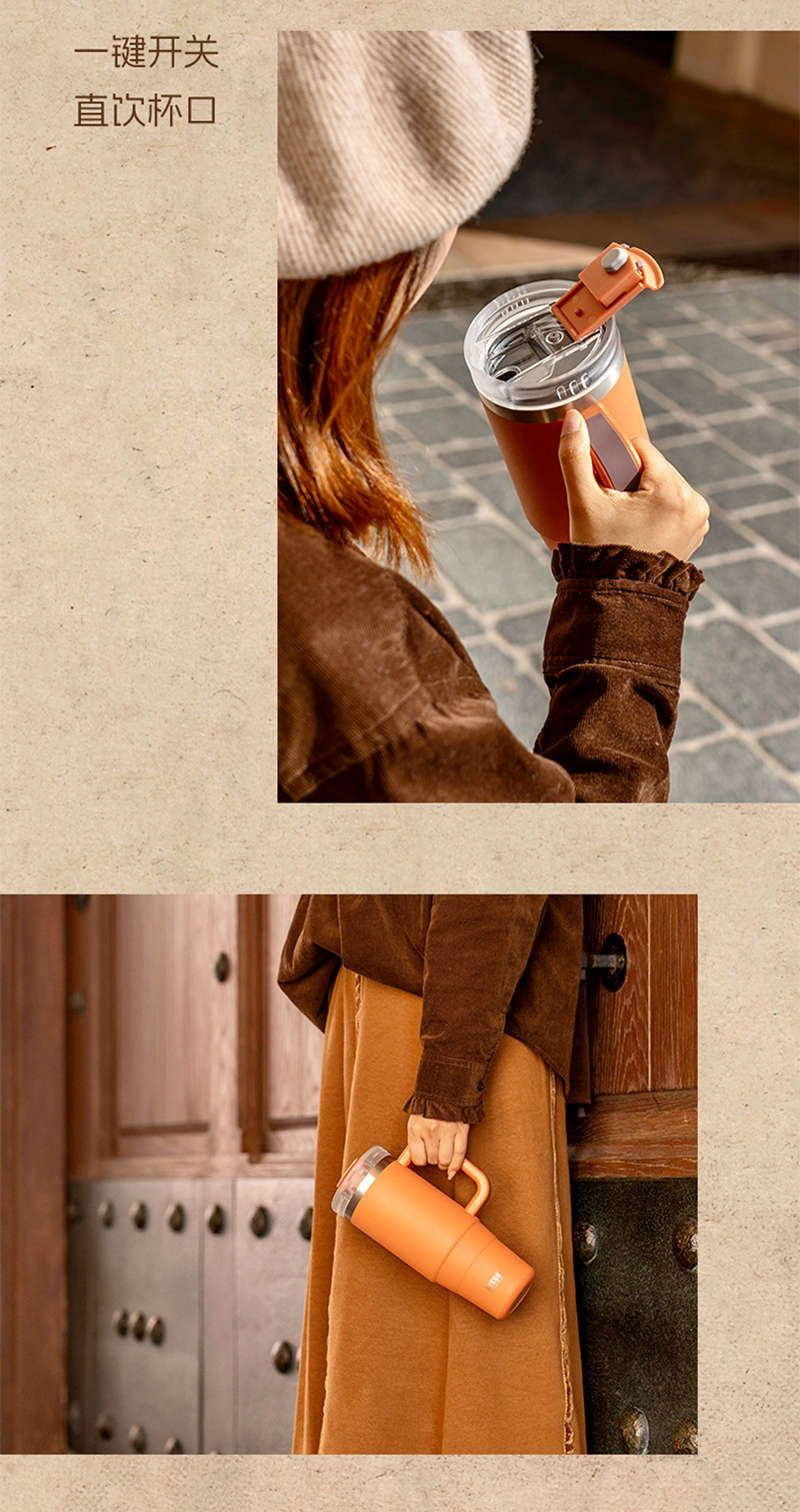 Taishuo 새로운 대용량 아이스 컵 304 스테인레스 스틸 보온병 컵 빨대 커피 컵 자동차 핸들 커피 컵