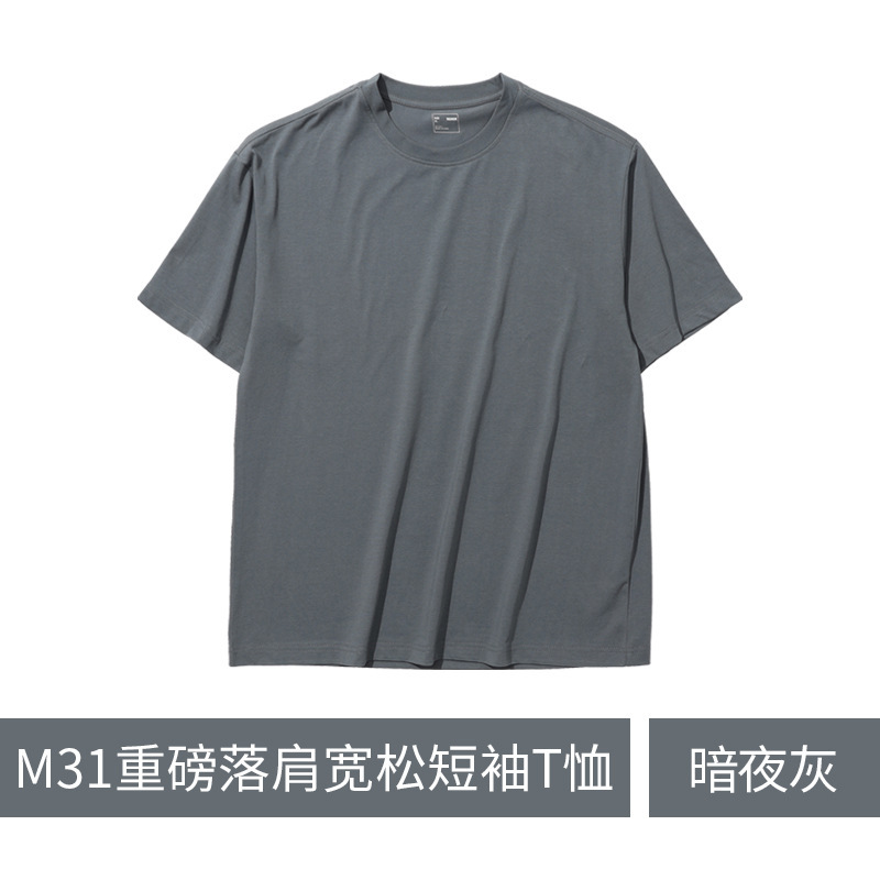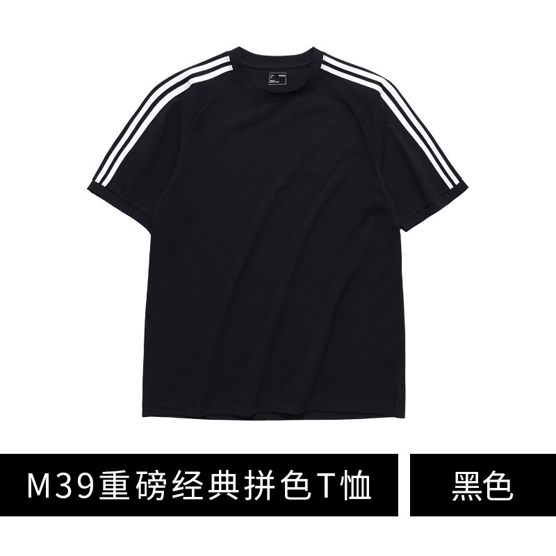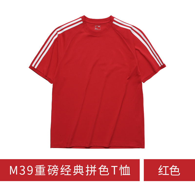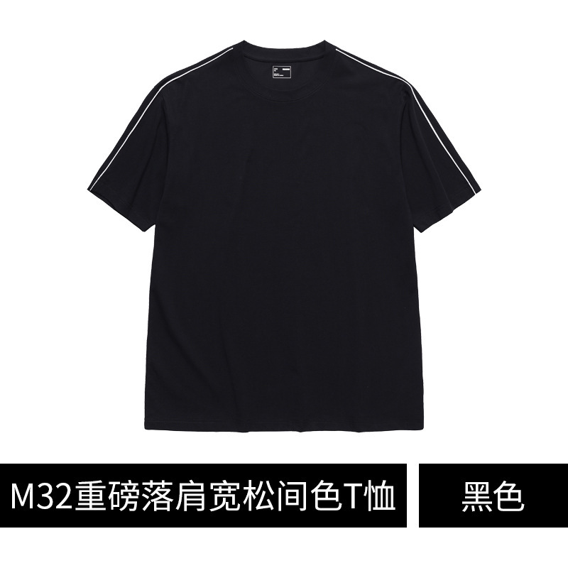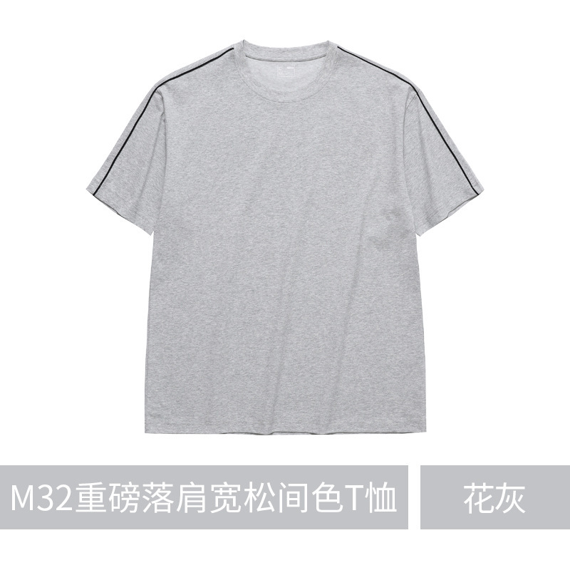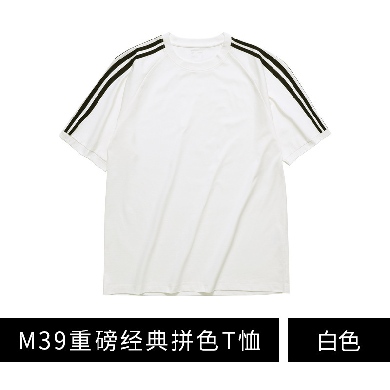 260g 단색 맞춤 로고 자수 작업복 어깨 부분이 달린 라운드넥 반팔 티셔츠 남녀 공용 땀 흡수스토어 가기