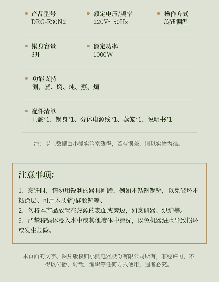 곰/곰 다기능 전기 요리 냄비 DRG-E30N2 튀김 및 볶음 통합 가정용 지능형 전기 튀김 냄비 3L 대용량스토어 가기