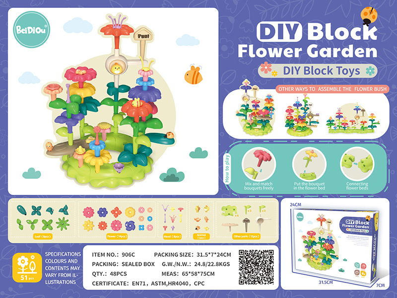 • DIY 조립 된 건물 블록 꽃 (51pcs 포함) [48 박스/박스 배치]]