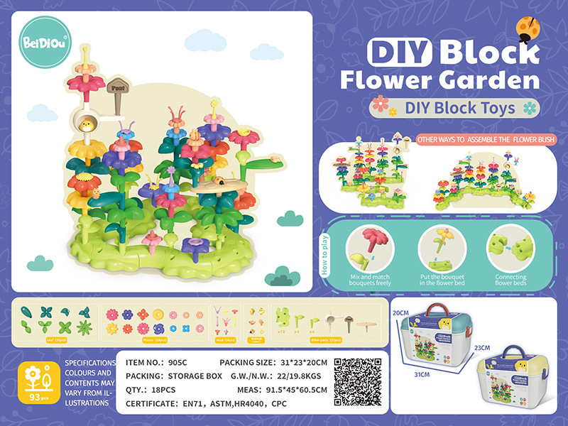 • DIY 조립 된 건물 블록 꽃 (저장 상자 93pcs) [18 상자/상자 배치]
