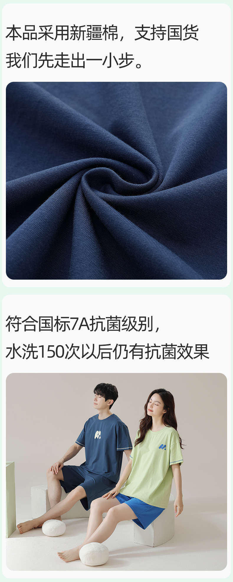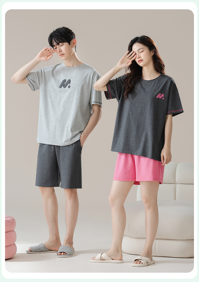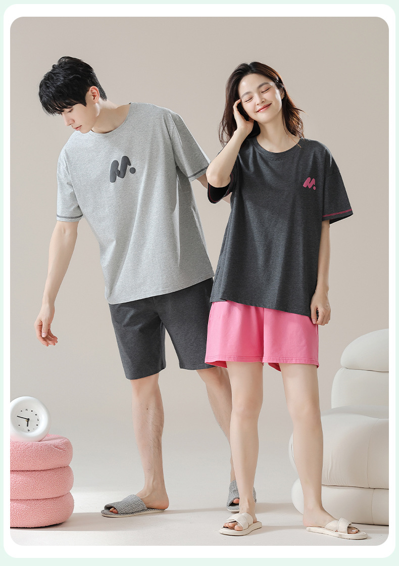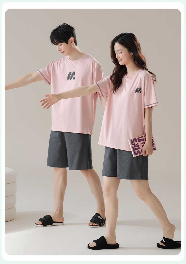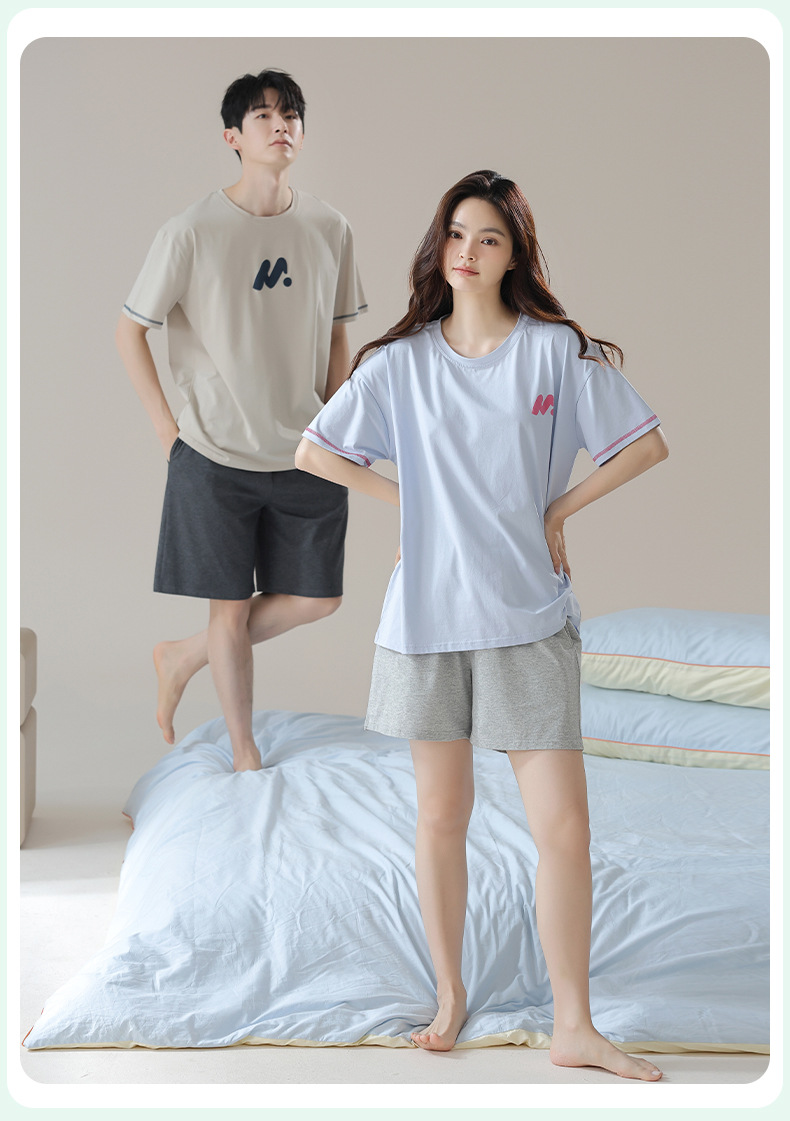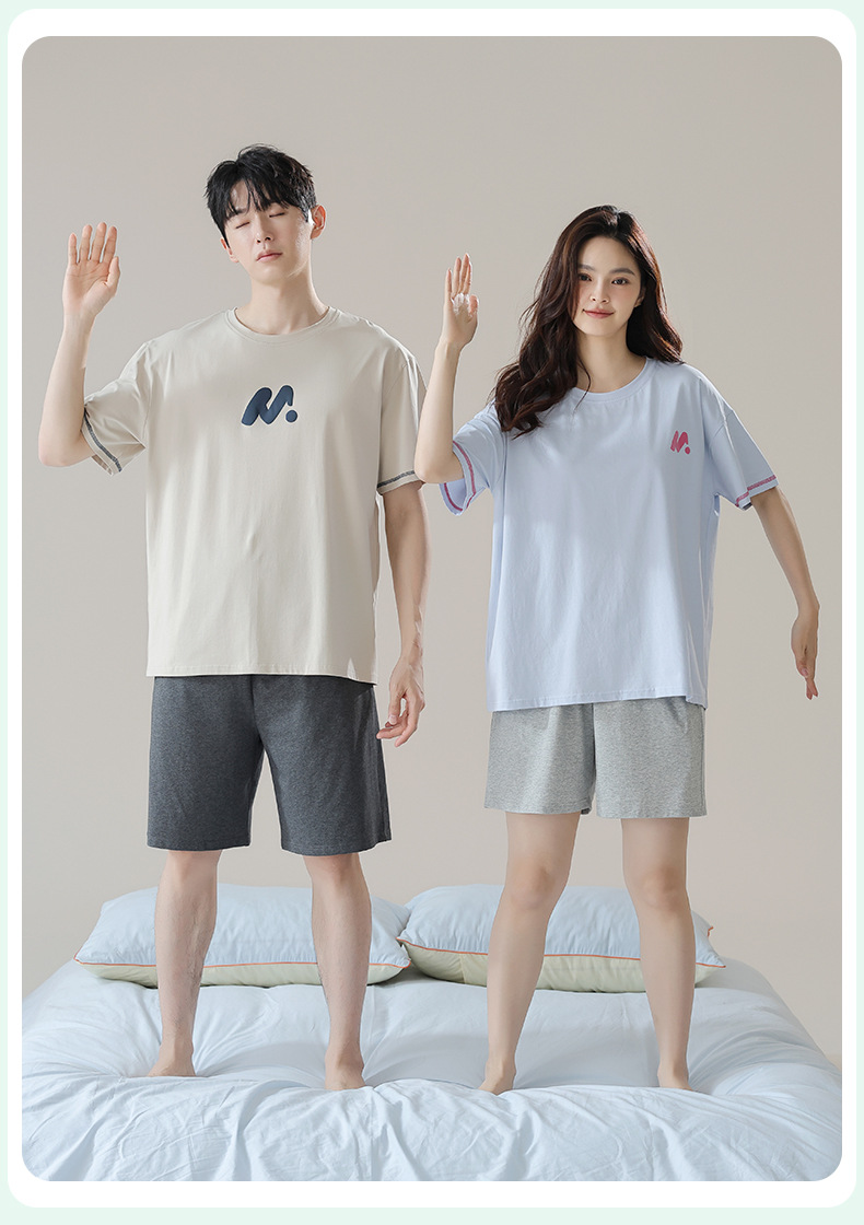 [항균성 신장면] 반소매 면 커플 잠옷 여성 여름 남자 잠옷 여름 얇은 홈 세트
