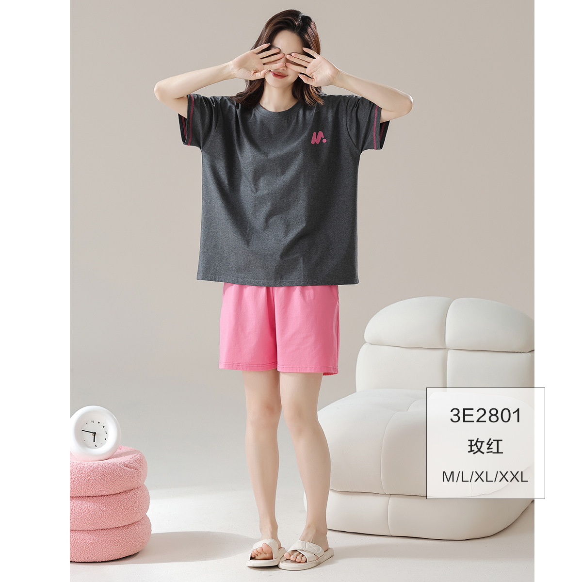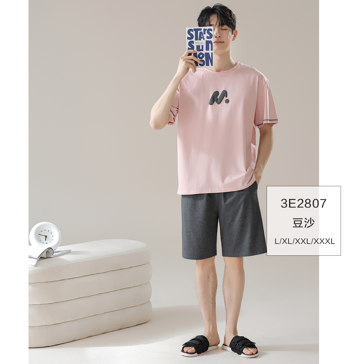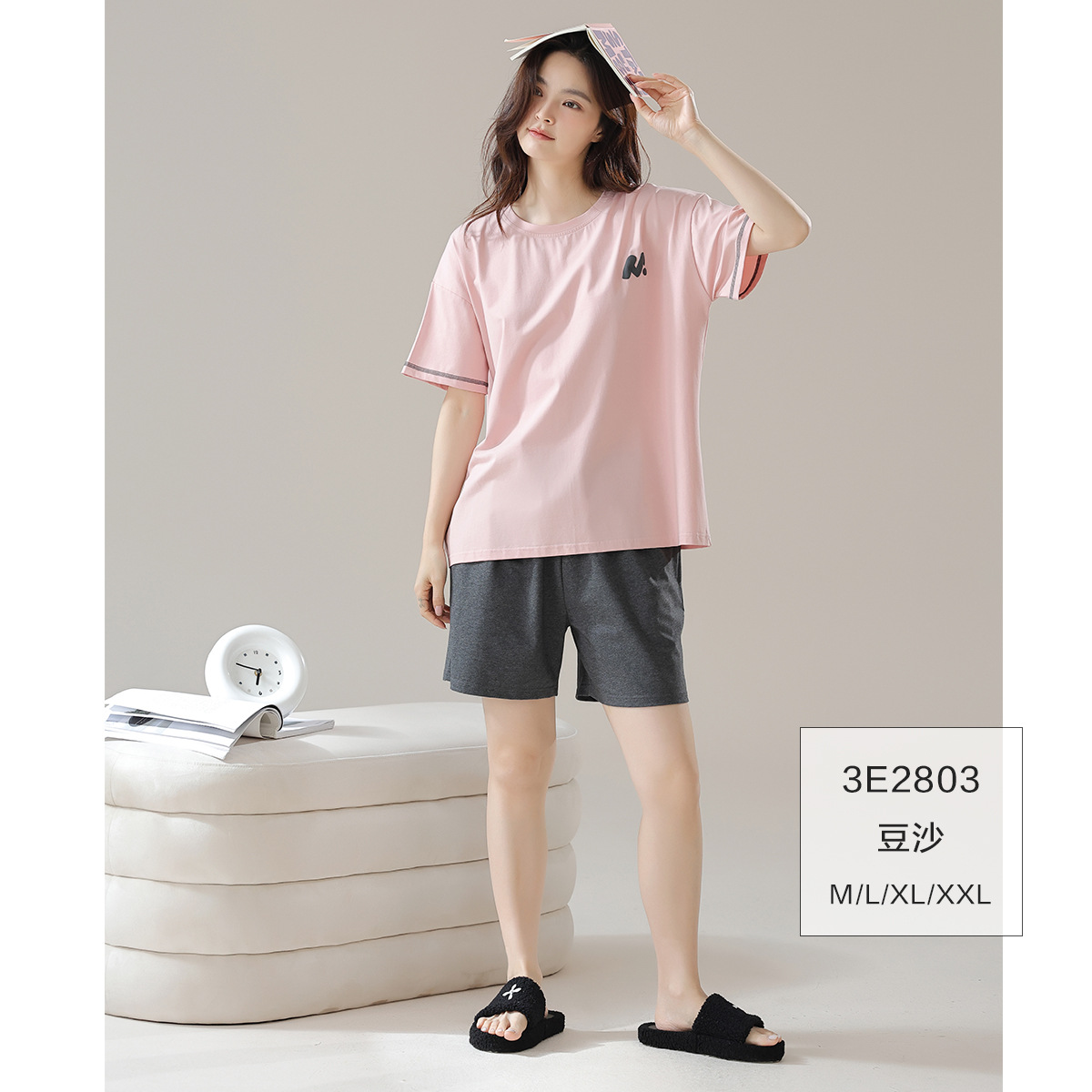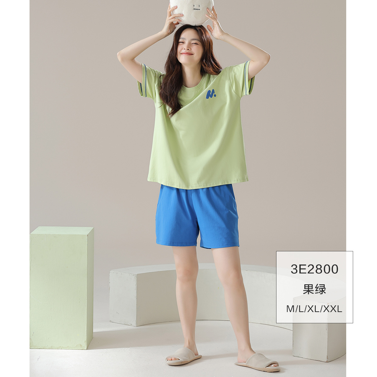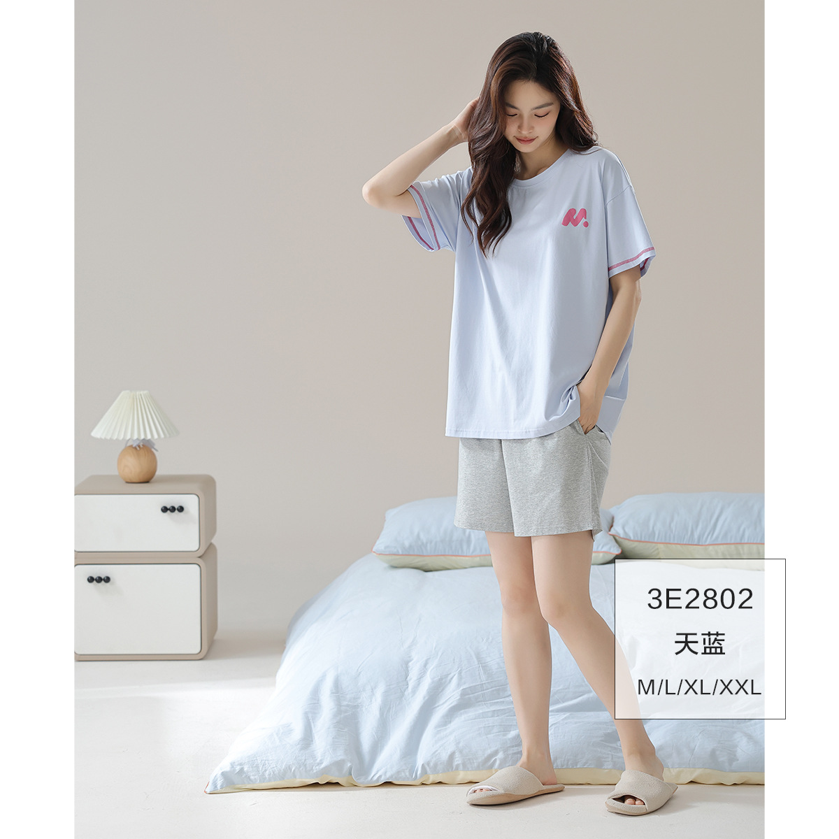 [항균성 신장면] 반소매 면 커플 잠옷 여성 여름 남자 잠옷 여름 얇은 홈 세트