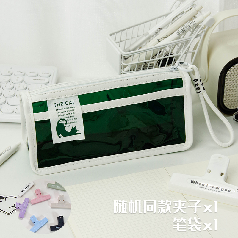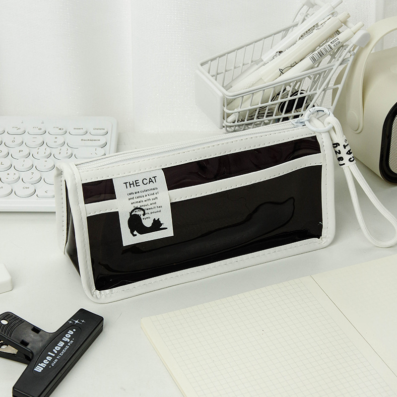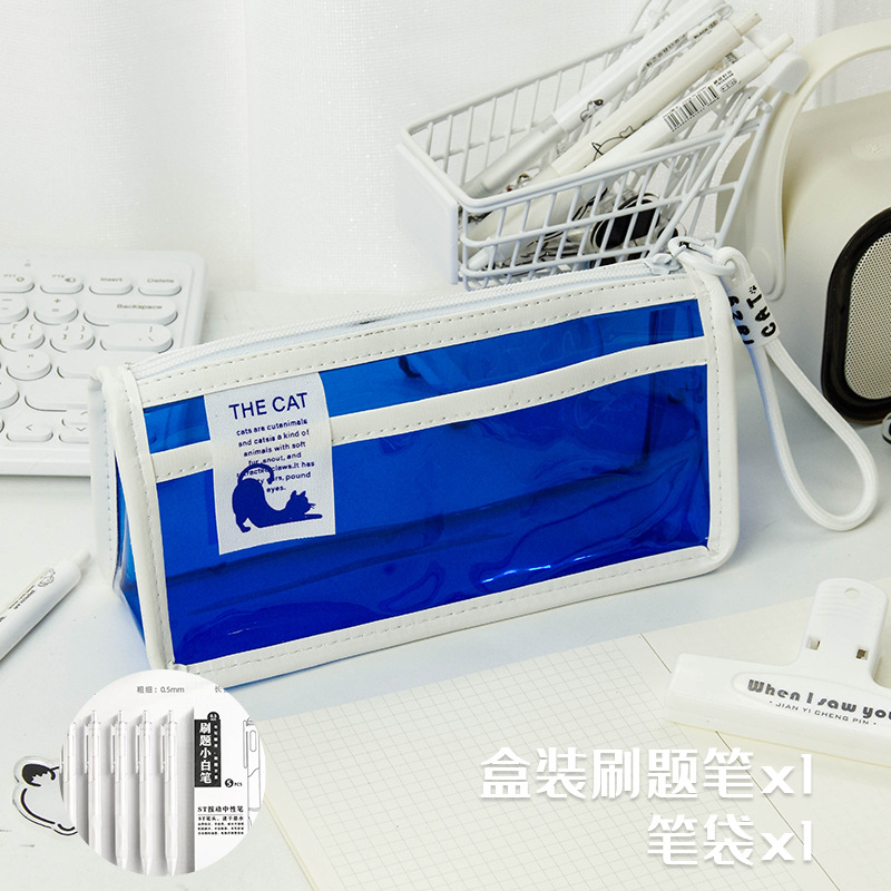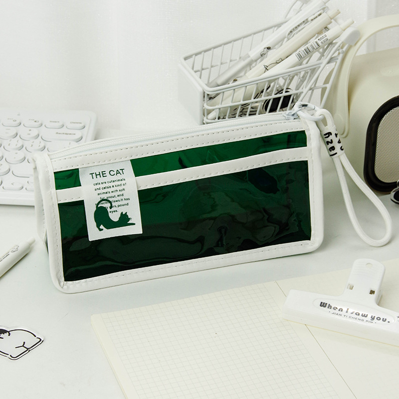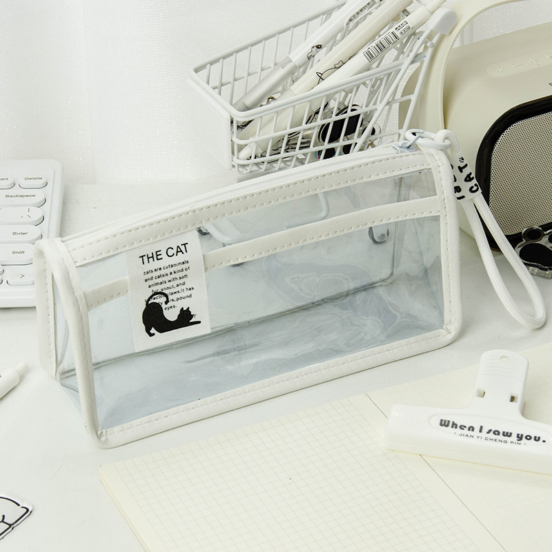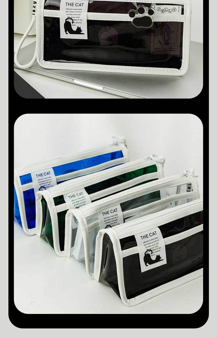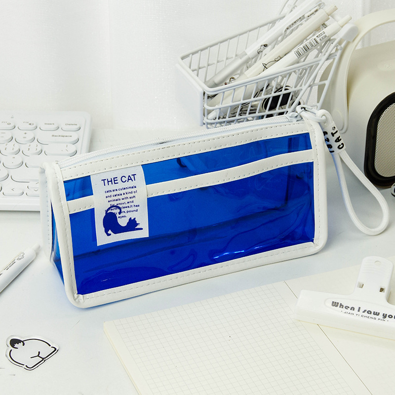 투명한 대형 삼각형 높은 색상 가치 연필 가방 대용량 학생 문구 보관 가방 간단한 스타일 PVC 소녀 연필 케이스