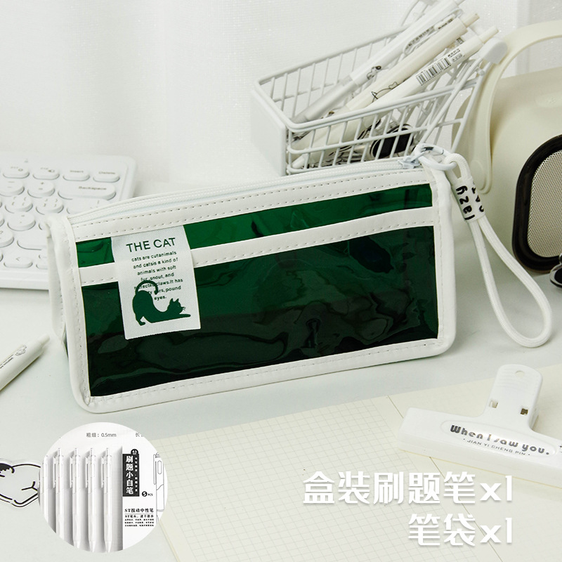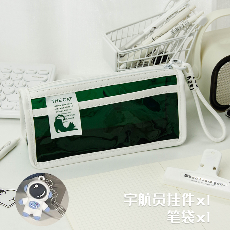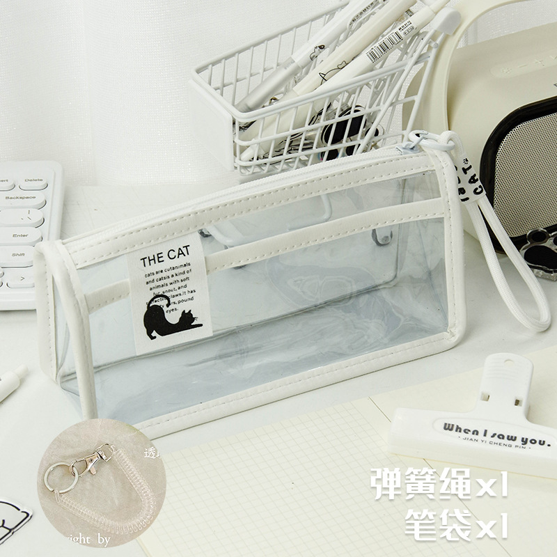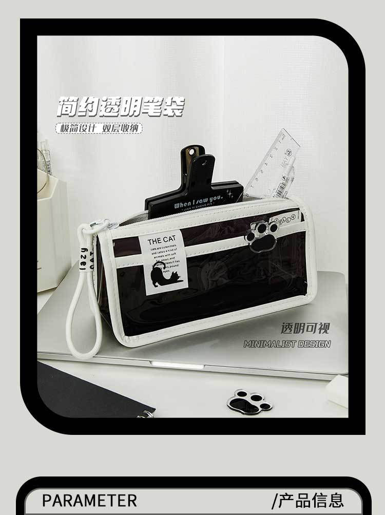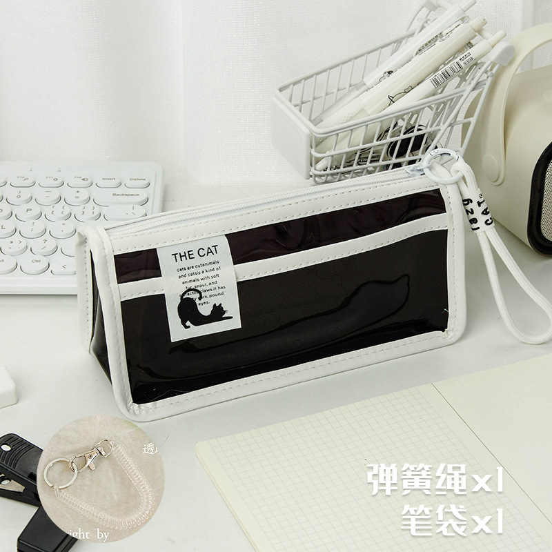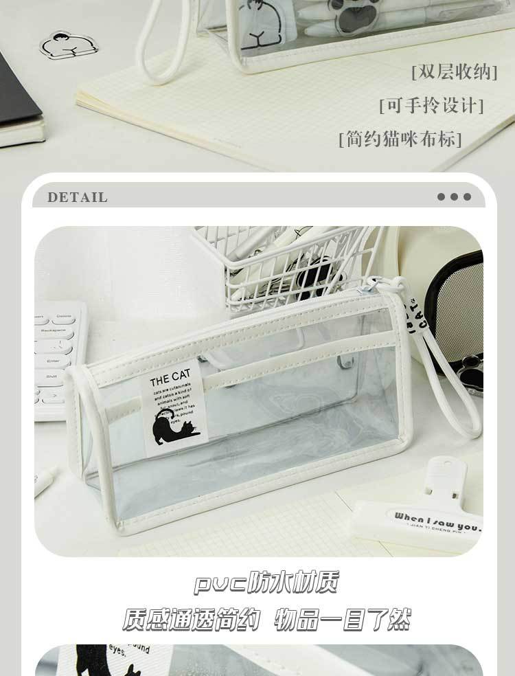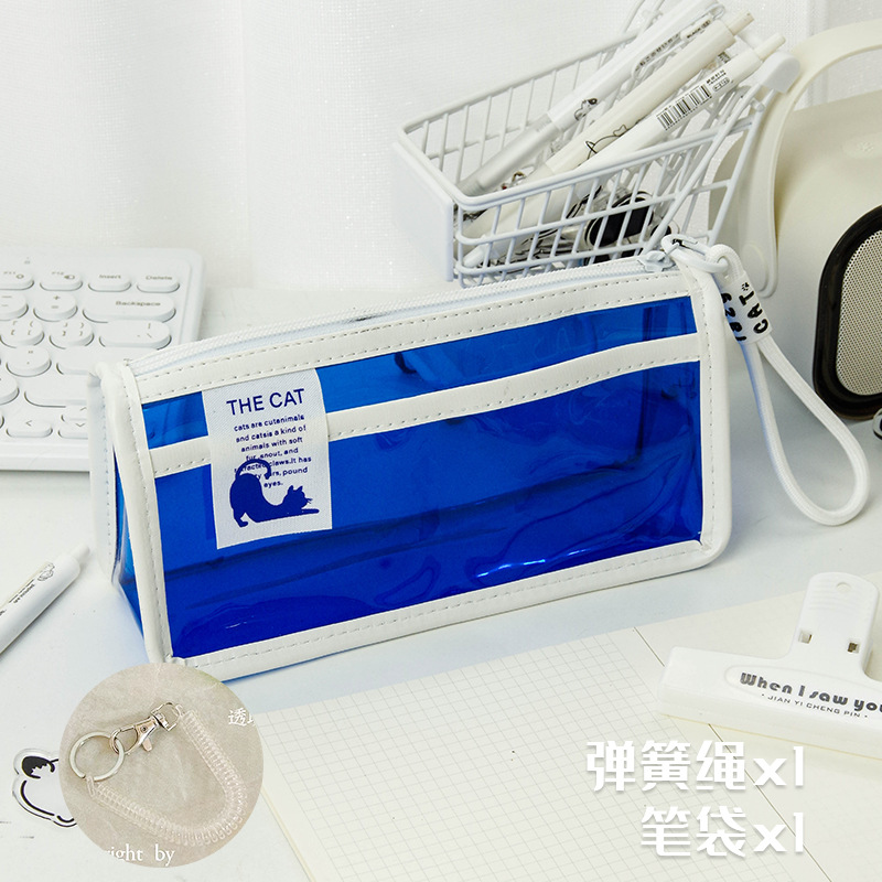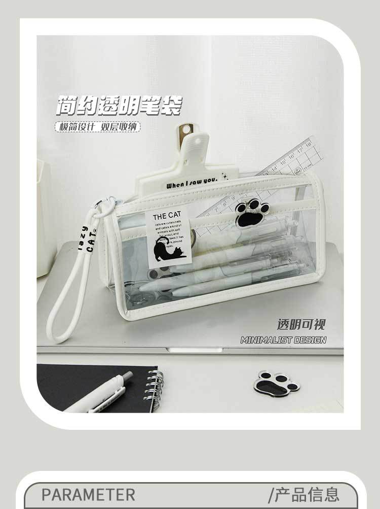투명한 대형 삼각형 높은 색상 가치 연필 가방 대용량 학생 문구 보관 가방 간단한 스타일 PVC 소녀 연필 케이스