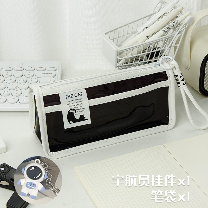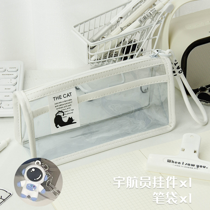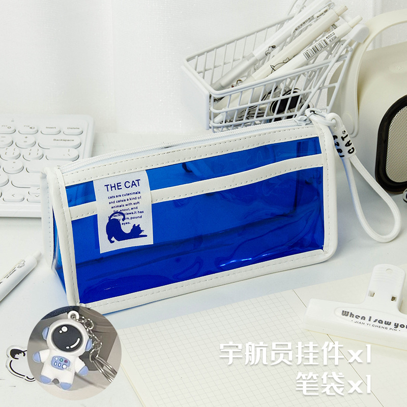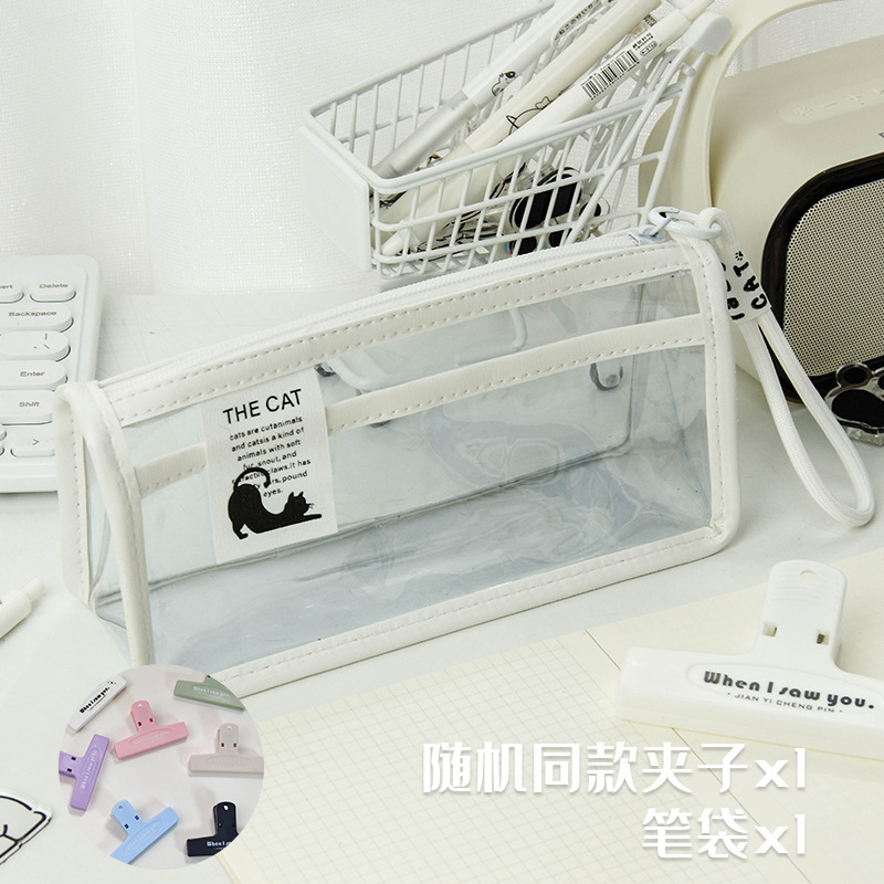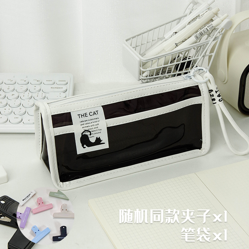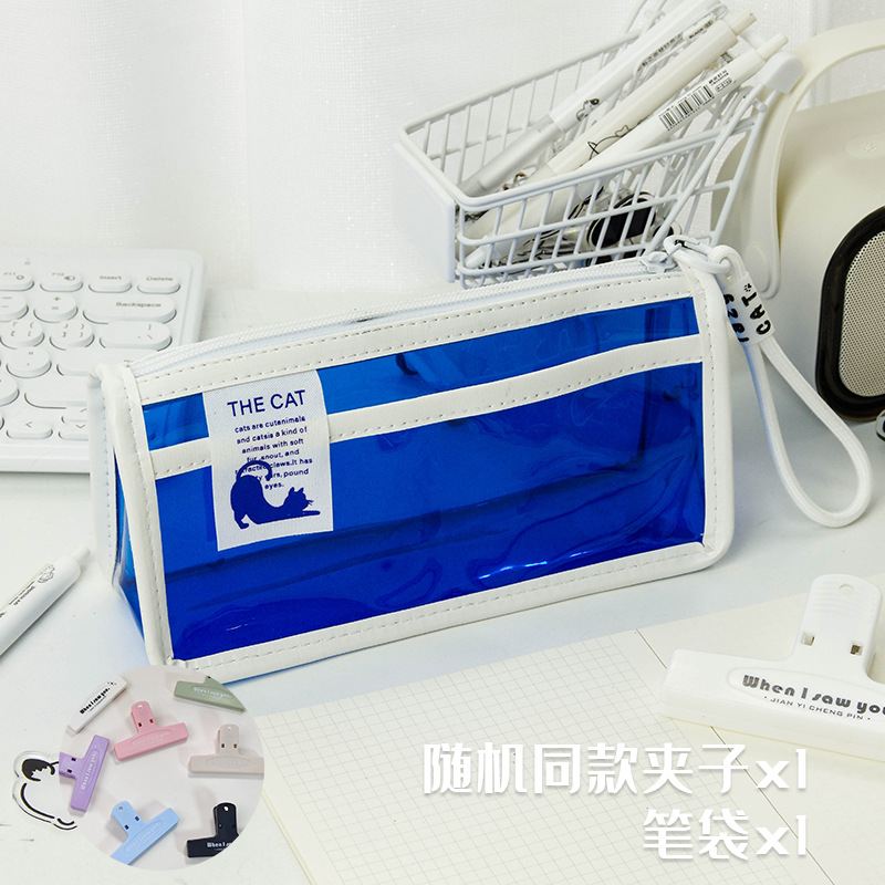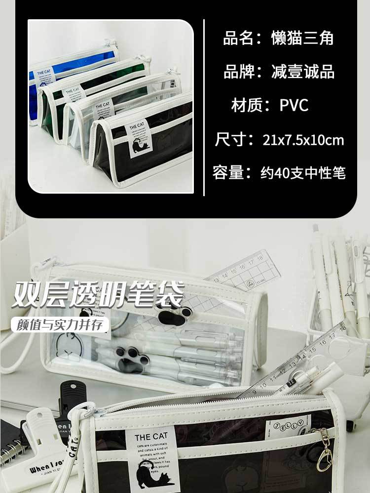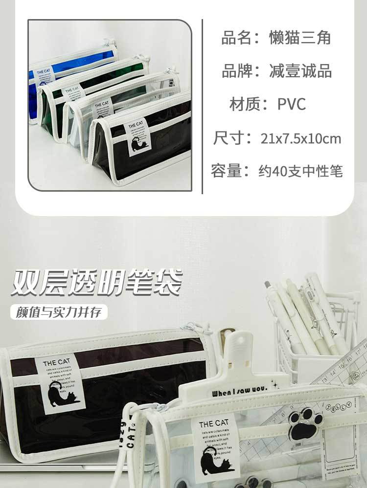 투명한 대형 삼각형 높은 색상 가치 연필 가방 대용량 학생 문구 보관 가방 간단한 스타일 PVC 소녀 연필 케이스스토어 가기