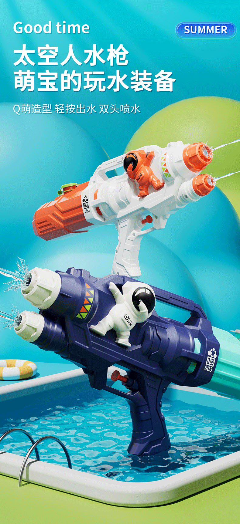 • MY388-1 듀얼 노즐 공간 물 총 블루