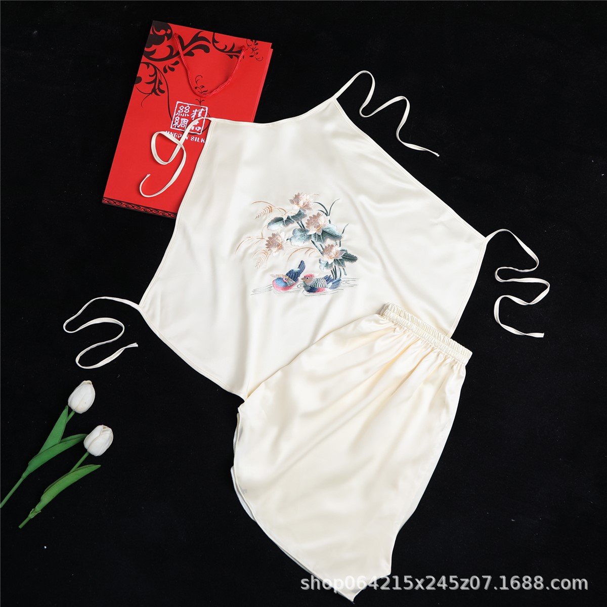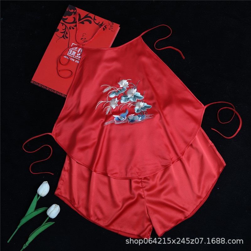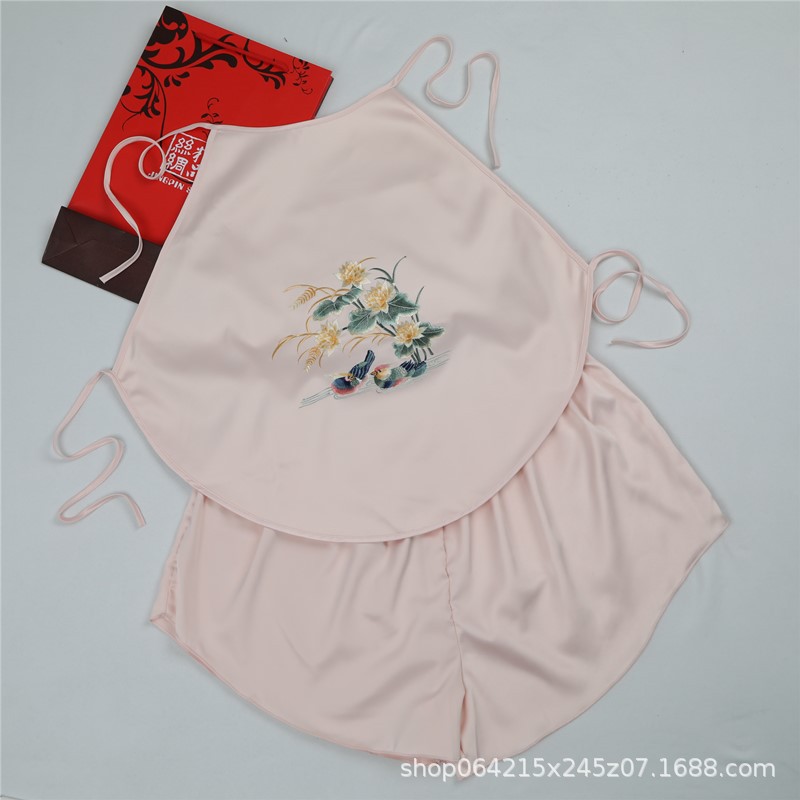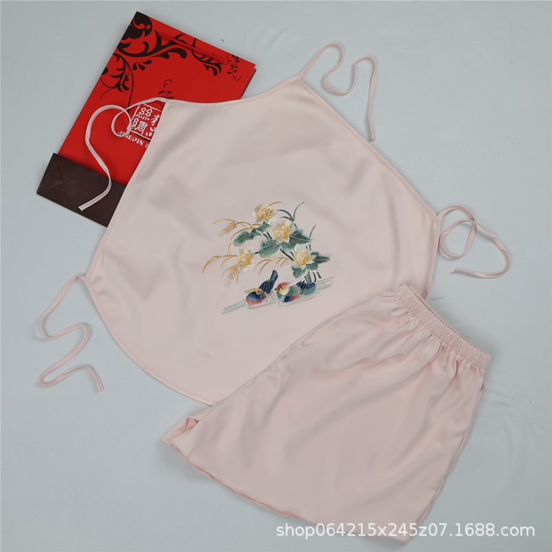 수 자수 더블 레이어 시뮬레이션 실크 자수 여성 성인 벨리 밴드 복고풍 중국 스타일 속옷 여성 서스펜더 파자마