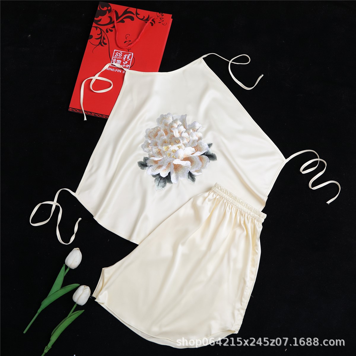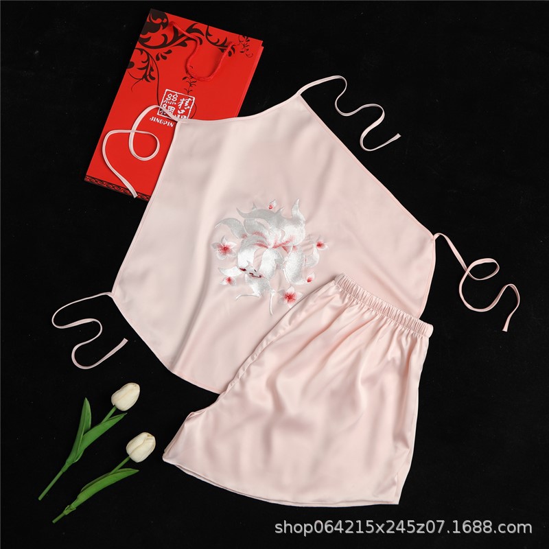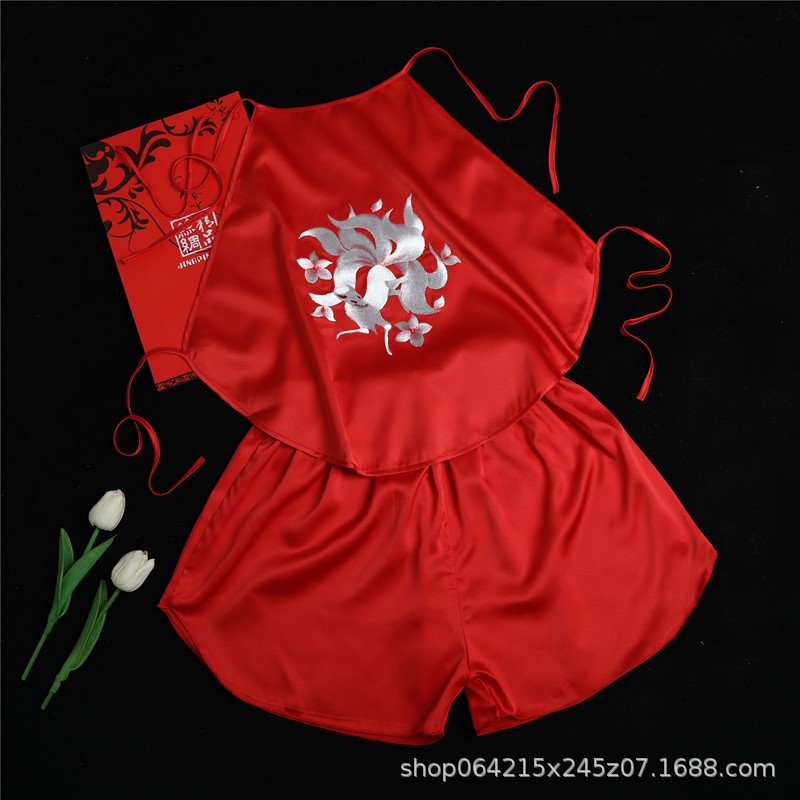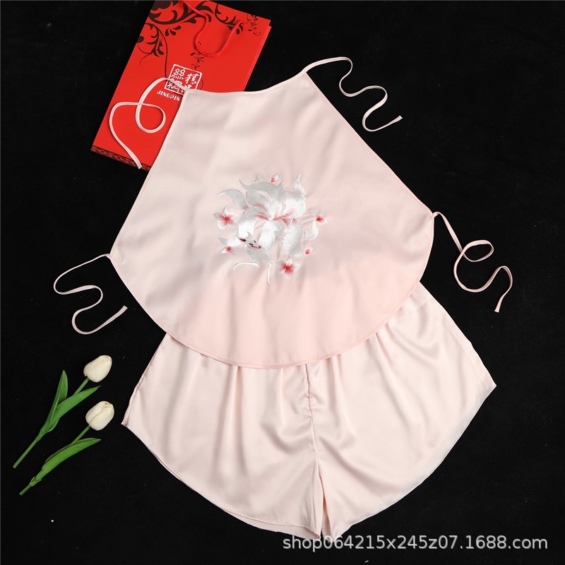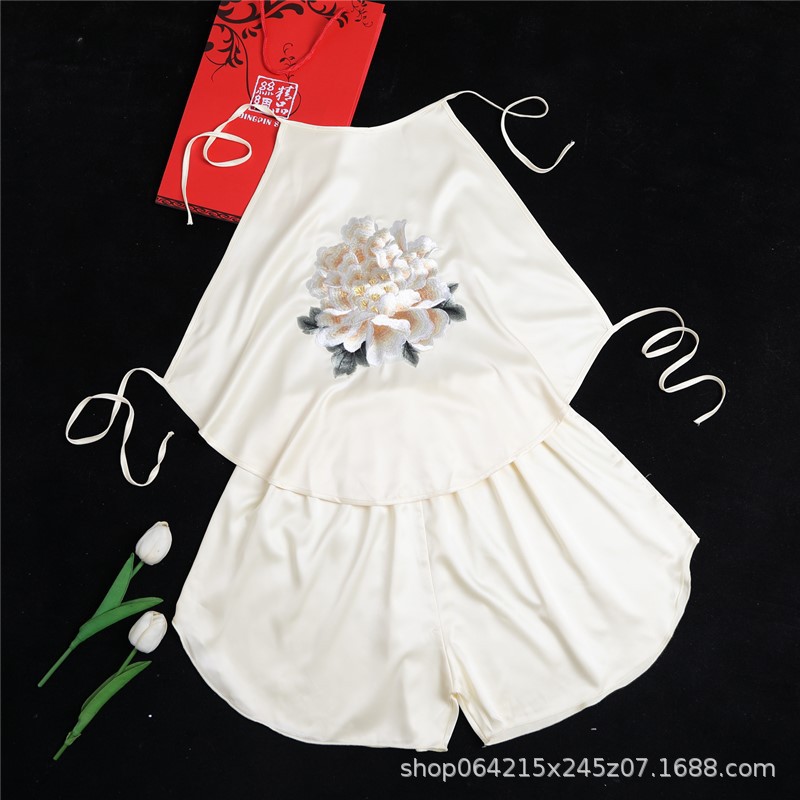 수 자수 더블 레이어 시뮬레이션 실크 자수 여성 성인 벨리 밴드 복고풍 중국 스타일 속옷 여성 서스펜더 파자마